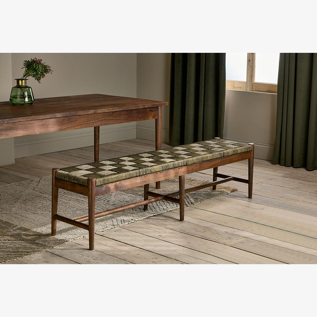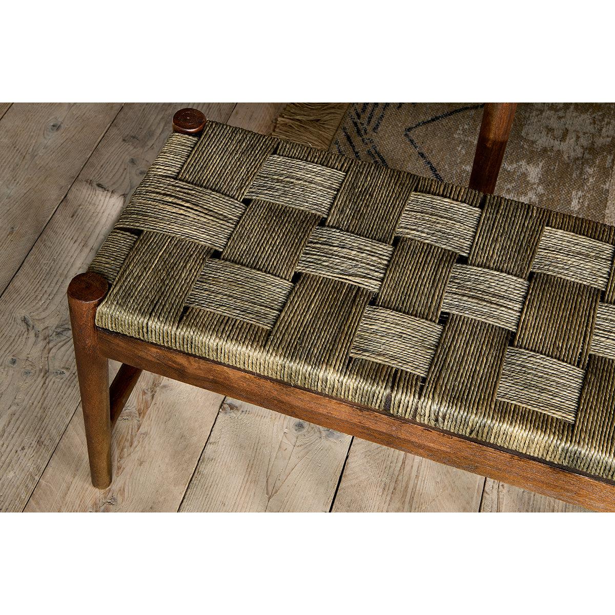 Nkuku Raunak Acacia Woven Bench | Chairs Stools & Benches | Washed Walnut | Large