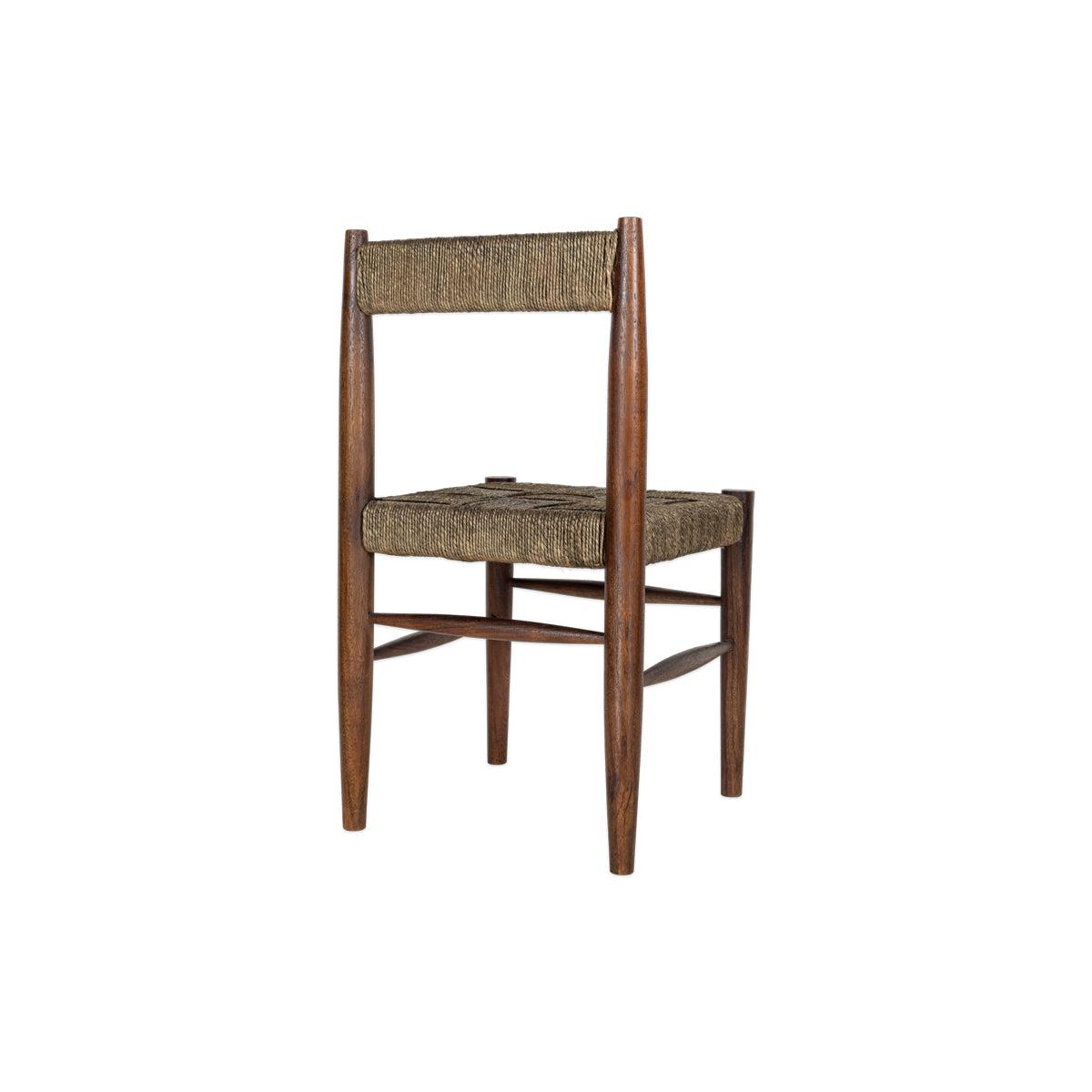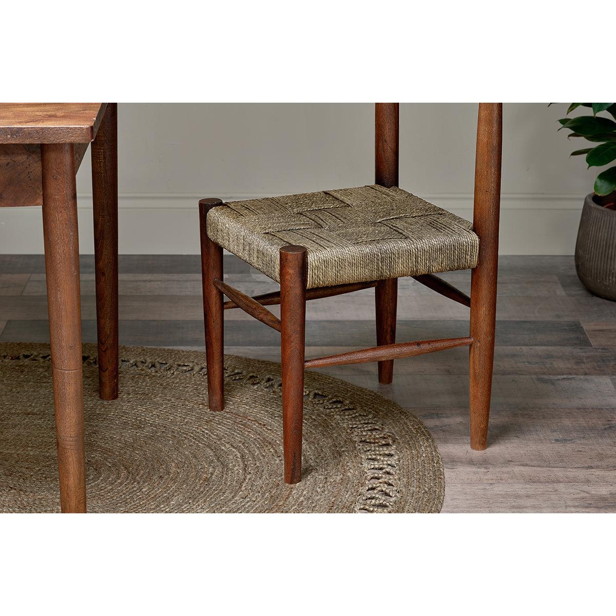 The simple design of the Raunak dining chair combines a solid Acacia wood frame in a dark walnut finish, with a simple woven seat made from Munja grass for a comfortable understated look. Made by carefully weaving the strong fibres around a framework, this chair is created using traditional artisanal skills. Munja grass grows in abundance along India's riverbanks. It has traditionally been used to make ropes and baskets and is a durable natural material with rich eco-friendly credentials.