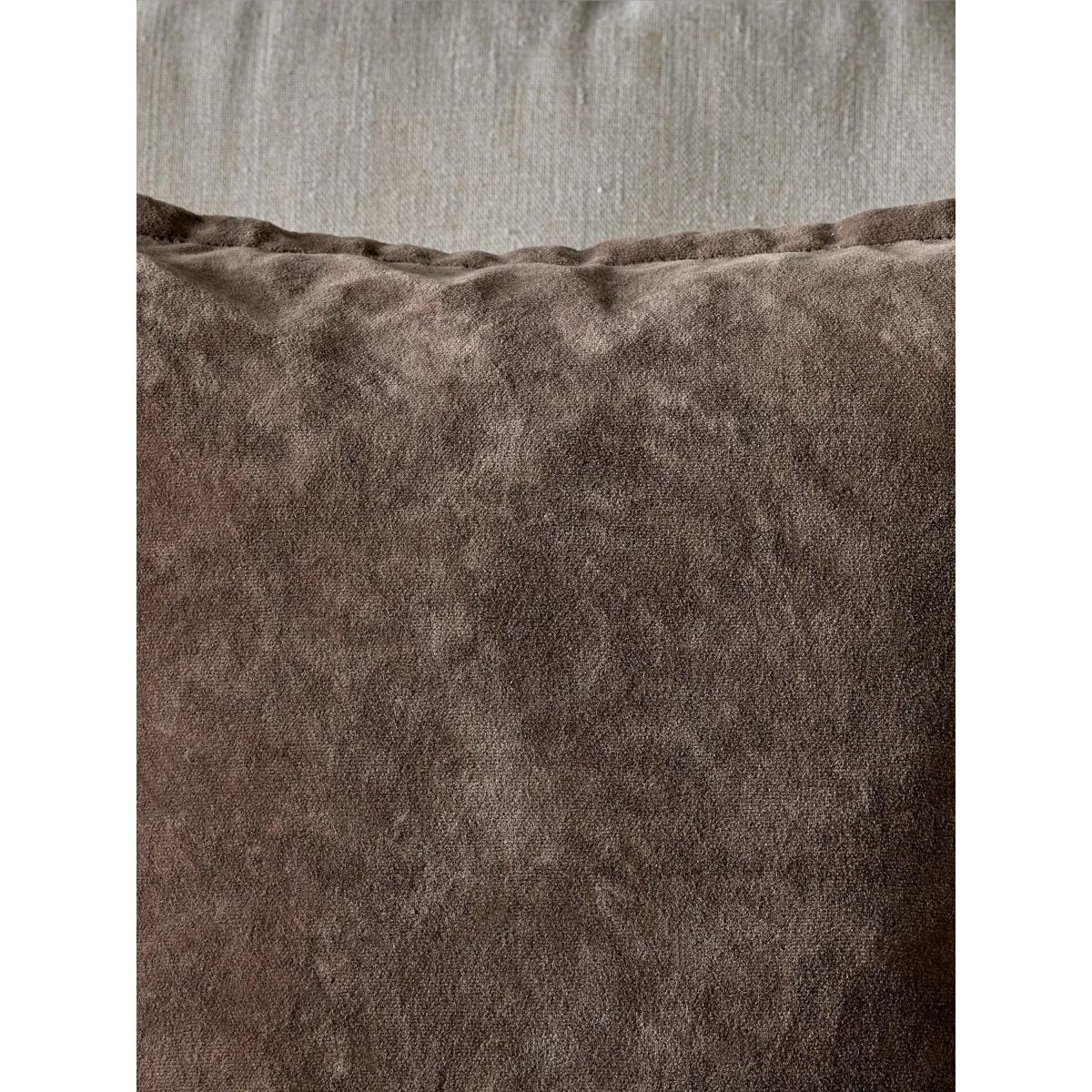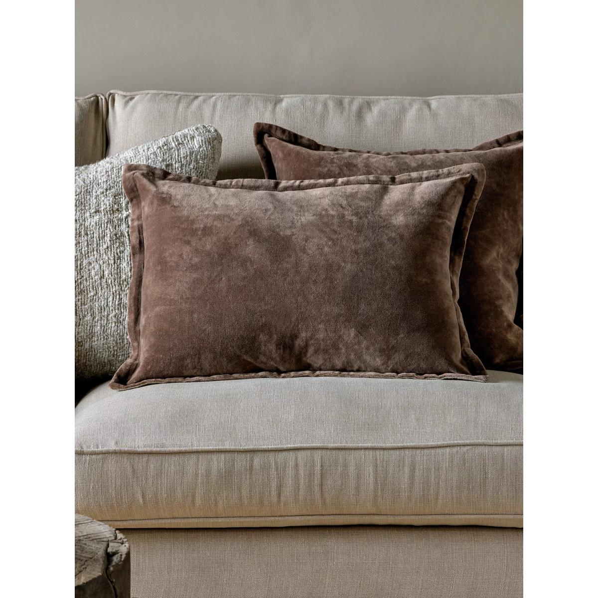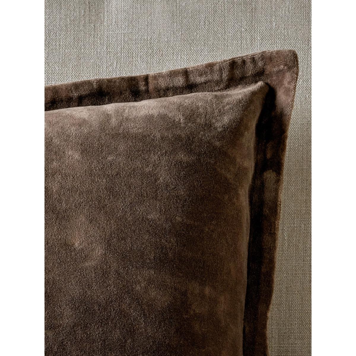 Luxurious and elegant, this cushion cover features a rich, thick velvet front in a beautiful rich brown colour. Backed with natural linen and finished with a flange edge, it combines luxurious texture with durable craftsmanship. The fabric is then woven on a loom, ensuring a soft, plush finish that brings both comfort and refined style to any seating area or bedroom. Filling not included.