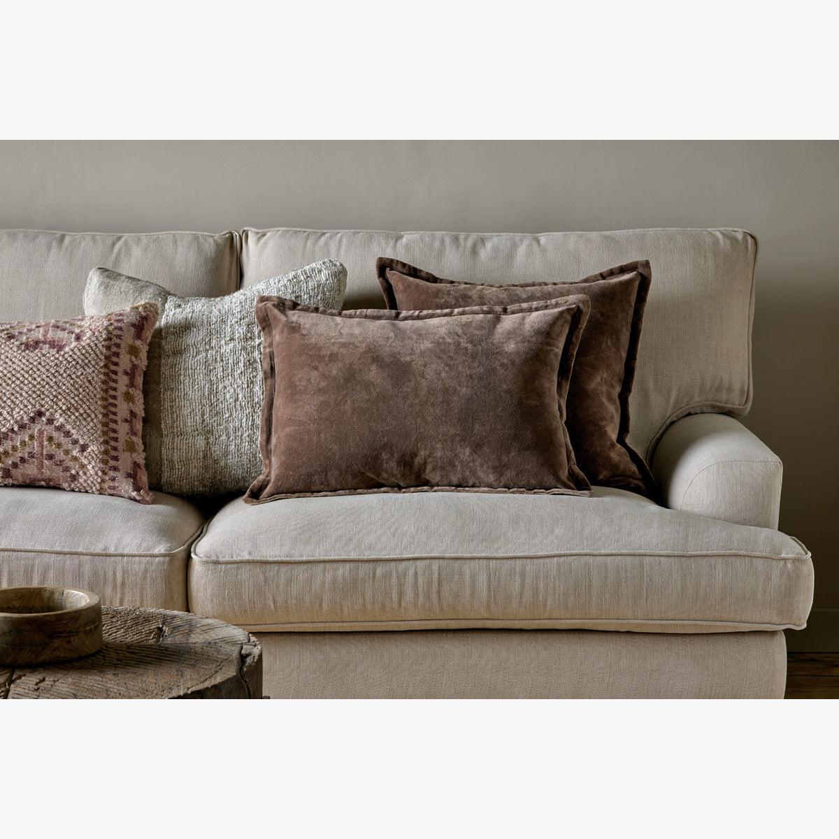 nkuku Renwal Velvet & Linen Cushion Cover | Textiles | Brown | 60 x 40 cm