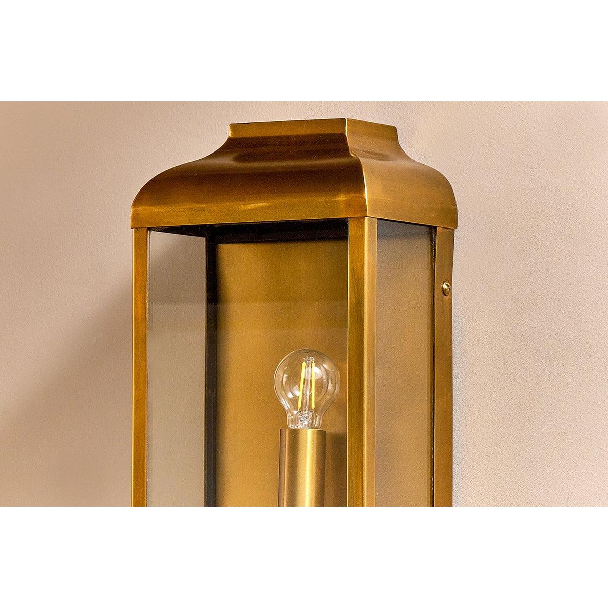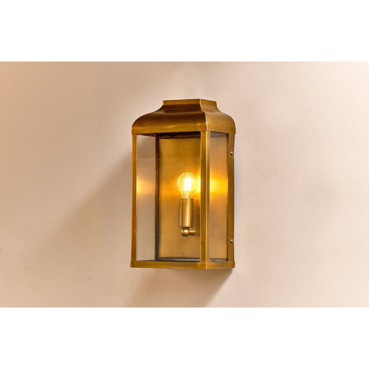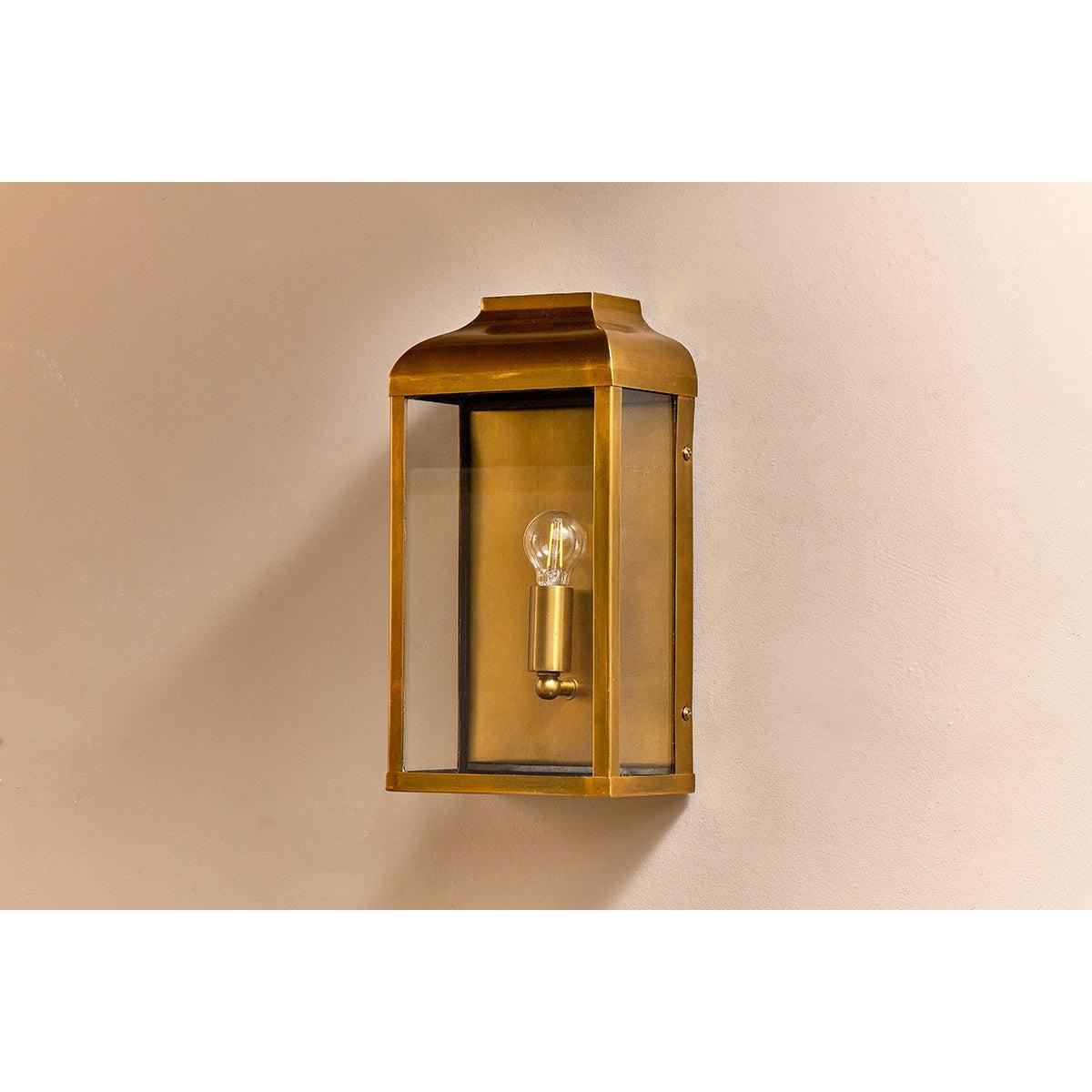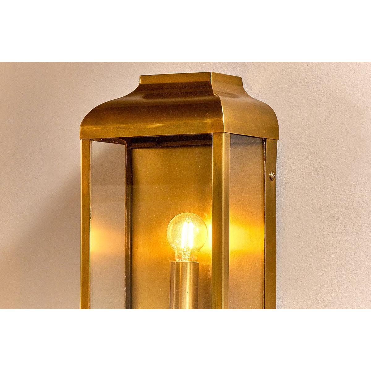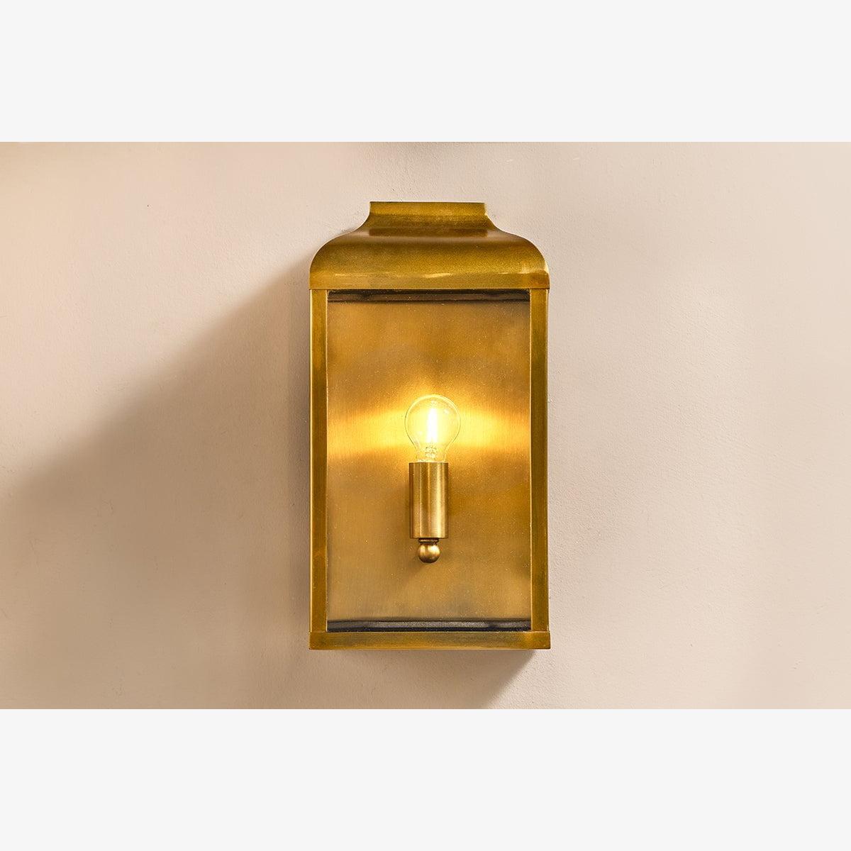 The Riad outdoor brass lantern light is the perfect way to illuminate an entrance or outside space. The warm brass tones complement a variety of buildiing materials and styles. The Riad takes its shape from a traditional lantern shape, the glass front and sides release a good amount of light, ensuring you can spend longer evenings outside in the warmer months, but ensuring it lights your way in the darker winter times as well. The Riad works well as part of an entrance sequence creating a welcoming feel for guests.