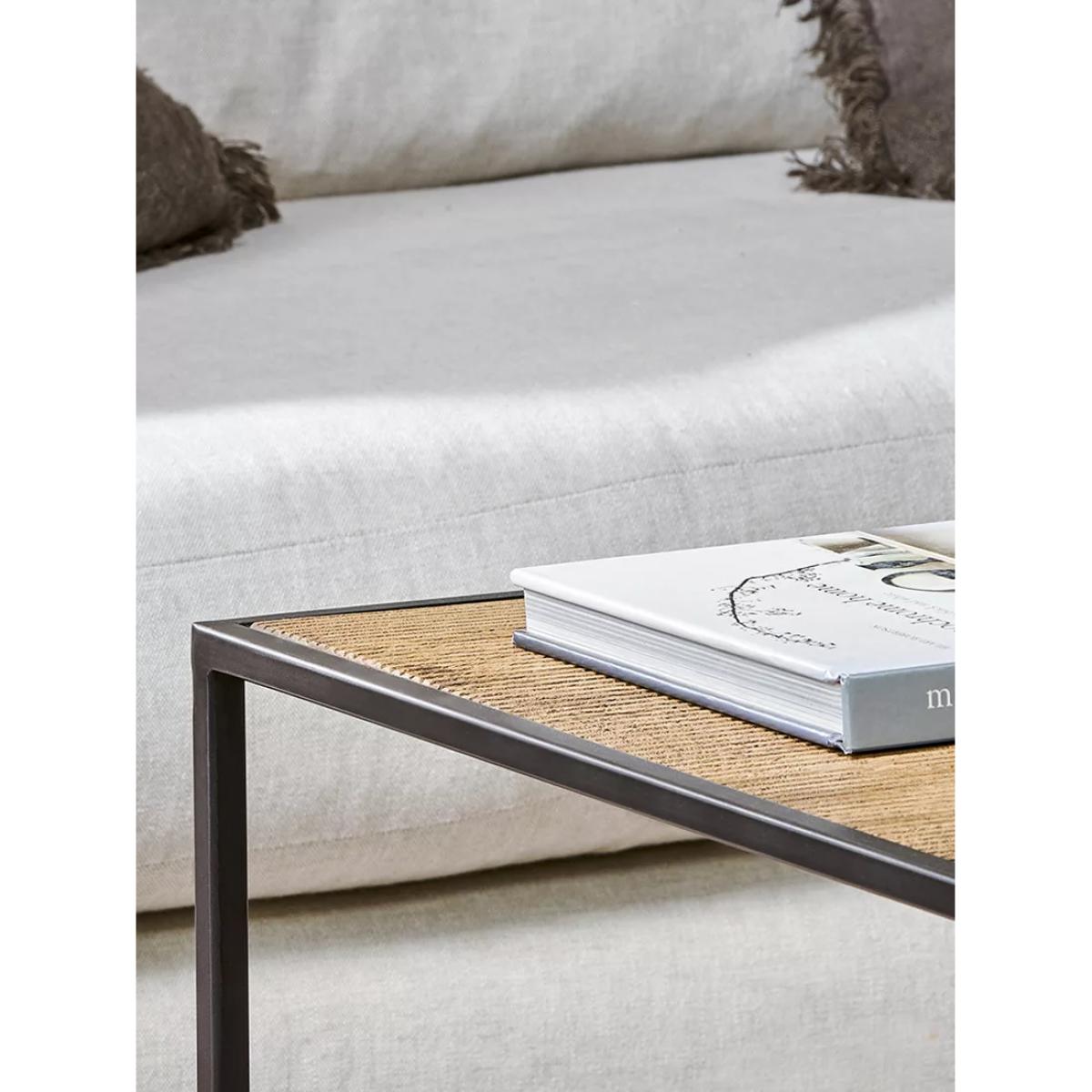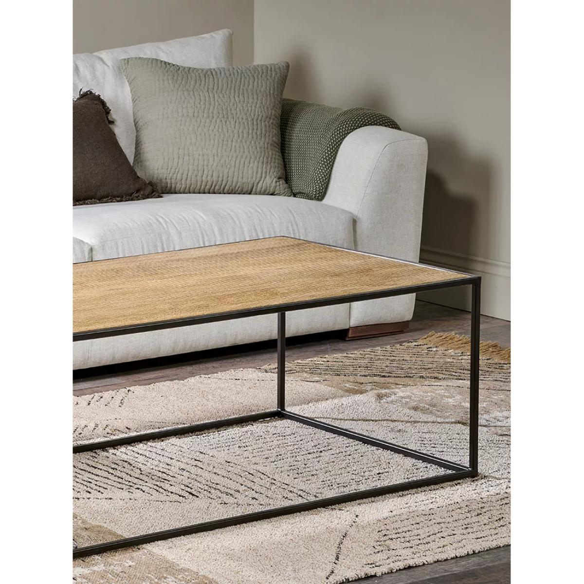 I love this table for its modern, minimalist aesthetic combined with its natural materials, which lend it versatility across various interiors. It works particularly well in contemporary, Scandi or industrial spaces, where clean lines and organic textures are key. Practical styling tips include layering it with a selection of books, small plants, or statement decorative objects to create visual interest. Its open design also makes it easy to pair with textured textiles or colourful accents, ensuring it complements a range of colour schemes. Overall, this piece offers both function and style, making it a great addition to any living room looking for a sleek yet warm centrepiece.