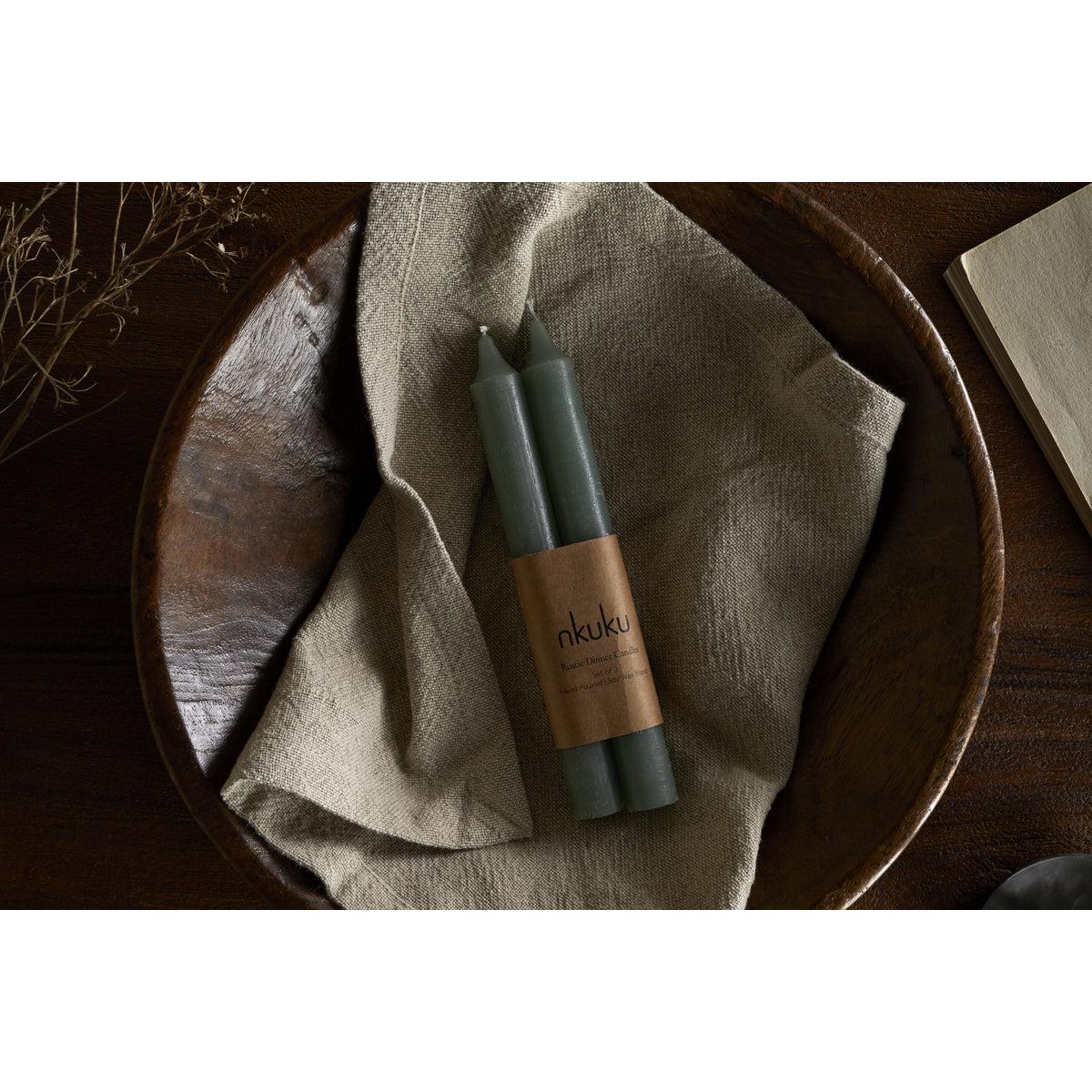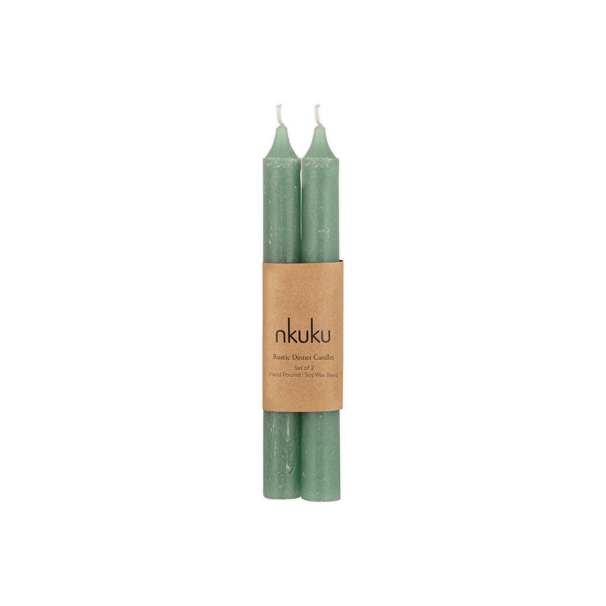 nkuku Rustic Soy Blend Dinner Candle Set Of 2 | Candles & Home Fragrance | Sage Green