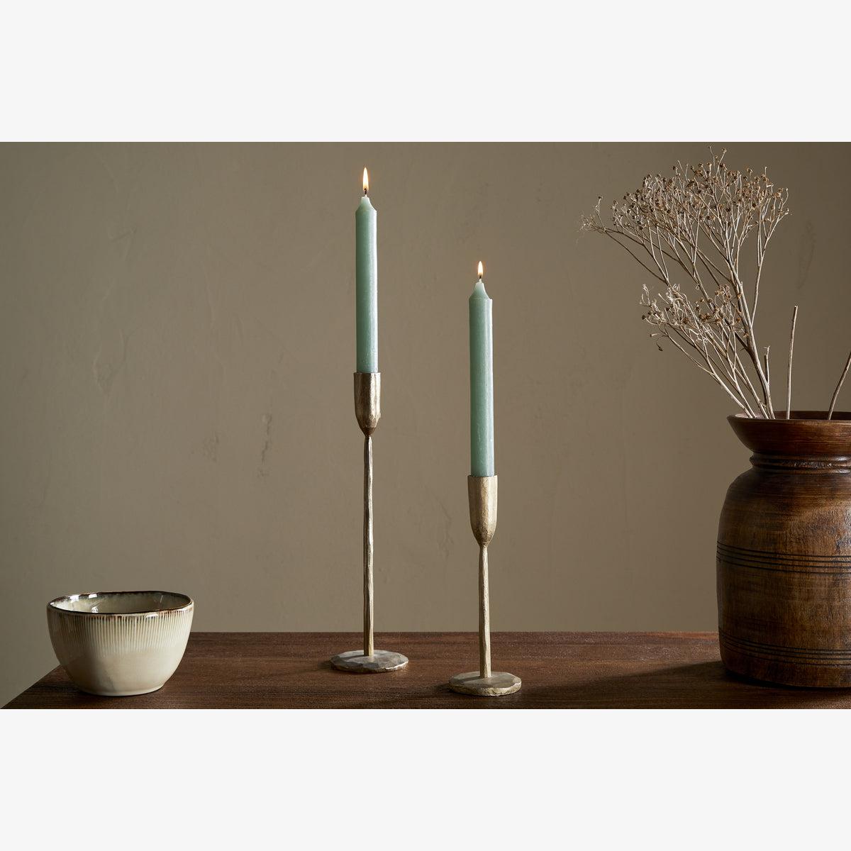 A set of two Rustic dinner candles with a textured finish for a relaxed take on a classic shape and a calming sage tone in keeping with our seasonal colour palette. These were designed specifically for our candle holders that fit a tapered style They look beautiful as a finishing touch on an evening table setting, helping to create a warm and welcoming scene.-