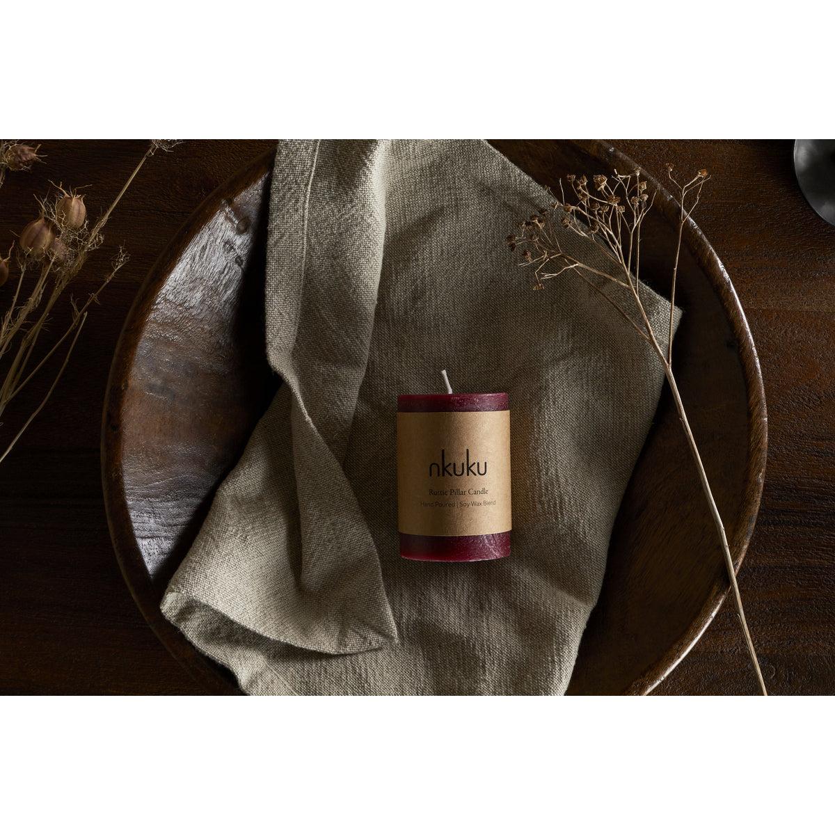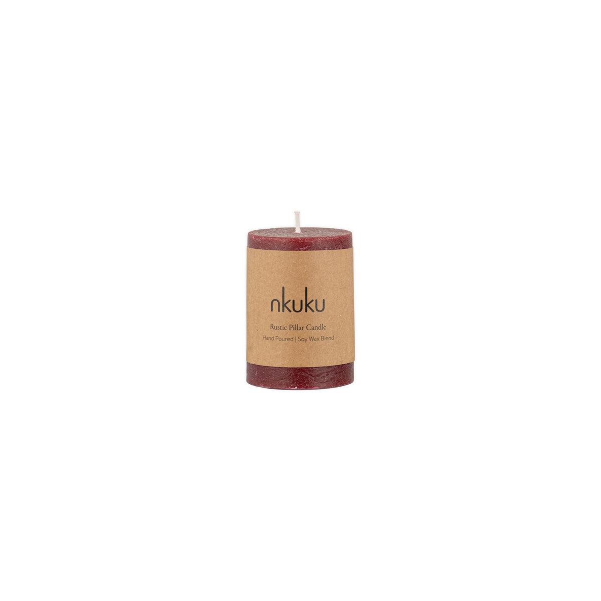 nkuku Rustic Soy Blend Mini Pillar Candle | Candles & Home Fragrance | Dark Cherry | Mini 8 x 7 cm