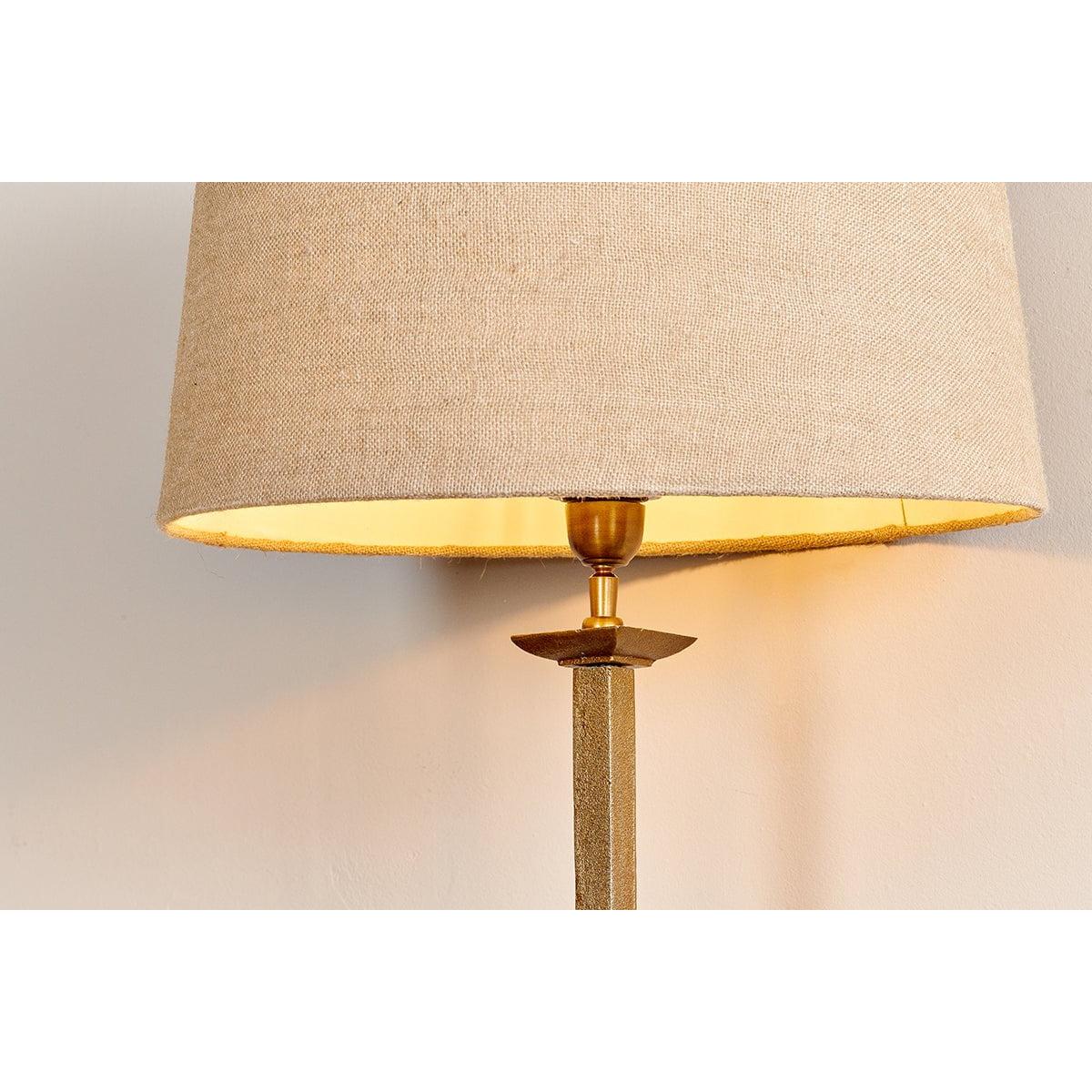 The Sahhil iron tripod floor lamp fuses traditional materials and techniques with modern design. The low tripod base and sturdy pole have a textured finish. The antique bronze finish complements a variety of interiors and the use of iron gives it an industrial feel. The striking base can support a variety of lampshades, naturals for a more pared back aesthetic and colour for a bolder look. The footprint of the tripod is smaller than a standard tripod lamp making it easier to place in a room setting.