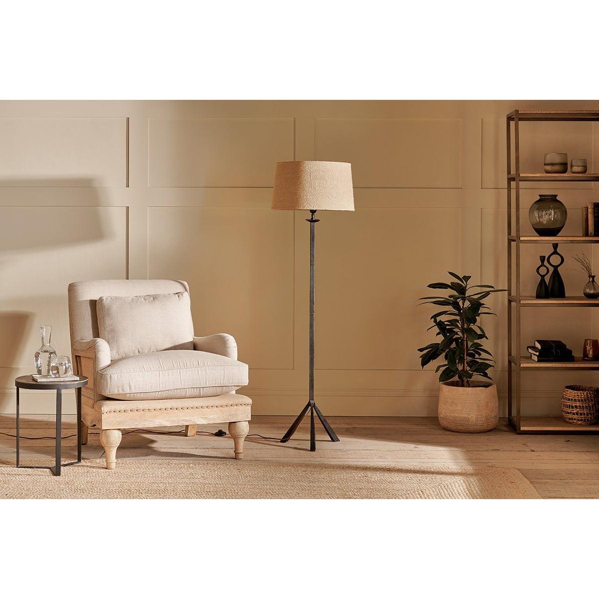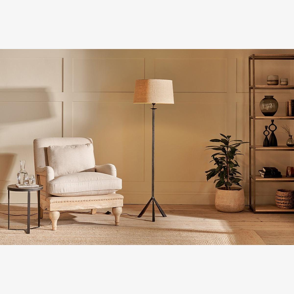 I really like this tripod floor lamp for its versatile, understated style and antique bronze finish, which adds a touch of warmth and sophistication to a variety of interiors. It works particularly well in both traditional and contemporary spaces, especially in cosy living rooms, reading nooks, or even bedroom corner setups. To style it effectively, consider pairing it with neutral or textured fabrics for a layered look, or place it alongside other metallic accents for a cohesive scheme. For a softer touch, cosy up the lamp's glow with a fabric or woven lampshade, and keep the surrounding décor minimal for a clean, curated feel. Its tripod design gives it a slightly rugged yet elegant vibe, making it a practical yet stylish addition to any room aiming for relaxed sophistication.