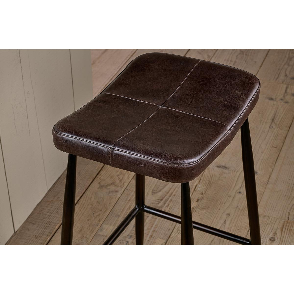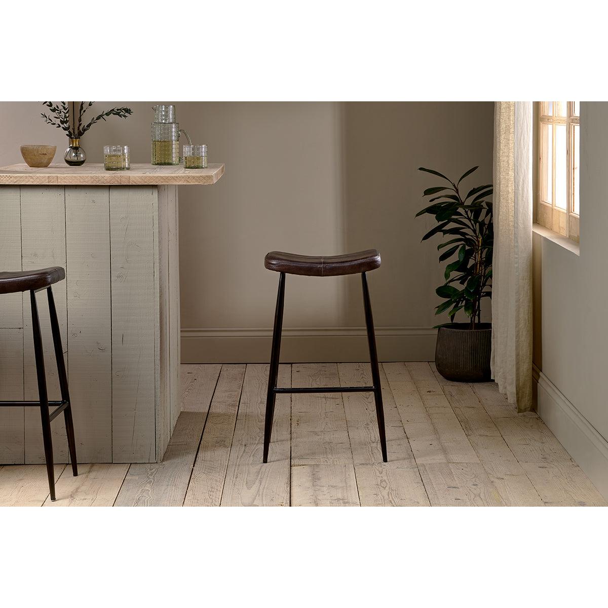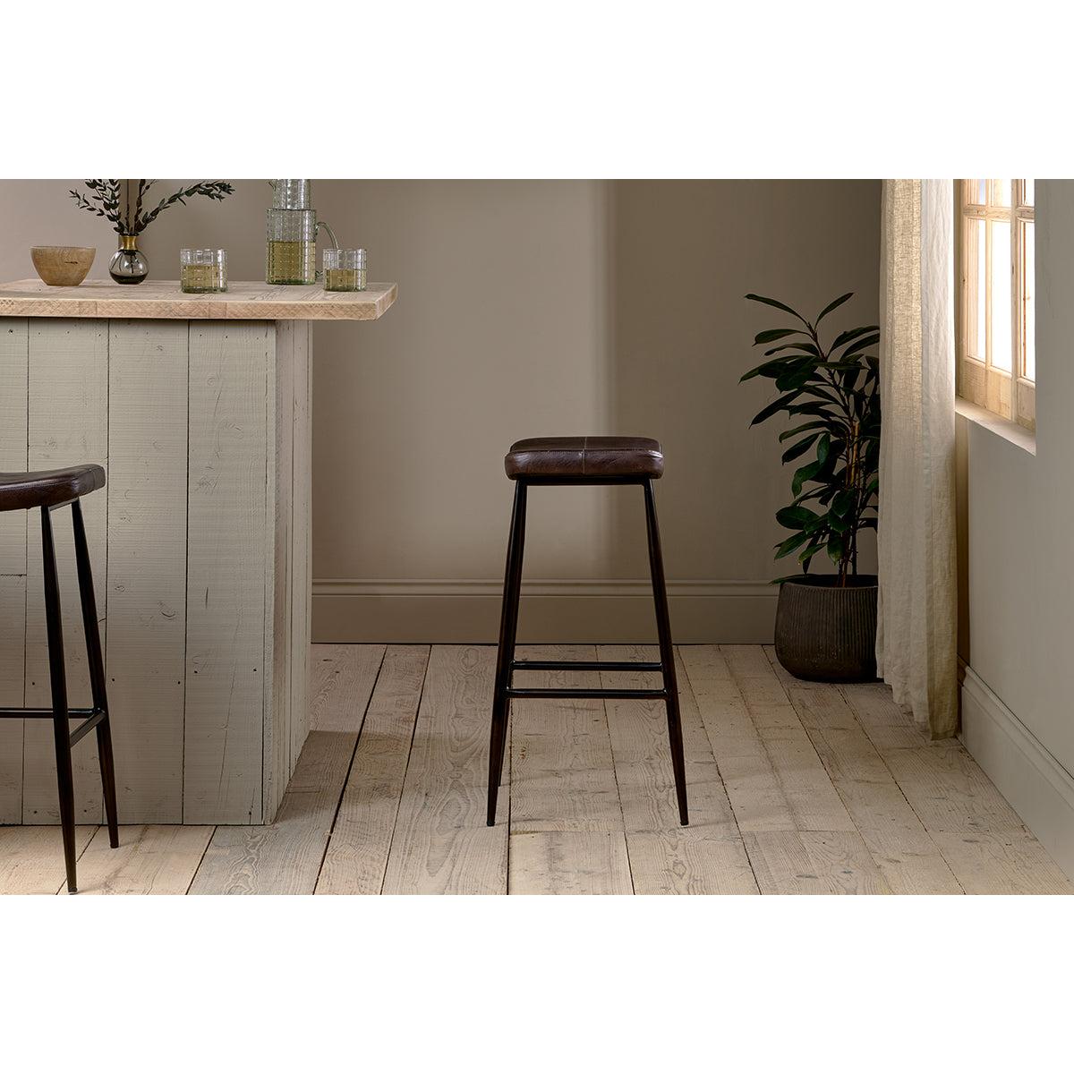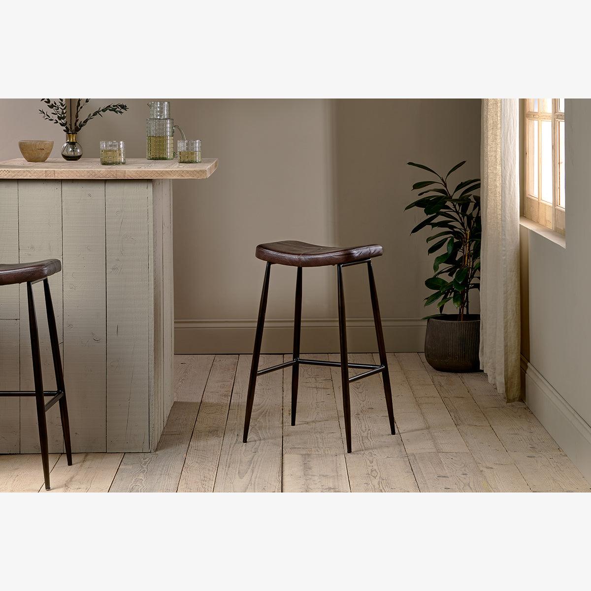 Nkuku Samaira Leather Counter Stool | Chairs Stools & Benches | Chocolate Brown