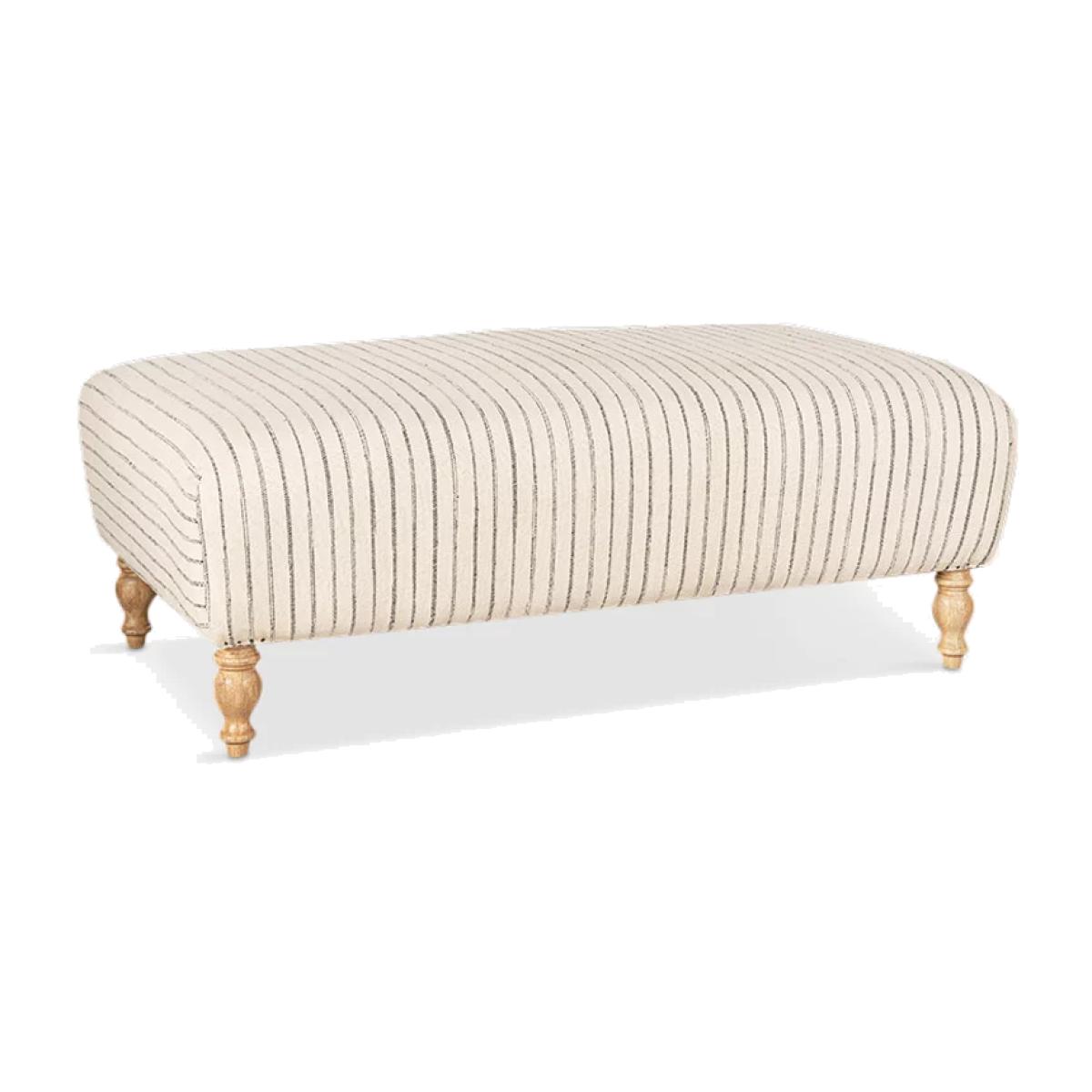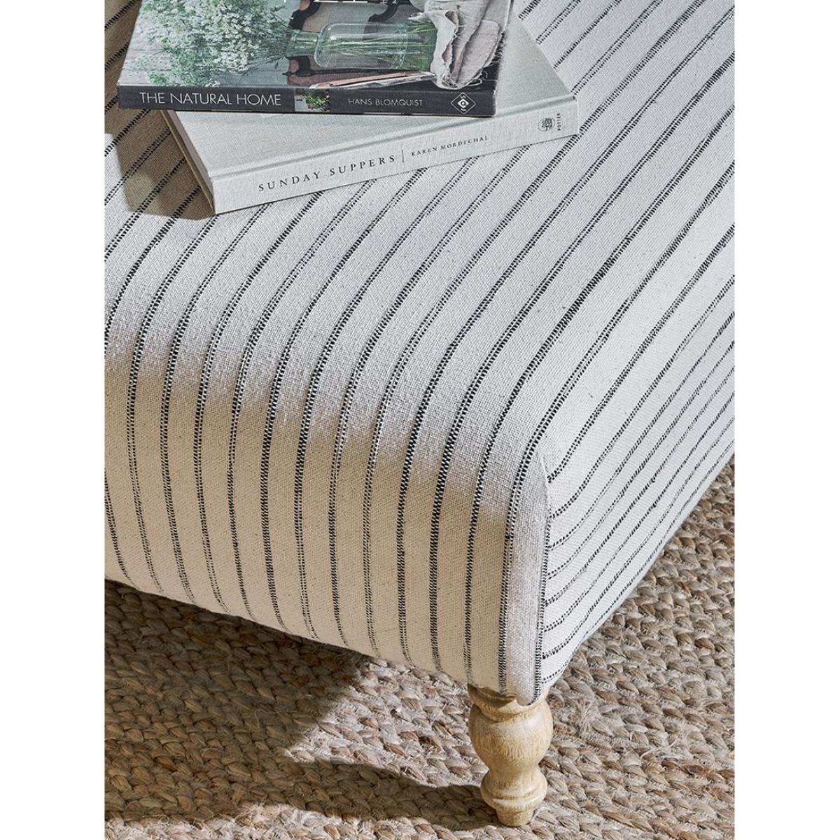 The Sanja ottoman is a beautiful addition to a living room or bedroom, with its striped design making it a truly timeless piece. The faded woven stipe contrasts subtly with the ottoman's natural linen base for a gentle patterned look that fits in with a neutral, natural scheme or brings calm to a brighter setting. The generous proportions make it exceptionally comfortable, and its turned wooden legs add an attractive decorative detail.