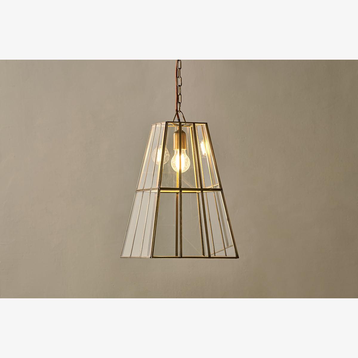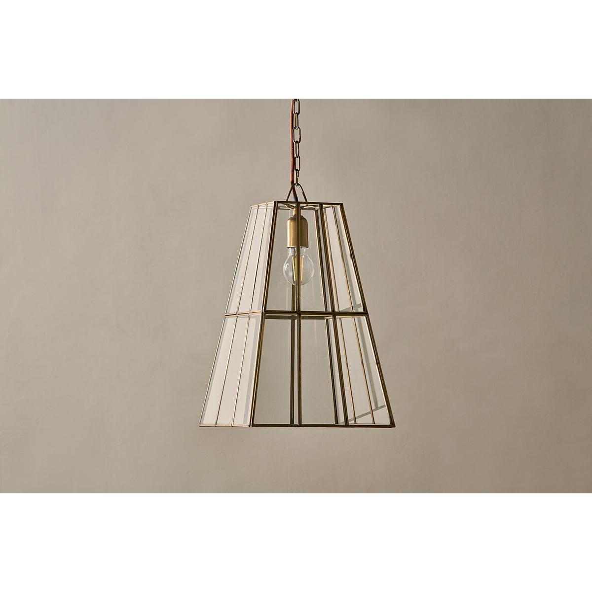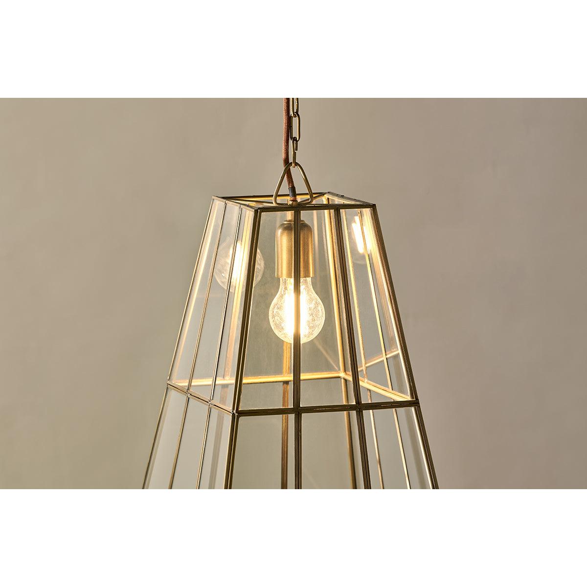 nkuku Solan Glass Lantern Pendant | Lights | Antique Brass/Clear