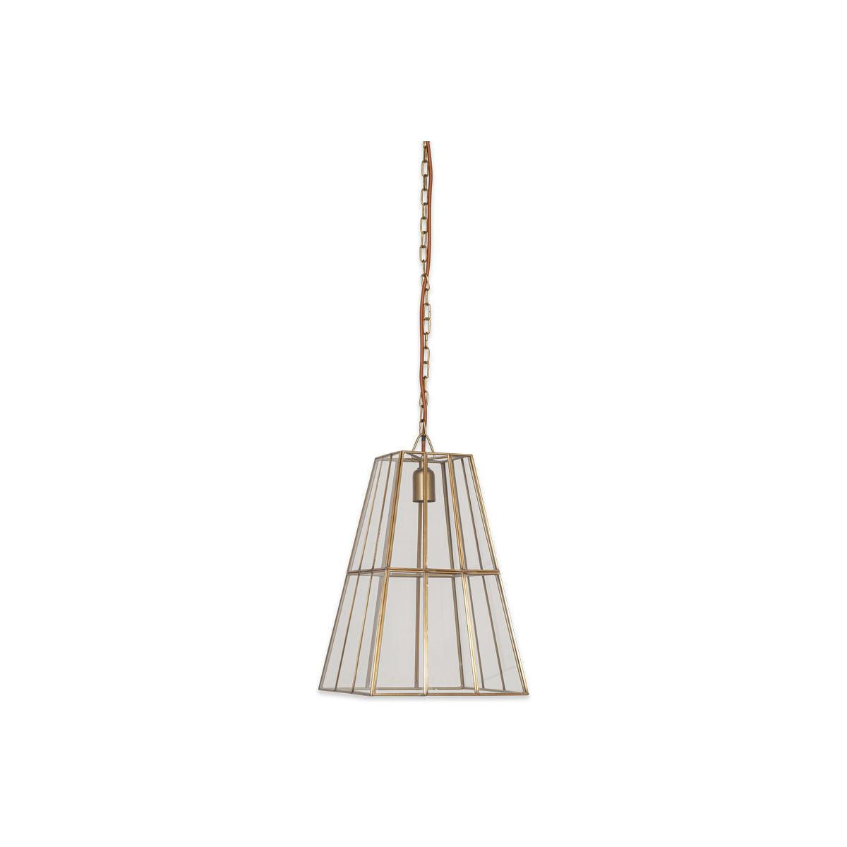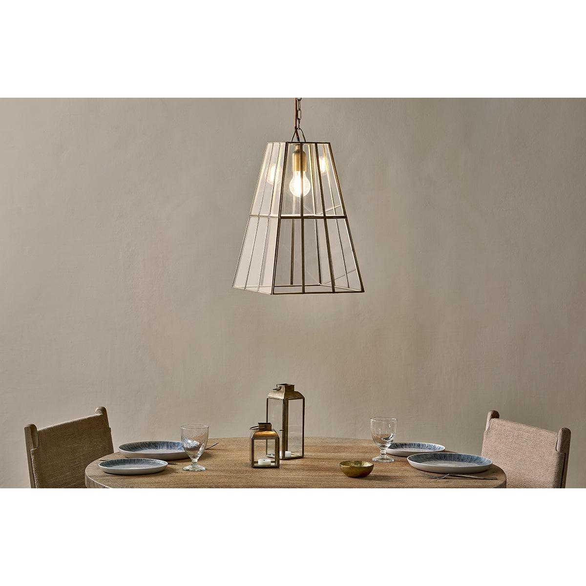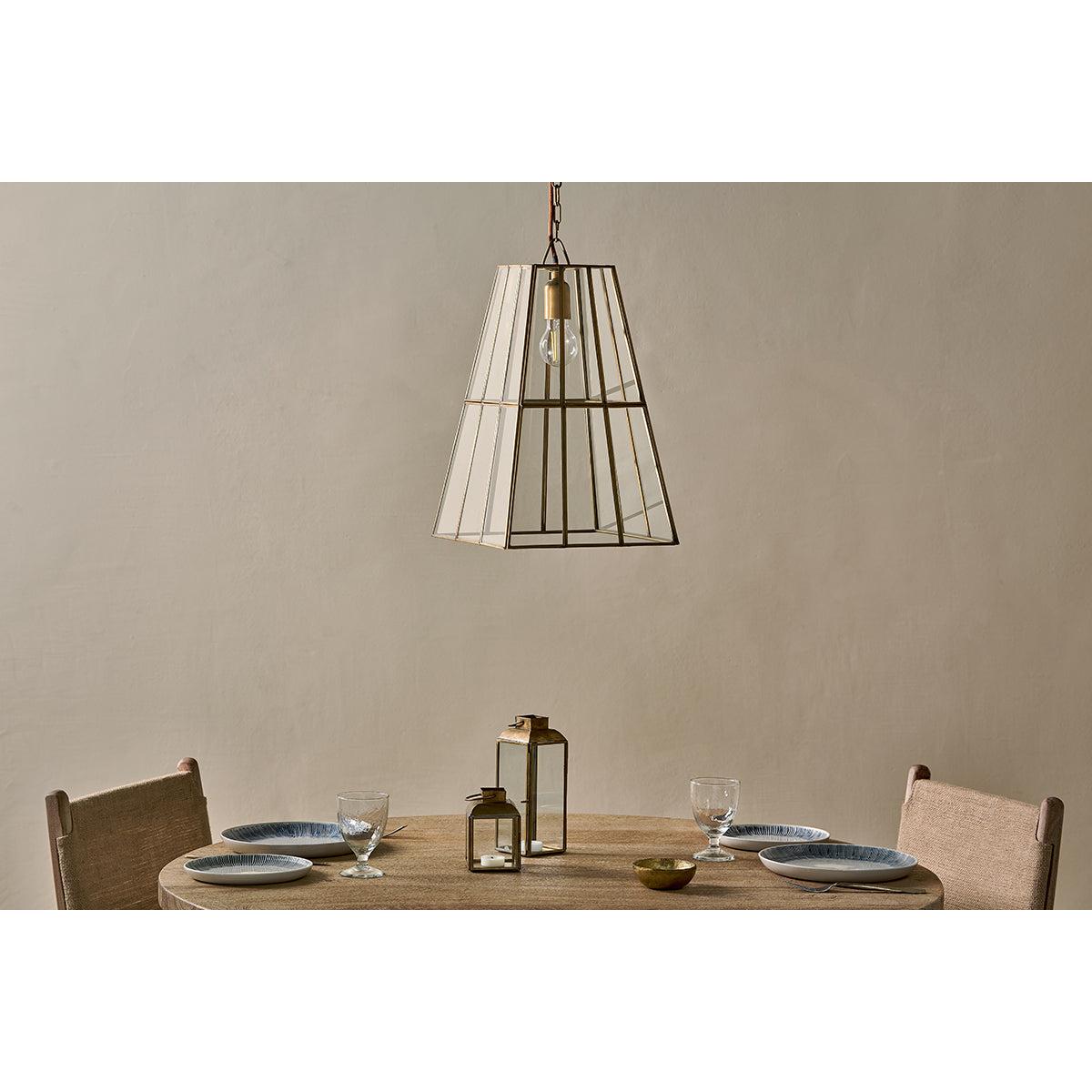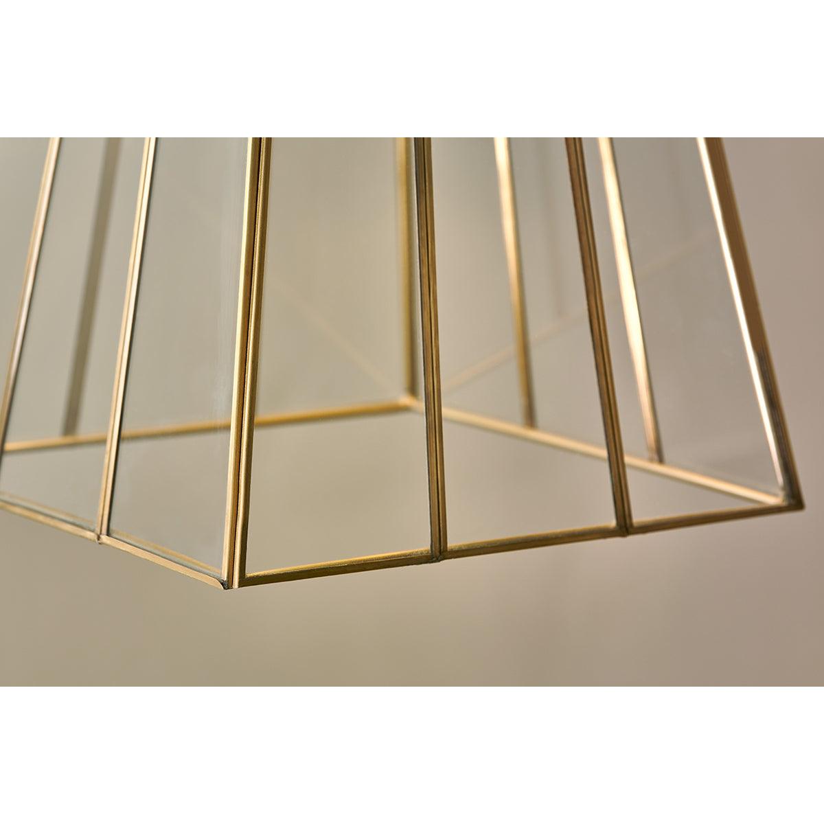 nkuku Solan Glass Lantern Pendant | Lights | Antique Brass/Clear