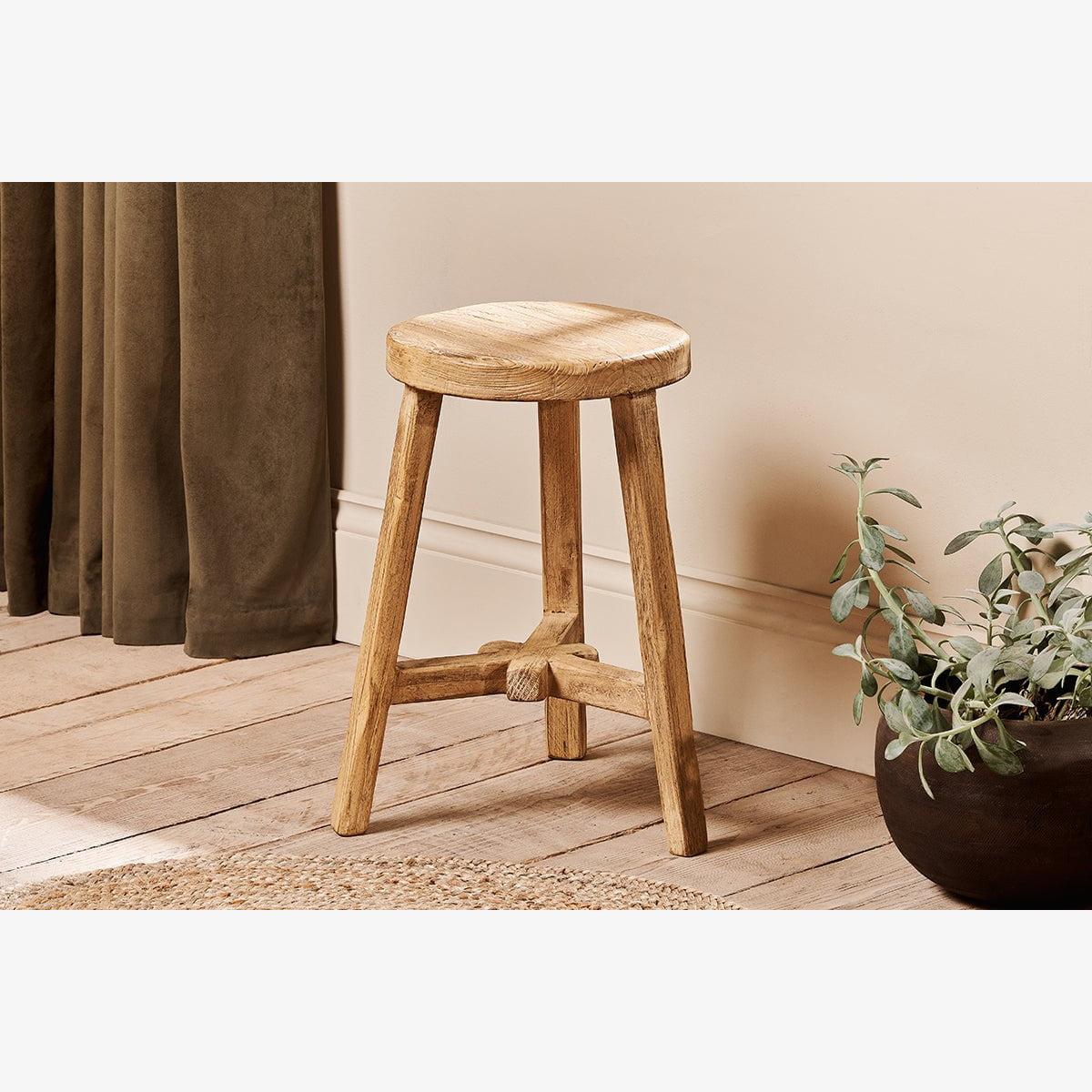 Nkuku Talda Reclaimed Elm Round Dining Stool | Chairs Dining Stools & Benches | Natural