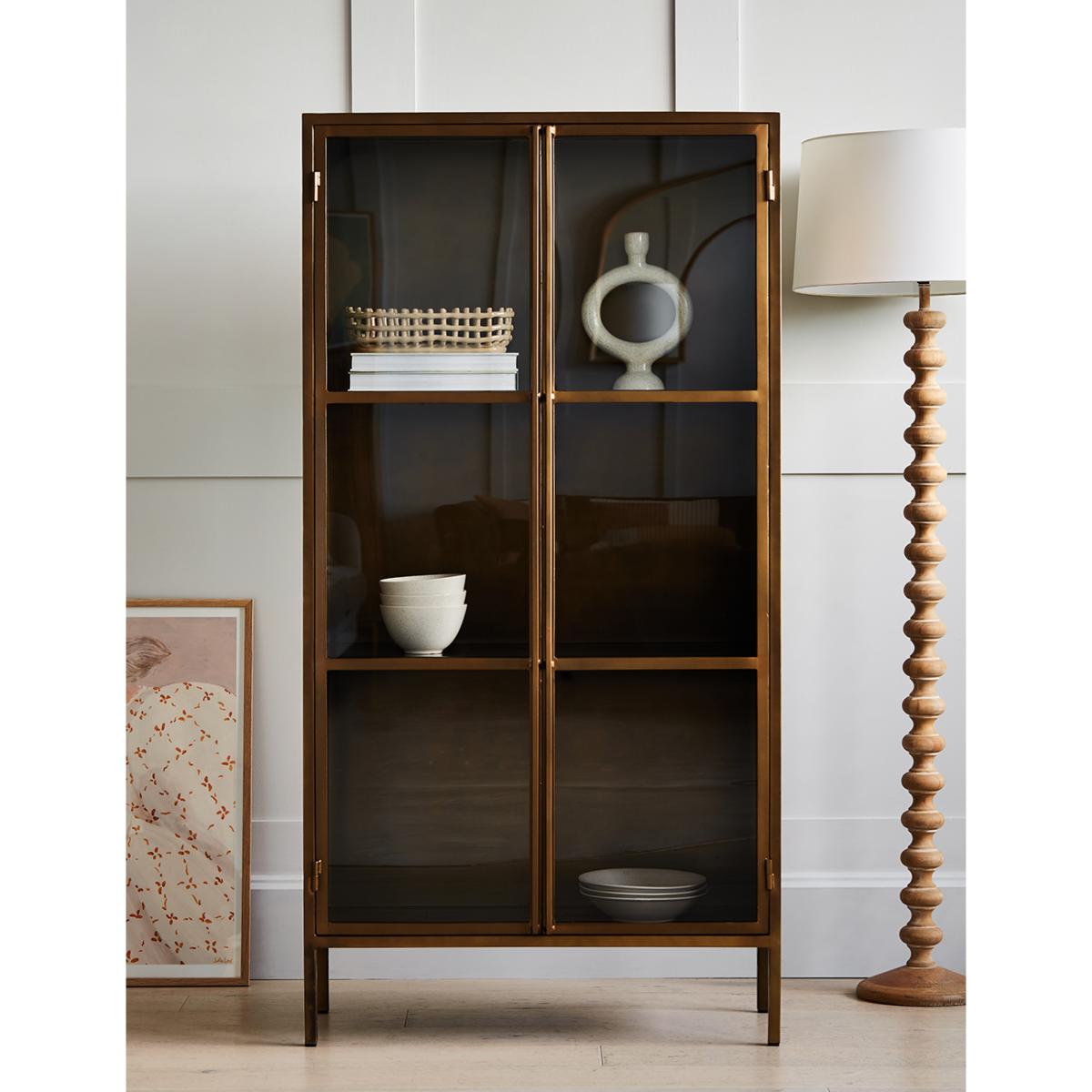 Nkuku Tall Antique Brass Ranchi Display Cabinet
