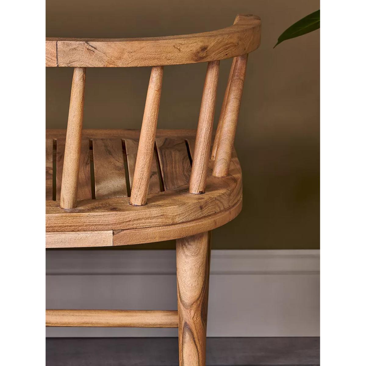 I love this bench for its clean, natural lines and the warm tone of the acacia wood, which adds a touch of organic charm to any dining space. It works especially well in rustic, Scandi, or boho interiors, providing a relaxed yet refined seating option. Practical styling tips include layer­ing it with cushions or throws for added comfort and personality, or pairing it with a coordinating table to create a cohesive dining area. Its simple design also makes it versatile enough to serve as extra seating in a hallway or even as a standalone piece in a casual lounge. Overall, it’s a practical yet stylish choice that can easily adapt to various interior styles.