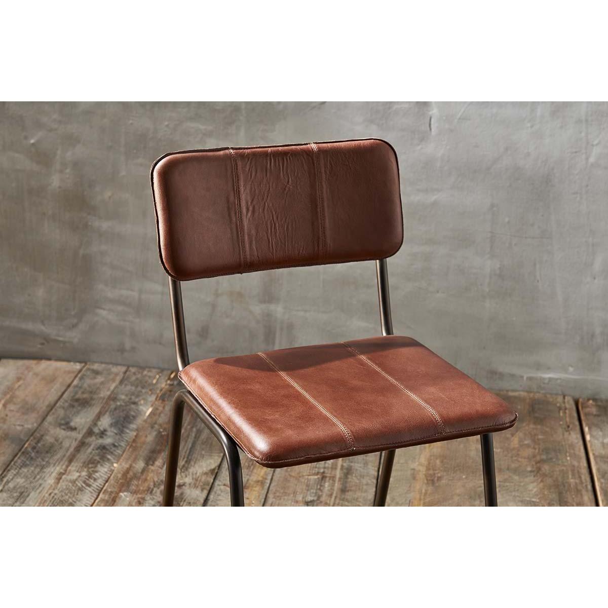 The rich brown hue of our leather Ukari dining chair offers both style and comfort. The upholstered leather seat and back are supported by a stylish iron frame. | nkuku Ukari Leather Dining Chair | Seating | Chocolate Brown
