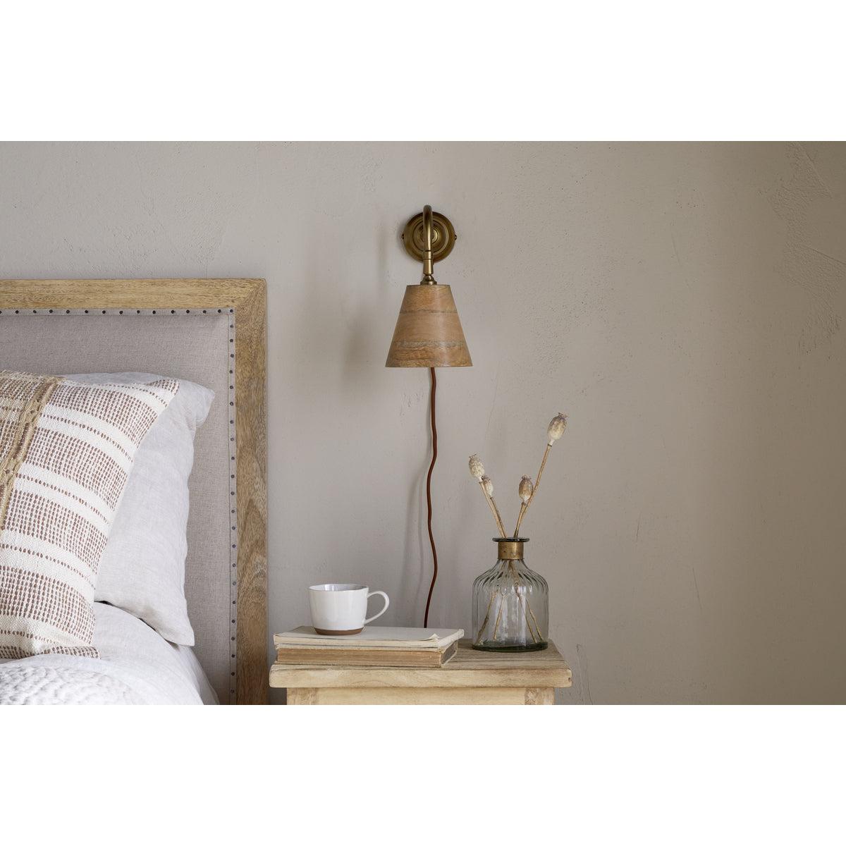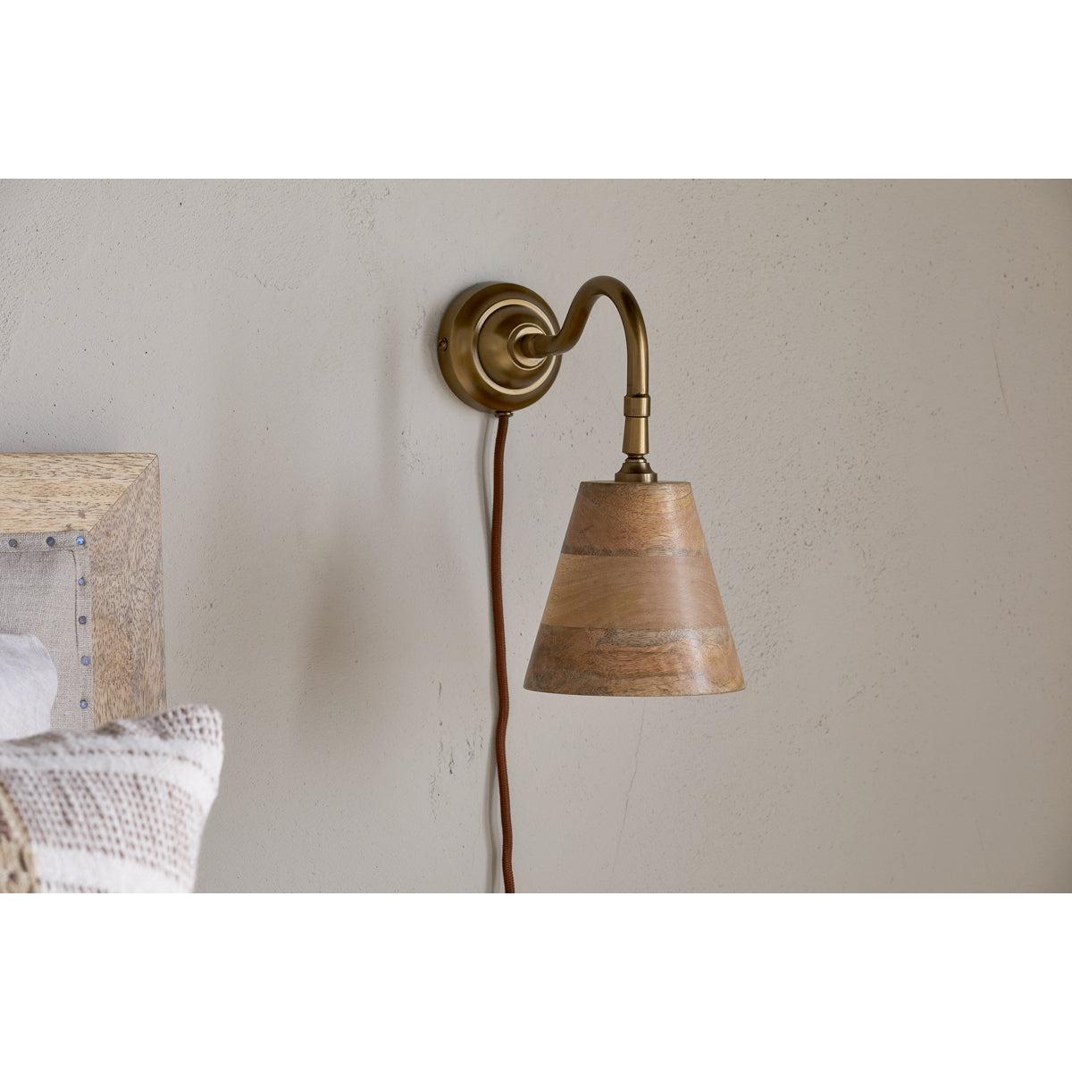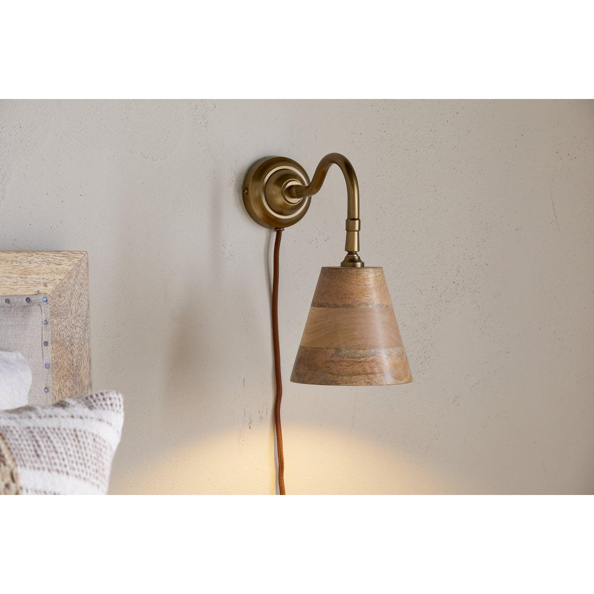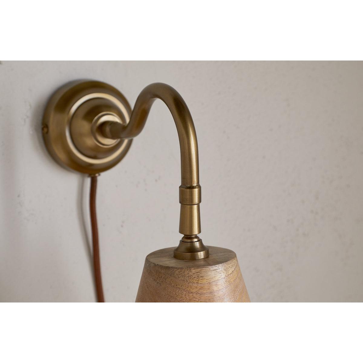 nkuku Vattu Mango Wood Plug In Wall Lamp | Lights | Natural/Antique Brass