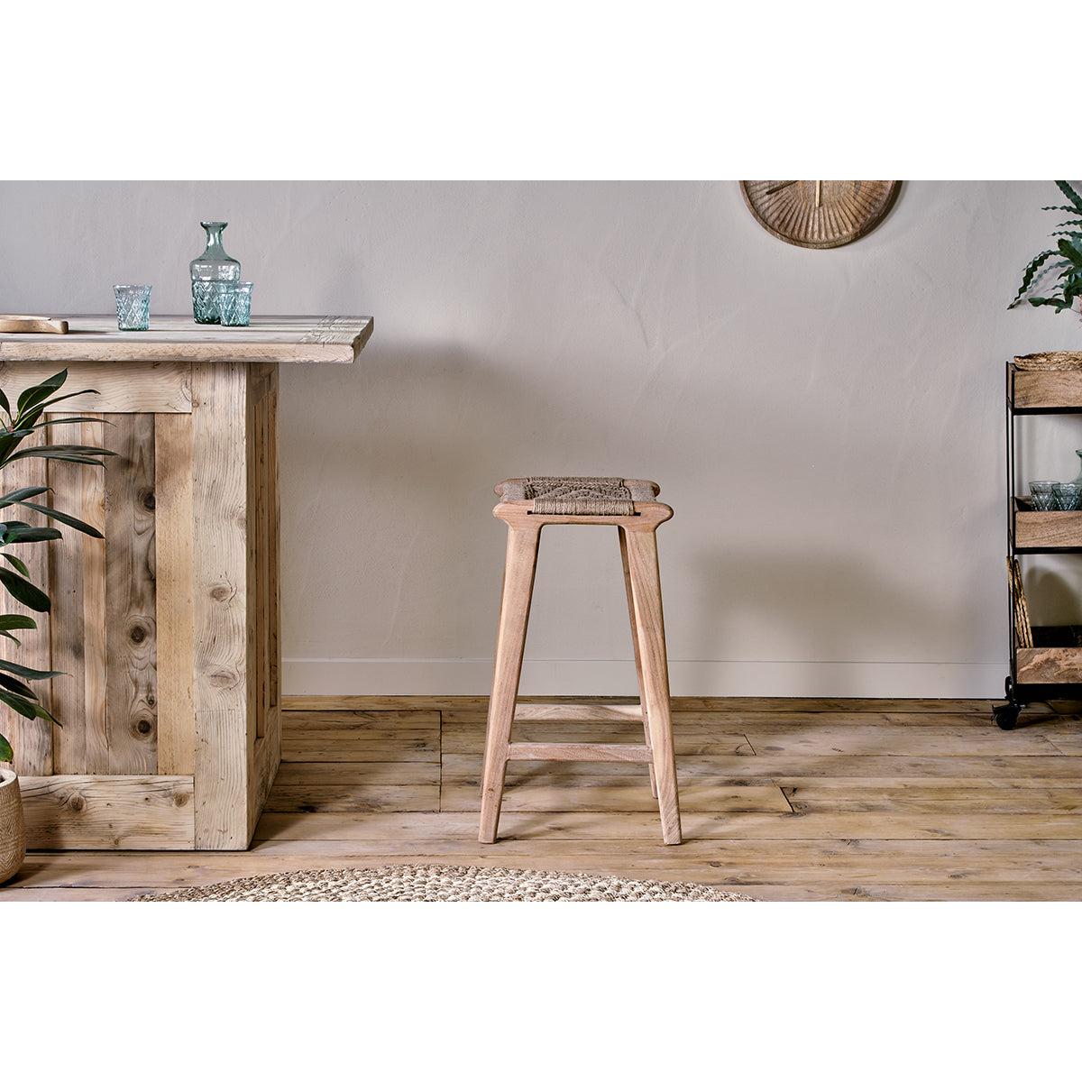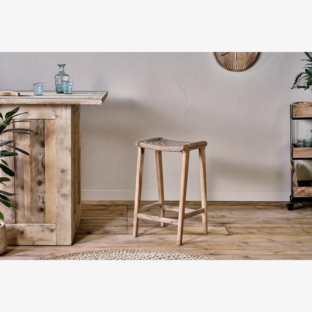 I’m a fan of the Vinay woven stool for its pared-back form and warm natural tones - it brings texture without adding bulk. Its woven seat and softly turned legs sit neatly under a kitchen island or counter, making it ideal for Scandi-inspired, coastal or muted rustic schemes. For styling, try pairing two of these stools at a pale oak breakfast bar and soften the look with a neutral linen cushion or a small sheepskin drape. They’re light enough to move into a snug alcove as occasional seating, and their simple lines work well alongside other natural materials such as jute rugs, rattan pendant lights or unfussy ceramic vases.
