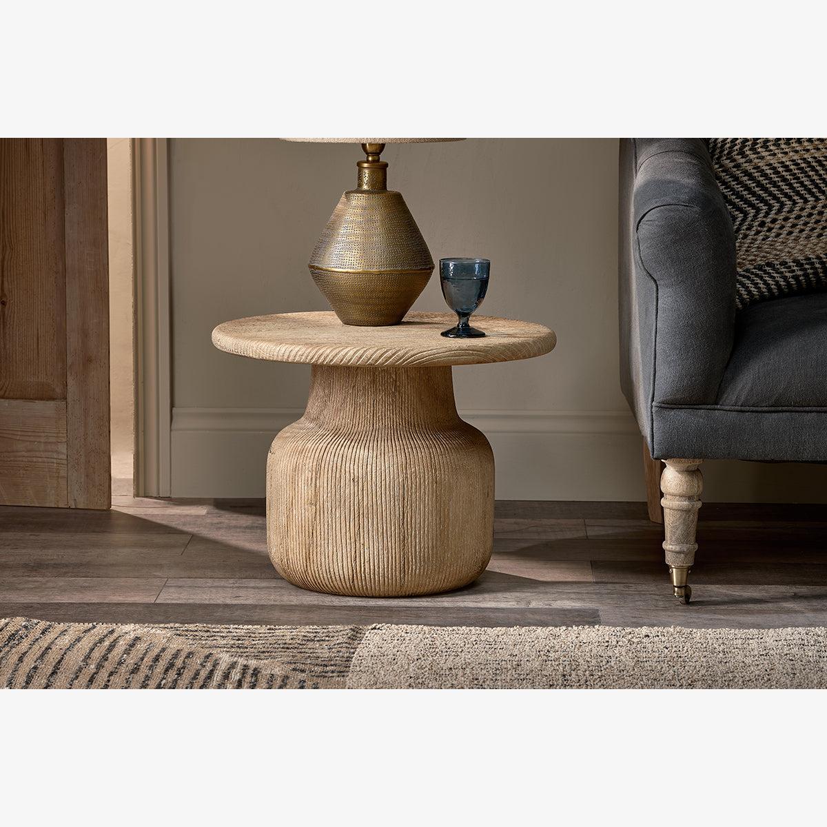 Nkuku Vivan Grooved Wood Side Table | Tables | Natural