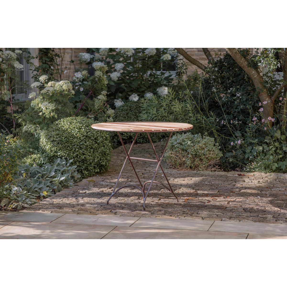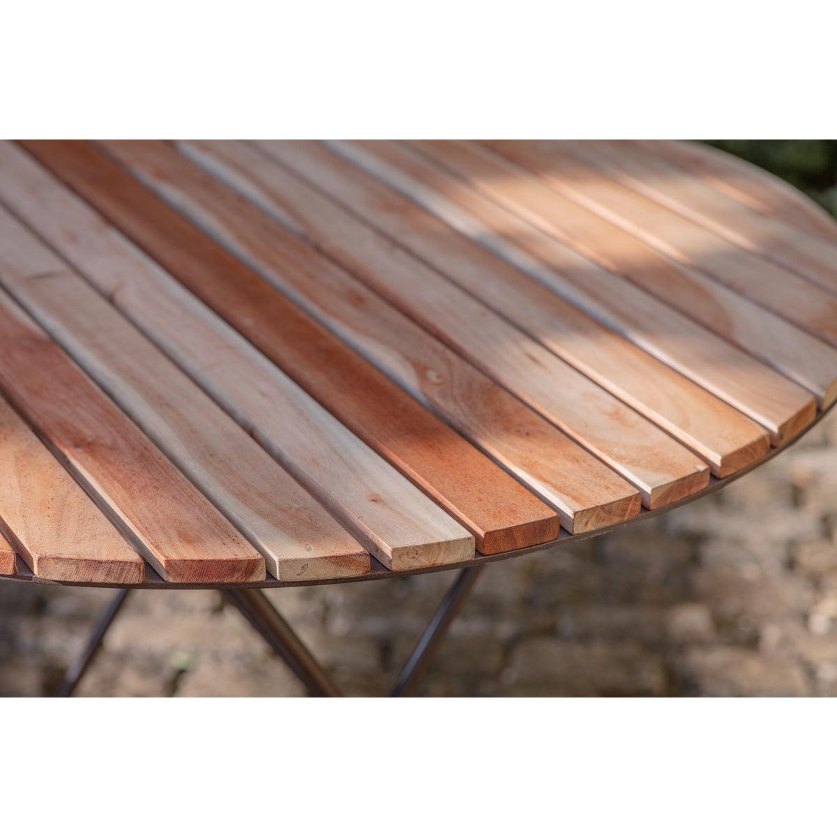 I’m a fan of the Vivika table for its simple round top and slender iron frame - it brings a relaxed, natural feel without looking fussy. It works equally well in a cottage-style garden, a pared-back urban terrace or a boho courtyard when paired with mismatched metal or rattan chairs. For practical styling, add a neutral linen runner, a couple of terracotta pots with fresh herbs as a centrepiece and soft outdoor cushions in muted greens or ochres. To keep it looking its best, give the timber a light coat of teak oil each season and store or cover it during prolonged wet weather.
