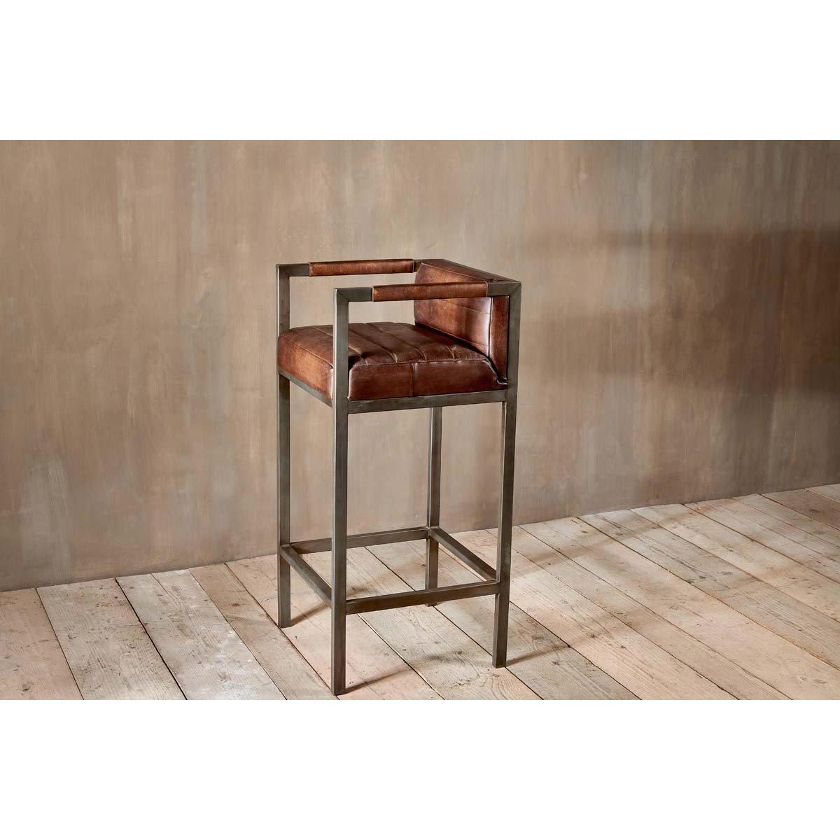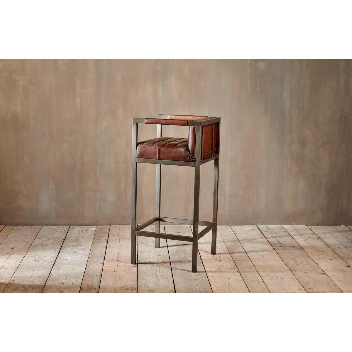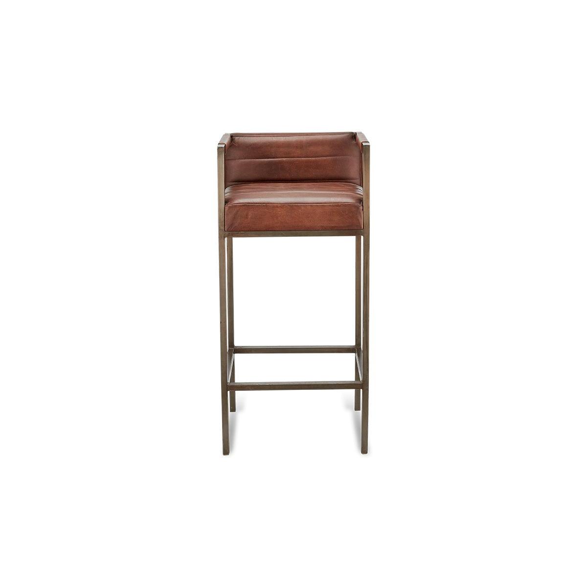 Nkuku Wamma Leather Bar Chair | Furniture | Dark Brown/Brushed Metal