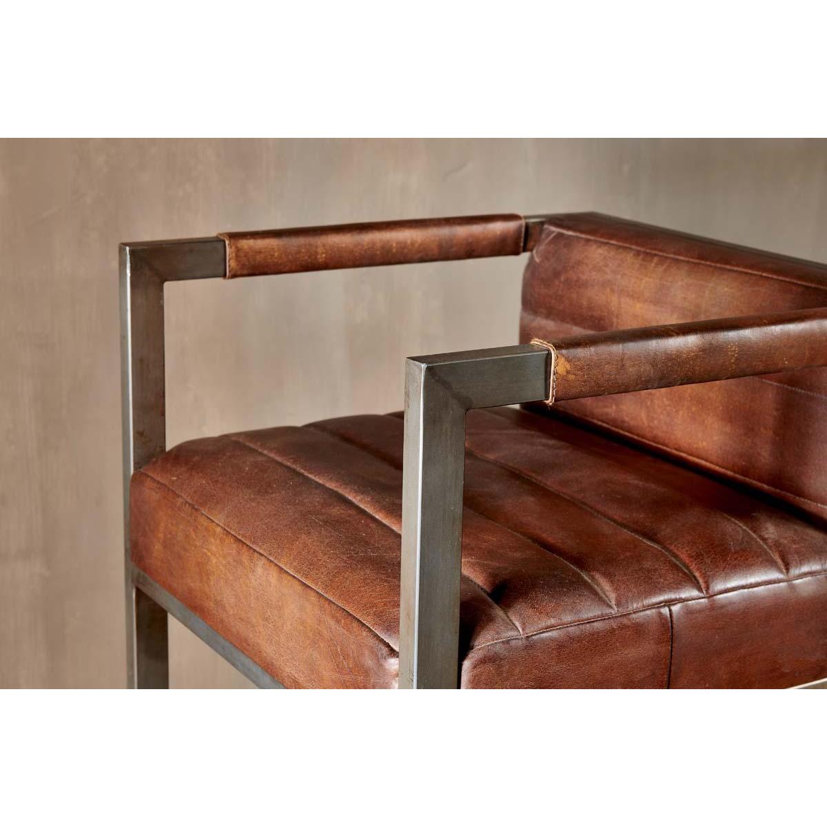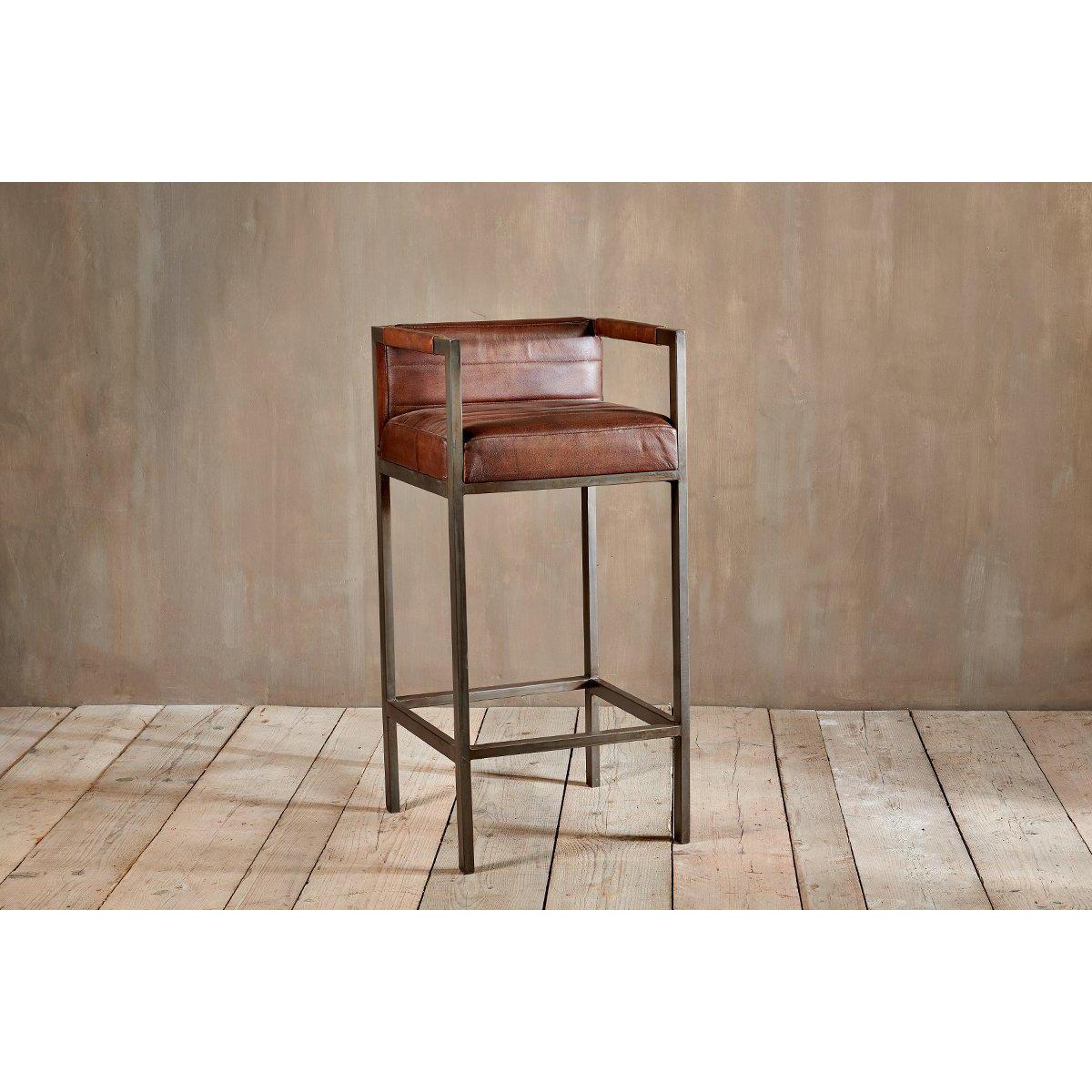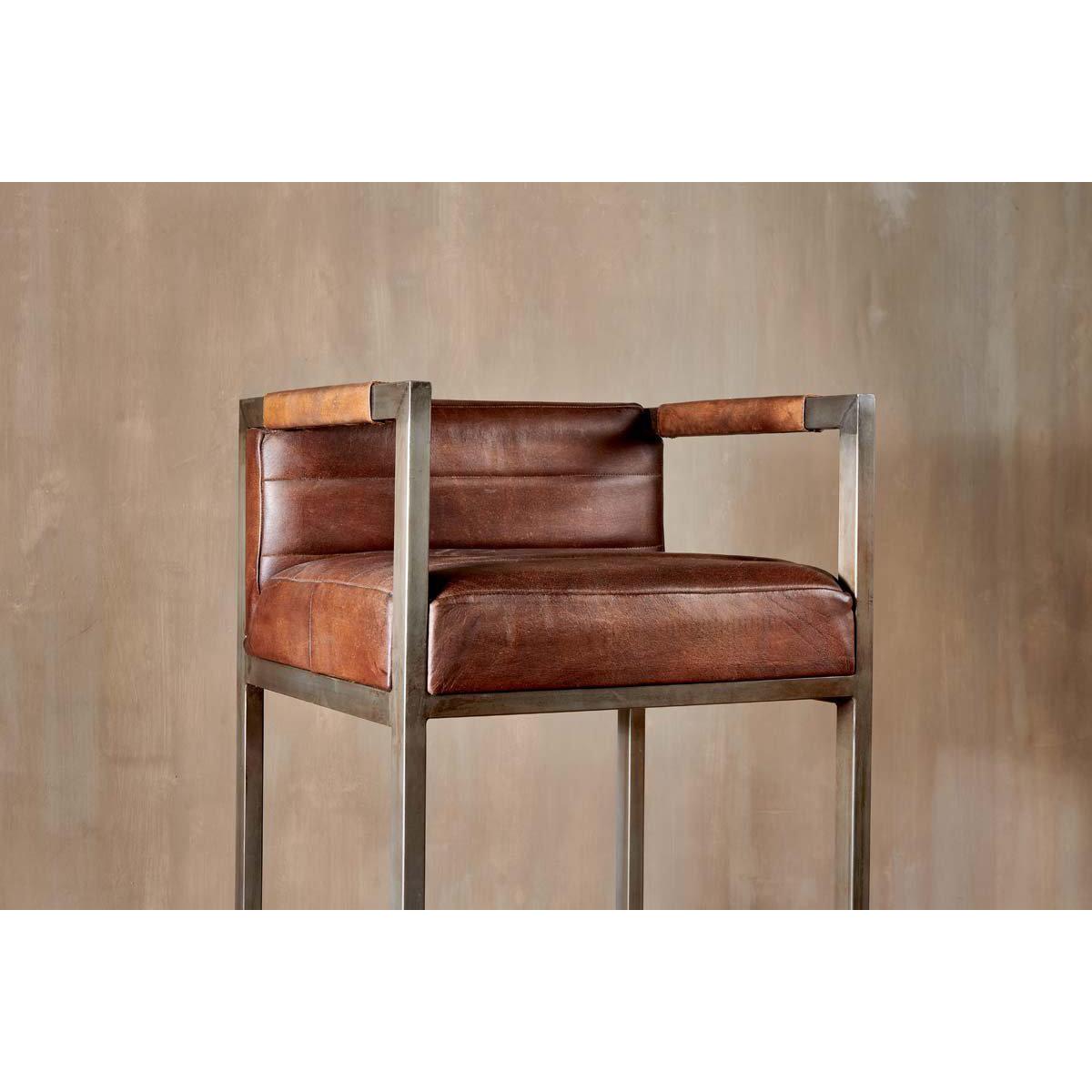 I love this barstool for its blend of rugged leather and brushed metal, which gives it a versatile yet industrial feel. It's ideal for use in contemporary, rustic, or even heritage interiors, where it can act as a statement piece or complement existing leather accents. Practical styling tips include pairing it with a reclaimed wood bar or metal-topped counter to enhance its raw, textured appeal. For added comfort and aesthetic interest, consider mixing it with other materials such as velvet or linen in adjacent seating or accessories. Its sturdy construction makes it a functional choice that balances style with durability, perfect for creating a laid-back bar or kitchen island area.