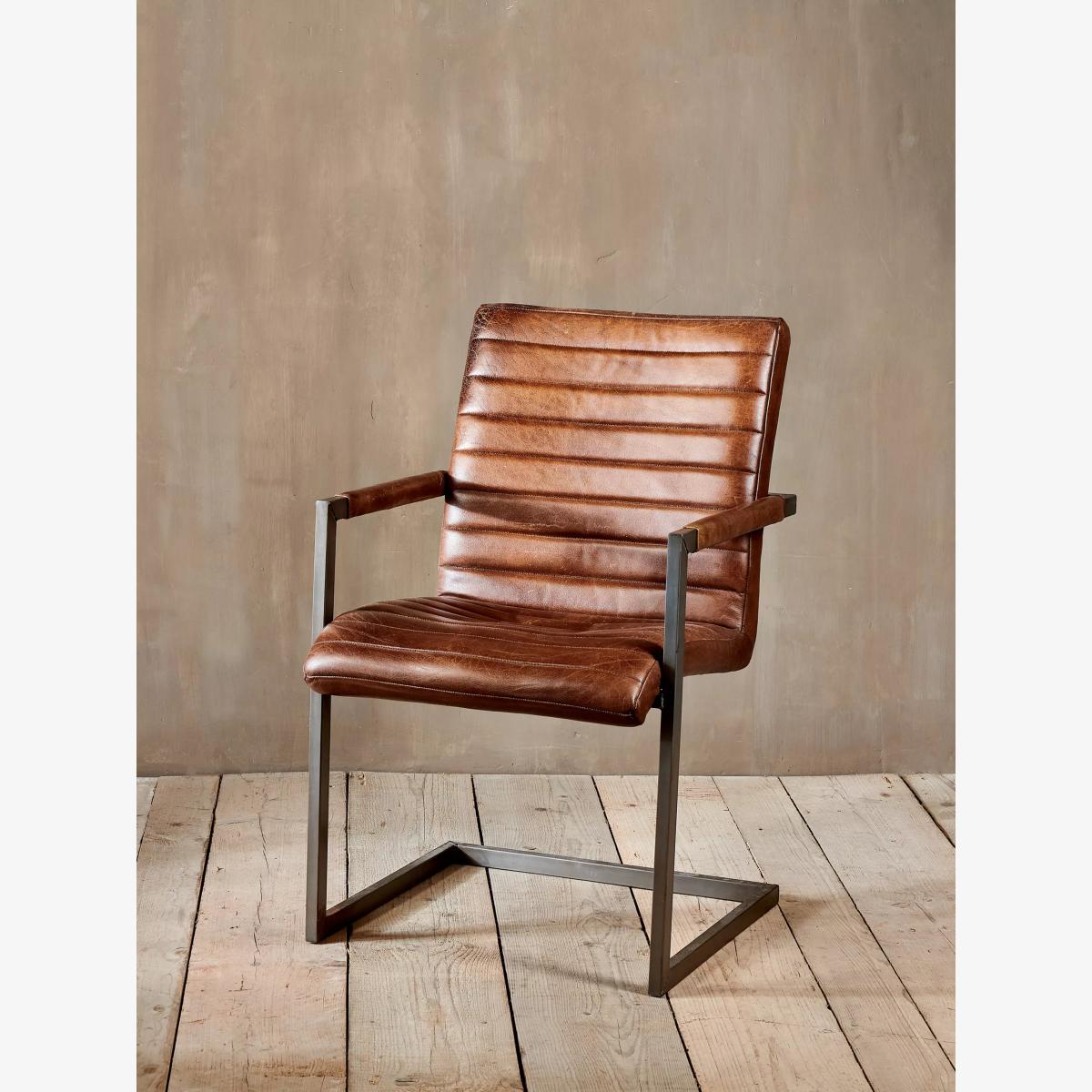 The Nkuku Wamma desk chair combines a striking iron frame with a padded, dark brown leather seat with ribbed stitching detail. Each chair is handmade in India using traditional techniques. The chair is crafted from buffalo leather, a by-product, from herds situated in North India. Want to see it first? You may want to see and get a feel for the furniture in one of our shops before ordering. We'll be able to tell you where the range you'd like to view is on display.