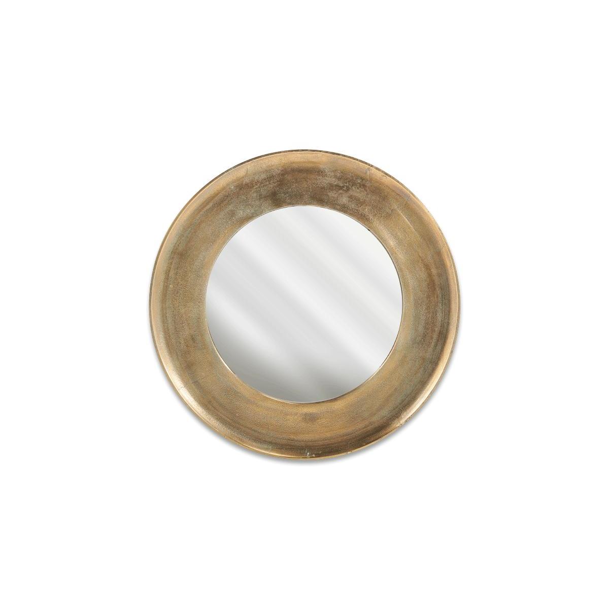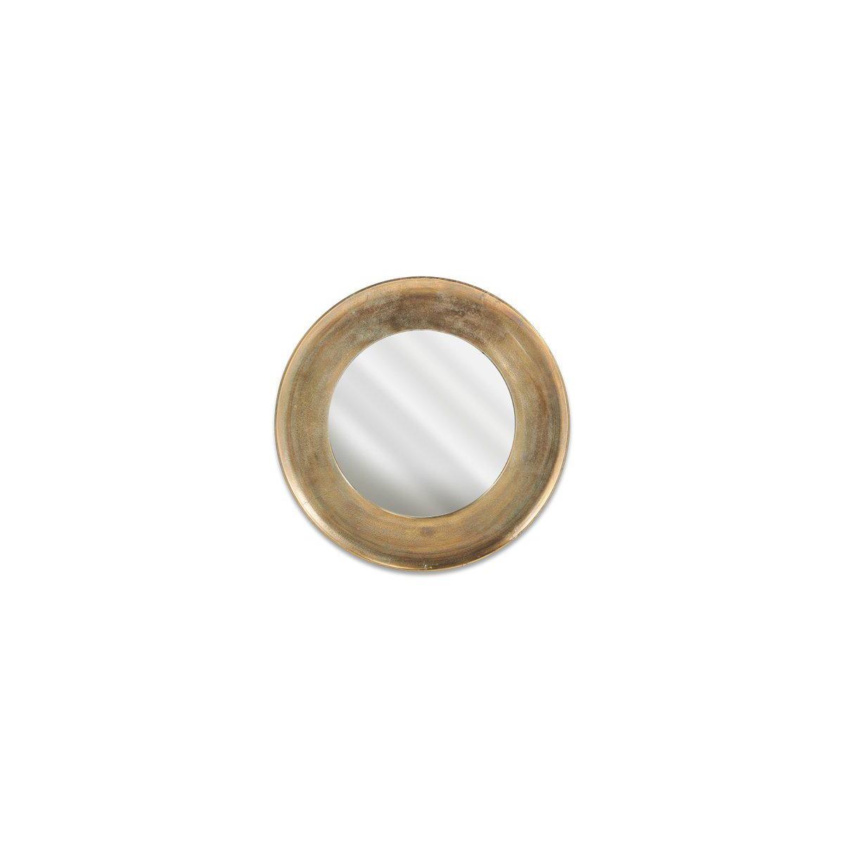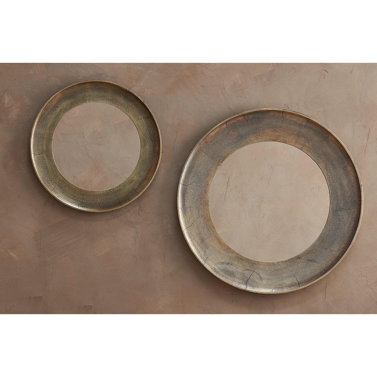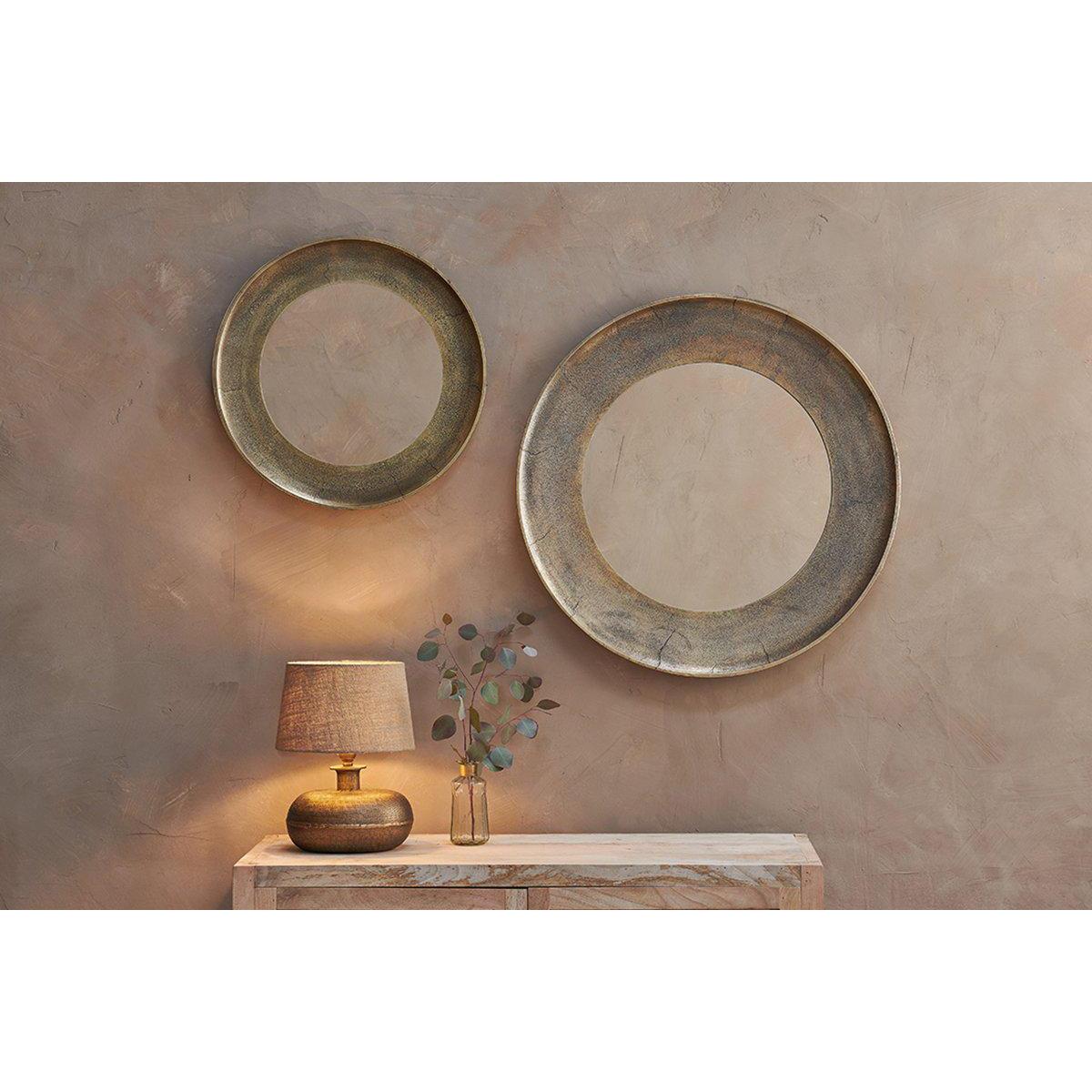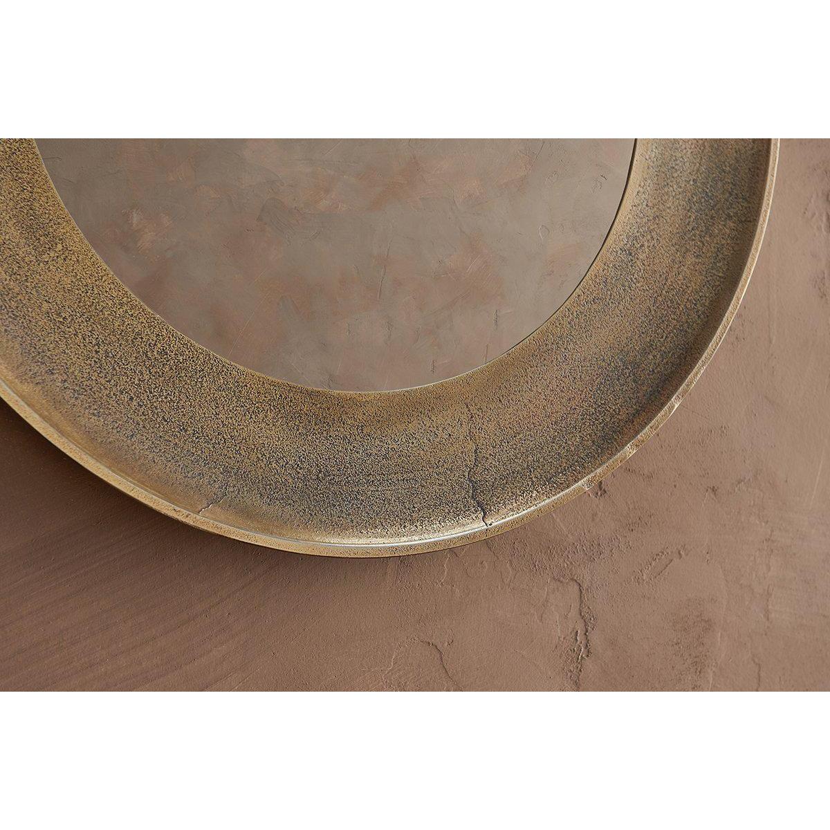 Stylish and beautifully crafted our Yakira mirror makes a striking focal point. The circular design has a deep textured border that celebrates the artisan process. The antique brass finish gives it an attractive antique look. | nkuku Yakira Mirror | Mirrors | Antique Brass | Large