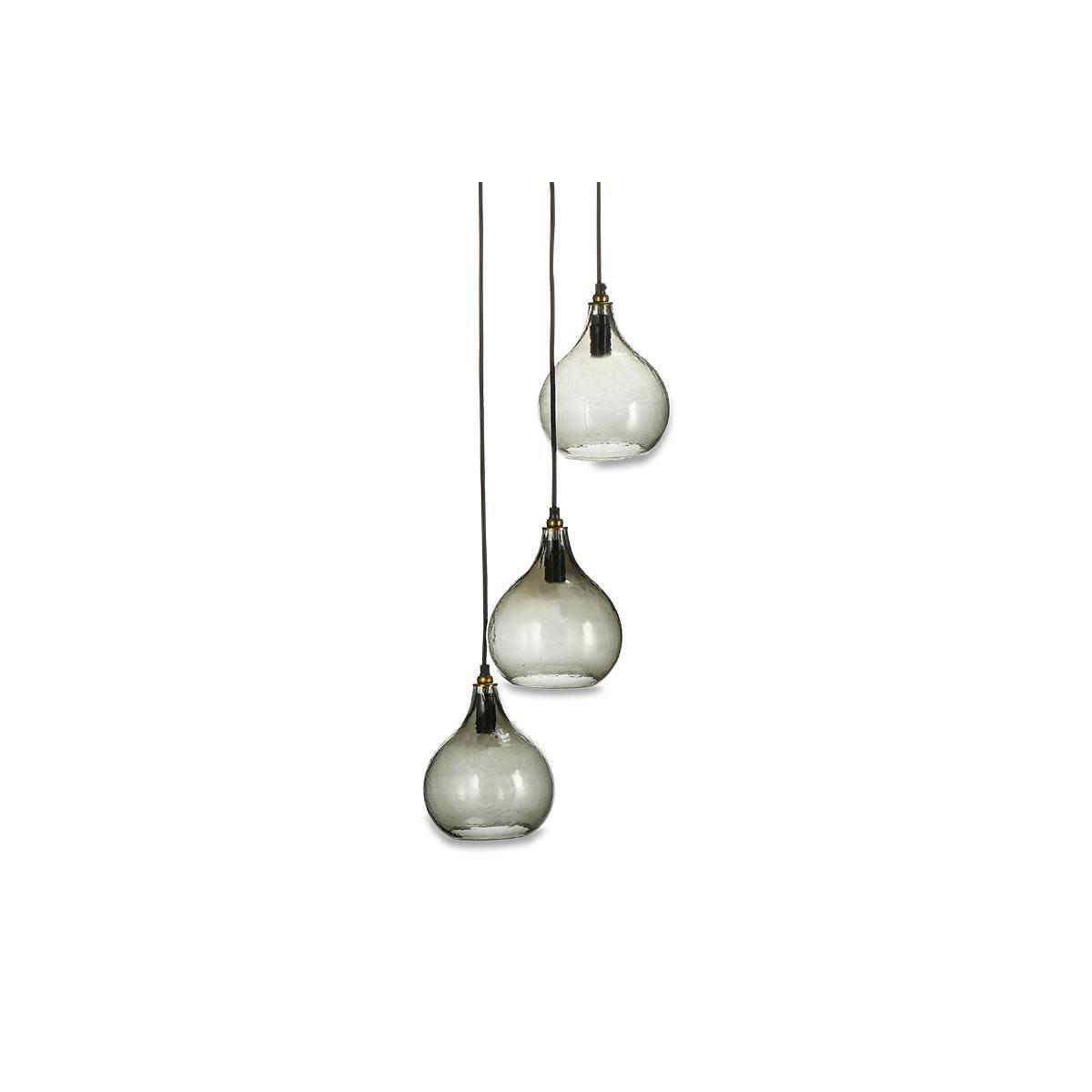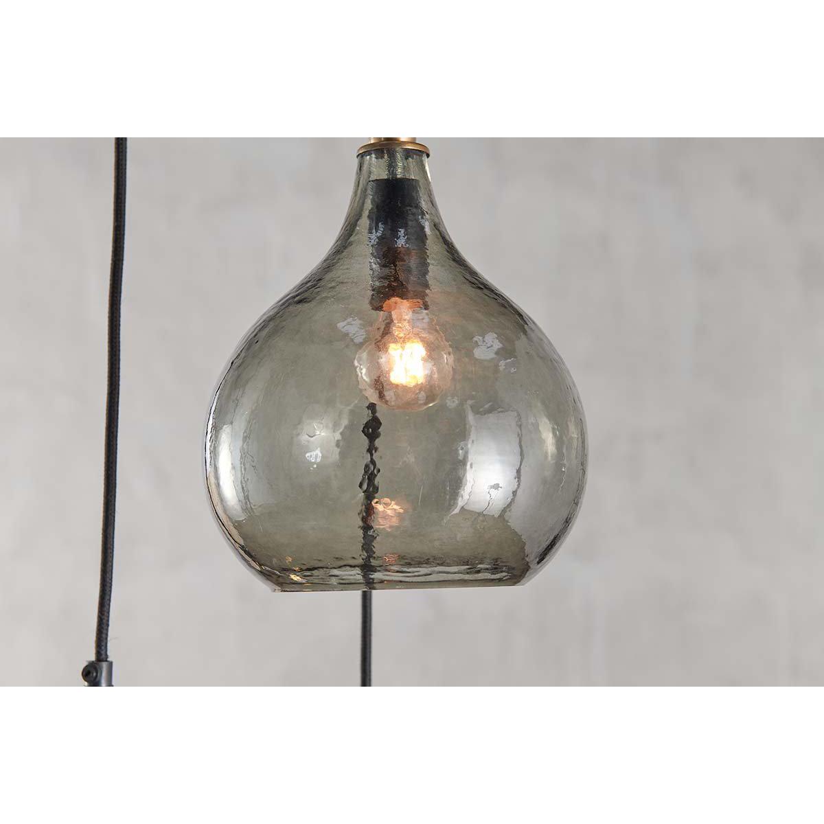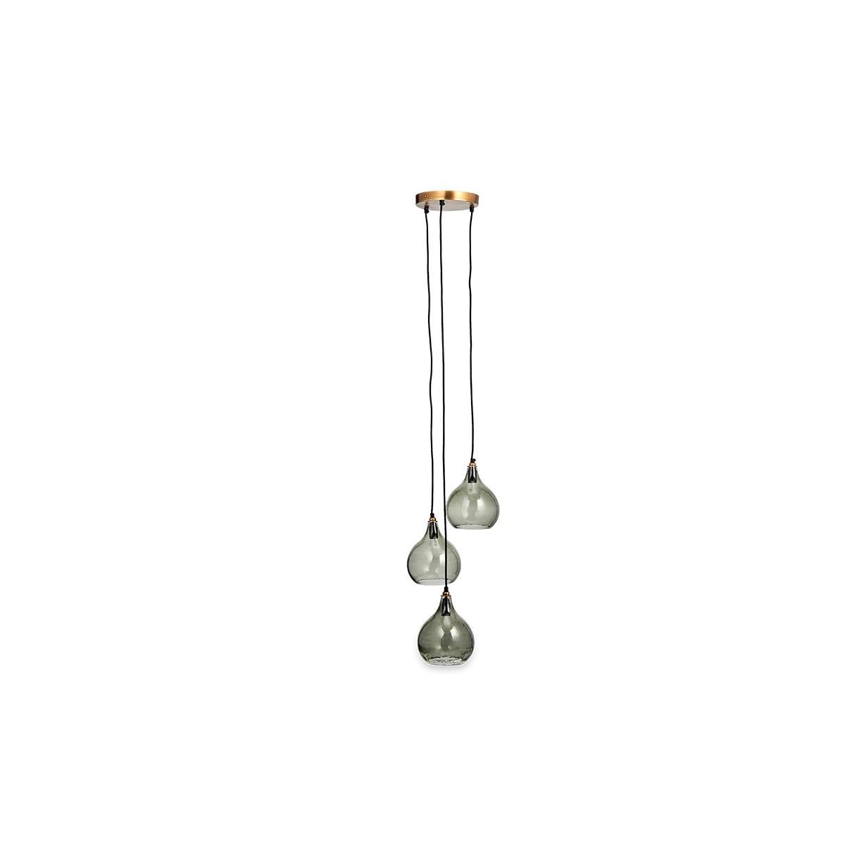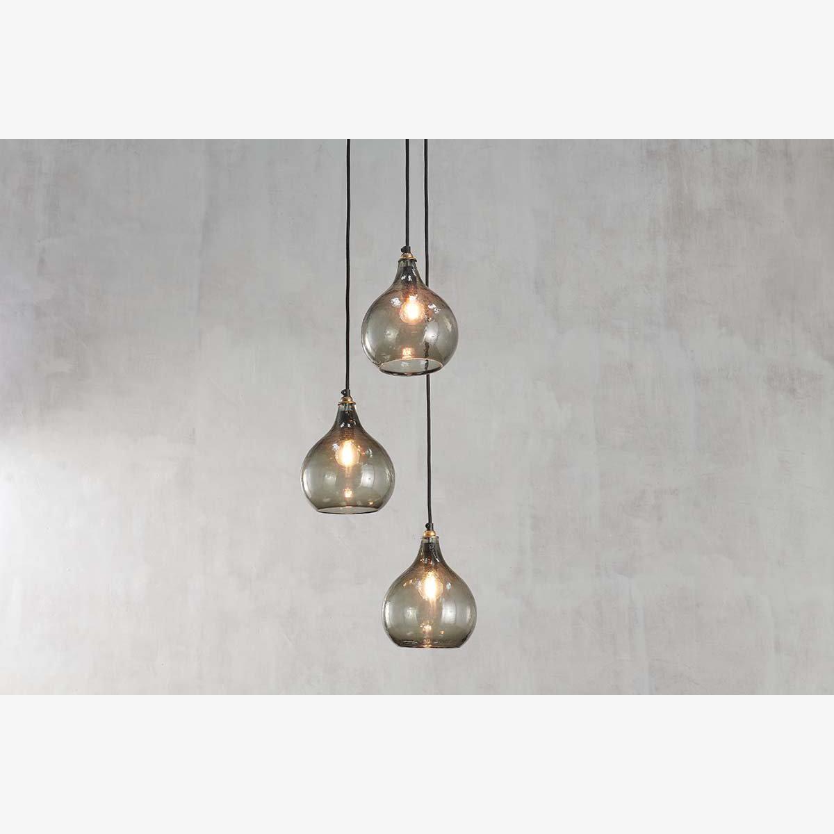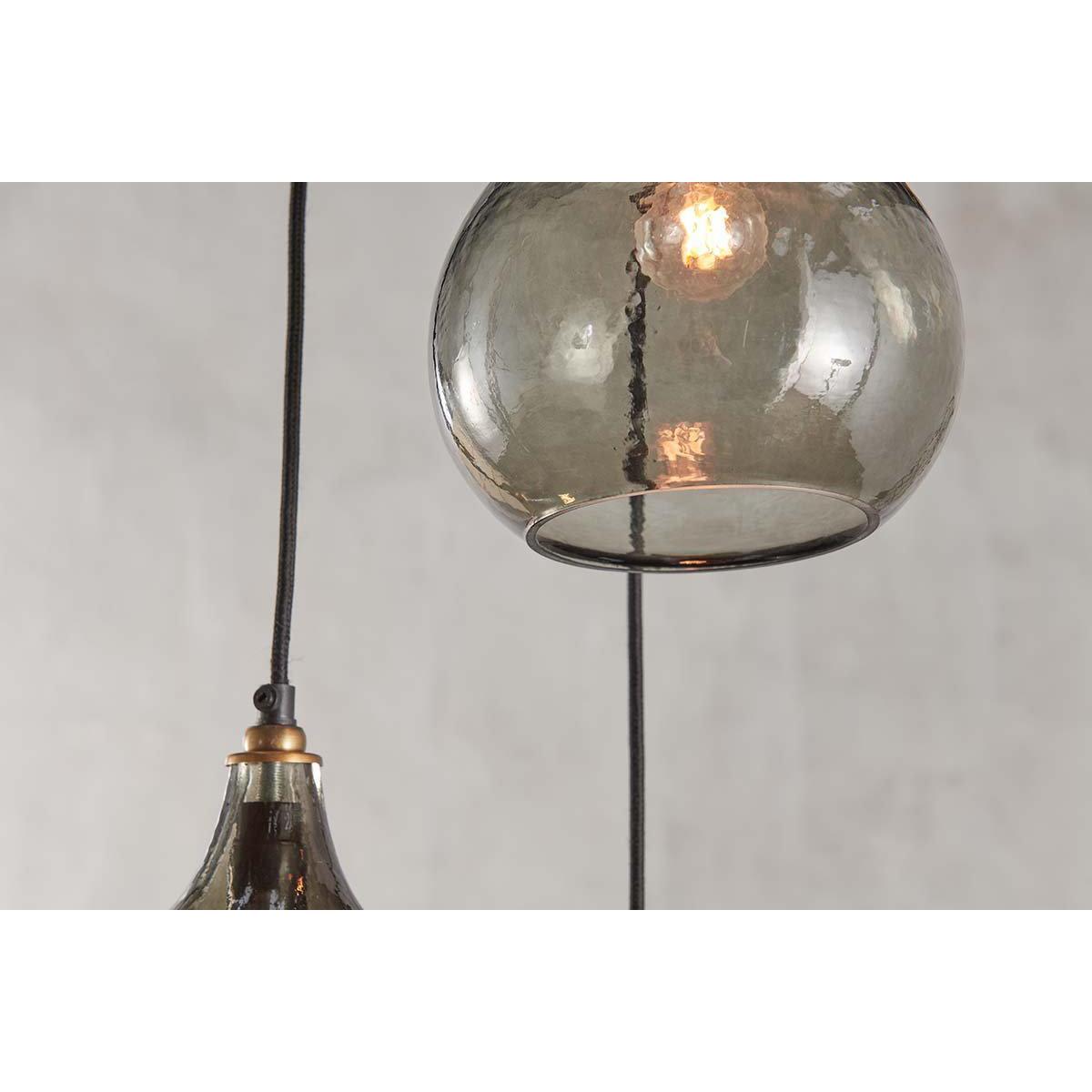 Our Ziva cluster pendant has a stunning and unique design. The glass pendant shape is handblown in a tactile and organic shape, enhanced with a subtle green smoke shade of colour. Each pendant light features a brown fabric cord. The height of the pendant can be adjusted to fit the space required. Style in a hallway or stairwell for an elegant feature. | nkuku Ziva Recycled Glass Cluster Pendant | Lights | Green Smoke