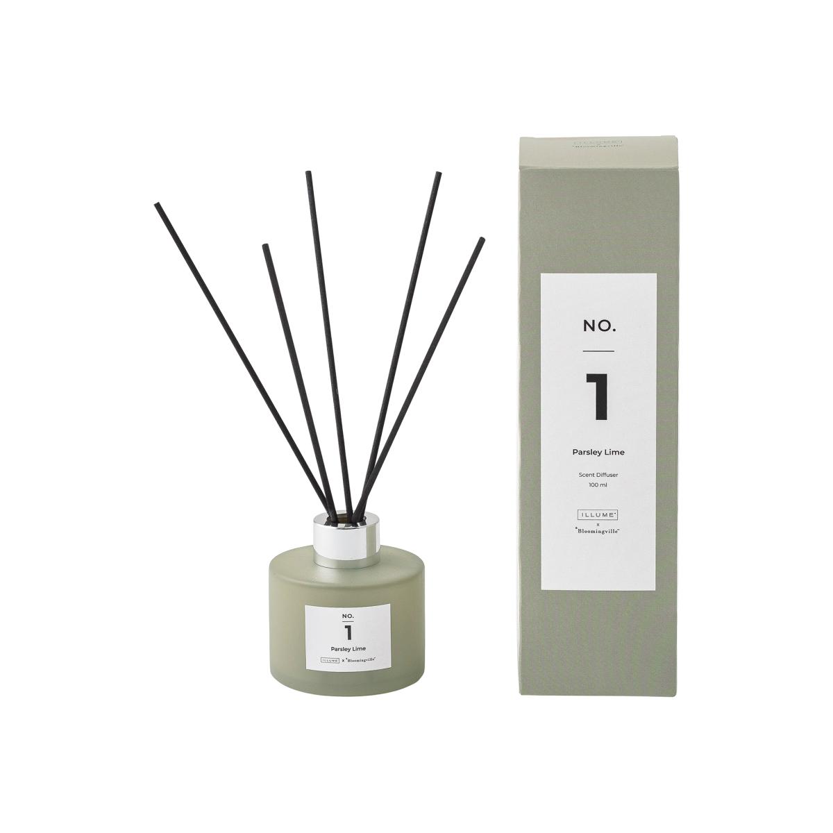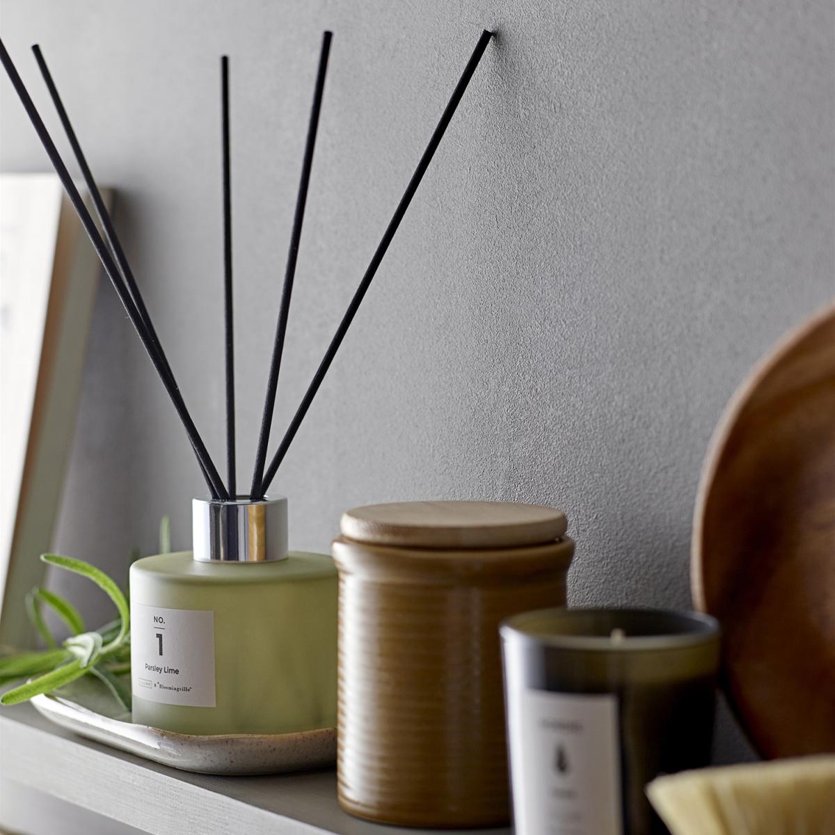 Experience the green scents of the NO. 1 Parsley Lime reed diffuser from Illume x Bloomingville. The scent makes you think of greenhouses with tomatoes and herbs or a summer day among the flowers and plants in your garden. Illume x Bloomingville have created these reed diffusers like traditional perfumes. The scents for NO. 1 Parsley Lime have been carefully selected to create the perfect combination. You smell the top notes of citrus and parsley first, then the key notes of blackcurrant buds, greenery and birch leaves. Last but not least come the lingering base notes of sandalwood and musk.