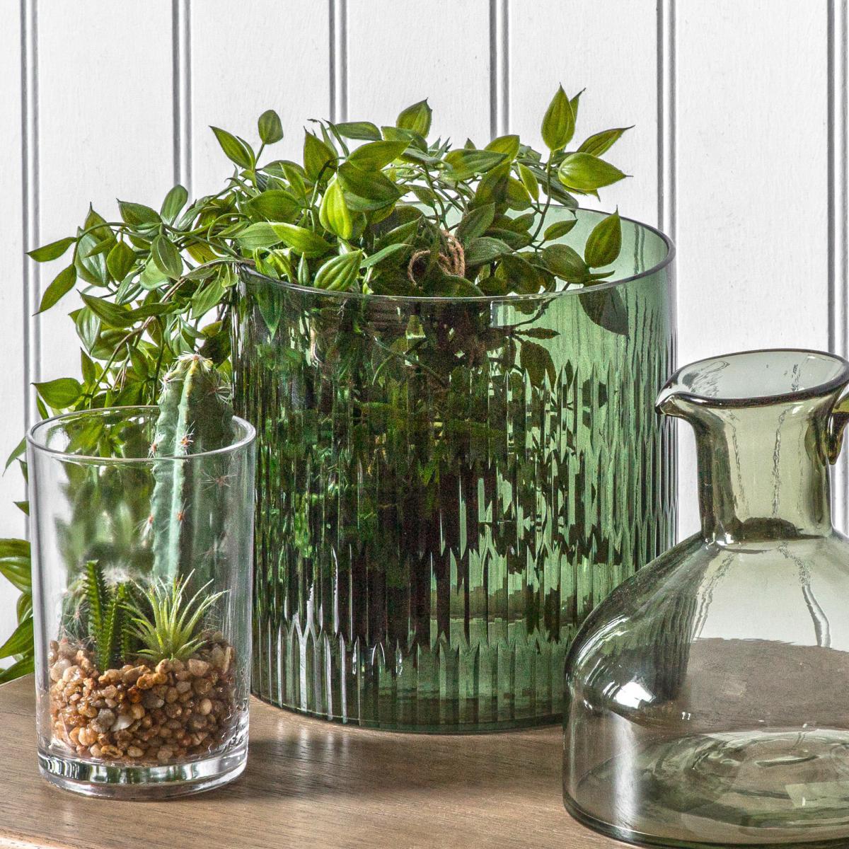 I love this green candle holder for adding a touch of colour and texture to a variety of interiors. Its ridged design offers a contemporary twist, making it versatile enough for both modern and rustic spaces. It works particularly well in minimalist setups where it can serve as a statement piece, or in Scandinavian-inspired schemes with plenty of natural textures. For styling tips, consider grouping it with other glassware or plant pots to create a curated vignette, or use it as a standalone piece on a mantel or side table to showcase its shape and colour. Its size makes it ideal for housing pillar candles or even as a small planter, bringing a bit of greenery into your space while adding character and depth.