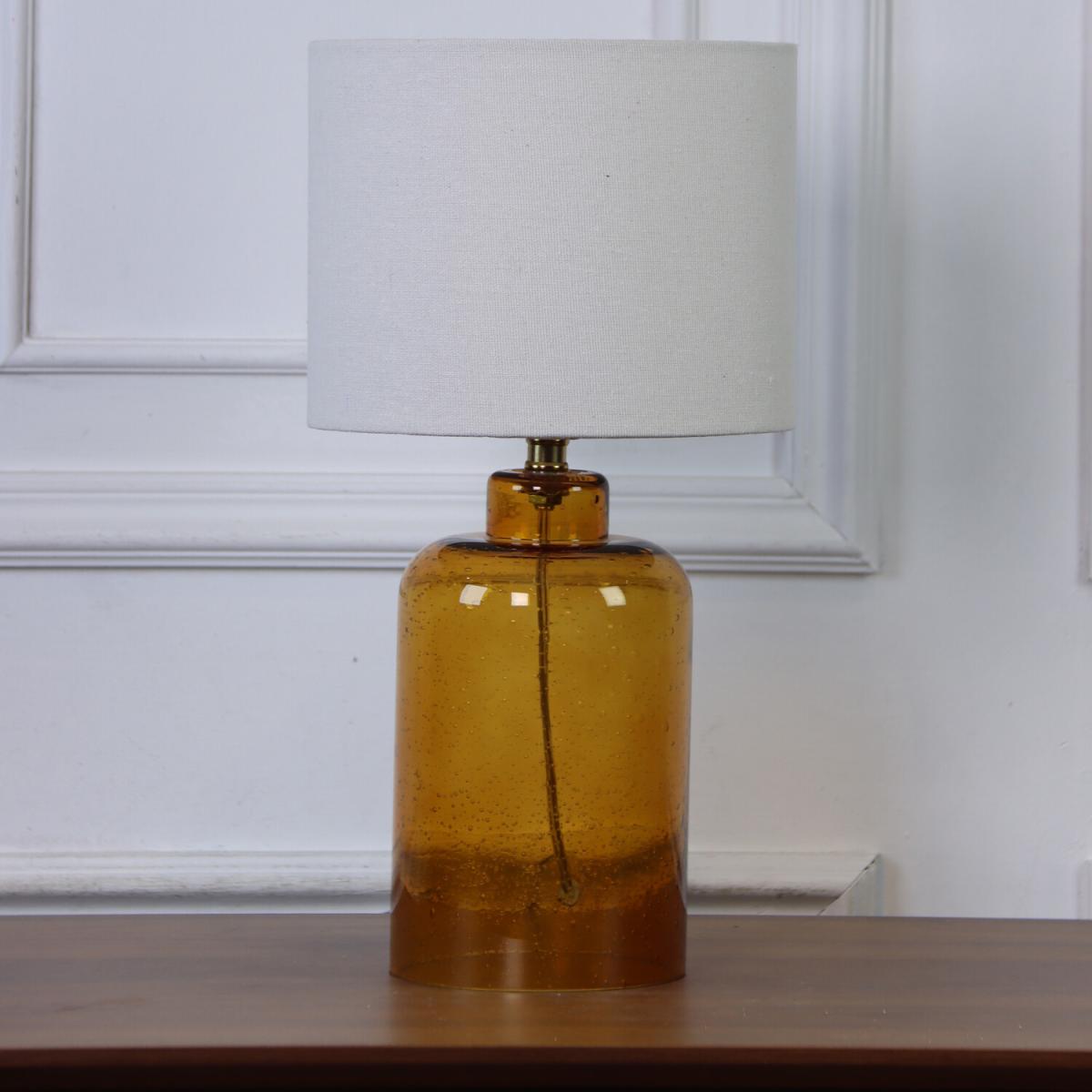 I love this lamp for its versatile design and warmth; the combination of the white and brown creates a balanced, neutral look that works well in a variety of interiors. It’s particularly effective in contemporary or minimalist spaces where its clean lines and simple colour palette add a touch of understated elegance. For styling tips, it pairs beautifully with natural textiles or layered with other warm-toned accessories to create a cosy, inviting atmosphere. It’s practical for side tables in living rooms or bedside tables, providing both aesthetic appeal and functional lighting. The amber glass base adds a bit of texture and colour, making this a timeless piece that can be easily integrated into both modern and more rustic or Scandinavian-inspired schemes.
