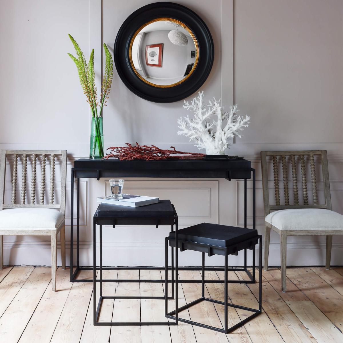 The Noah black iron console is a versatile piece that works especially well in both modern and industrial-inspired interiors. I love its sleek, minimalist design, which adds a touch of sophistication without overpowering a space. It’s perfect for narrow hallways, entryways, or behind sofas, providing functional surface area for decorative accessories like vases, lamps, or art books. When styling, consider pairing it with contrasting textures-perhaps a wooden top or colourful accessories-to create visual interest, or keep it clean with monochromatic accents for a more contemporary feel. Because of its sturdy iron frame, it’s also practical for displaying heavier items or holding everyday essentials. Overall, this console is a smart choice for adding organisational style while maintaining a clean, crisp look.