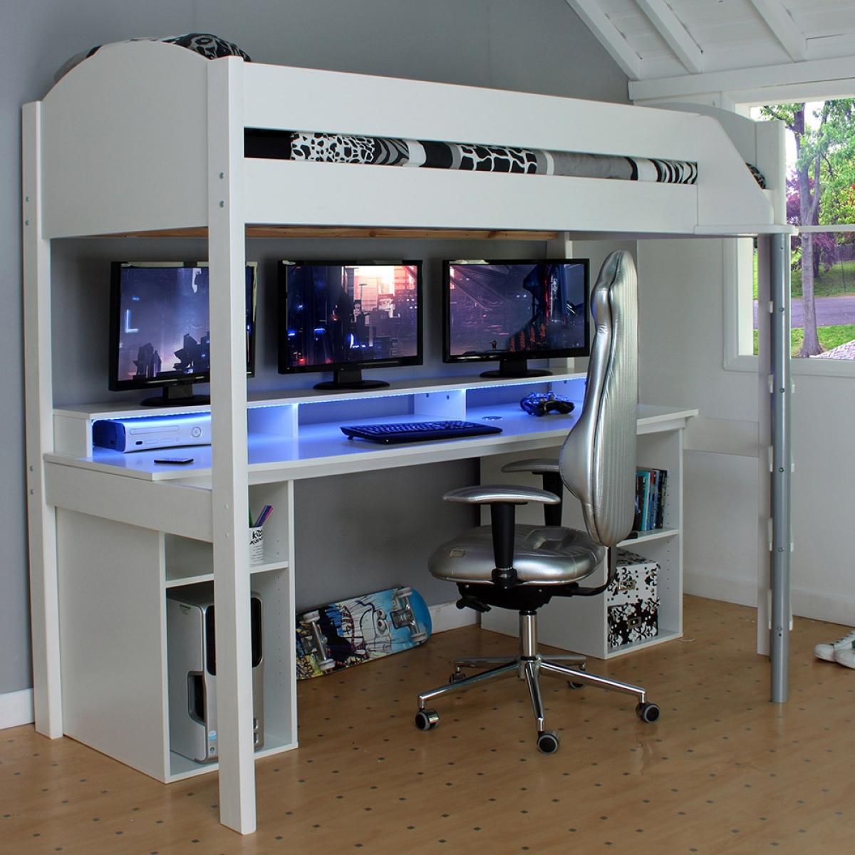Create the ideal set up for your youngster with the Noah Gaming High Sleeper 1. Not only will this be the perfect spot to rest their head after a long day of school work, but this bed has so much more to offer! A large desk runs across the full length of the bed, leaving plenty of space for the dreaded h word. Homework! The desk also features raised shelving with open compartments beneath, perfect for games consoles and monitors! There's also additional shelving below for housing larger consoles and computer towers, so the bed is fully-equipped for all tech needs! For a cool finishing touch, this bed even has colour changing LEDs and a wireless charger!.
