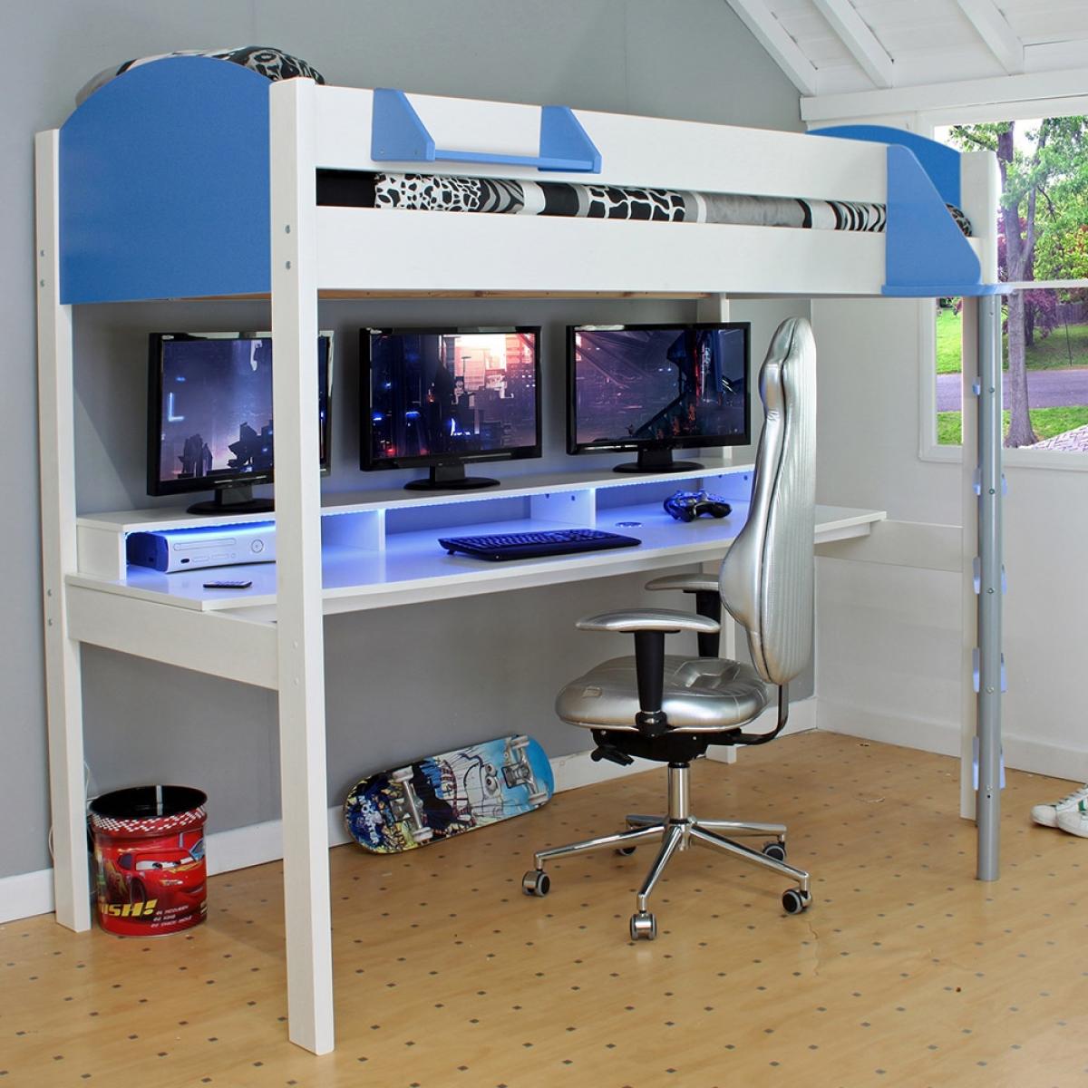 Create the perfect gaming zone and sleep space for your kiddie with the Noah Gaming High Sleeper 2. Available in a choice of colours you can pick the bed that's just right for your room and decor. With a large desk stretching the full length of the bed, it will be the perfect spot for homework or gaming! The raised shelf and open compartments are made with gaming in mind, monitors will fit perfectly on top while the consoles fit into the open compartments. If that wasn't enough this bed has colour changing LEDs and a wireless charger! who says you can't have it all!.