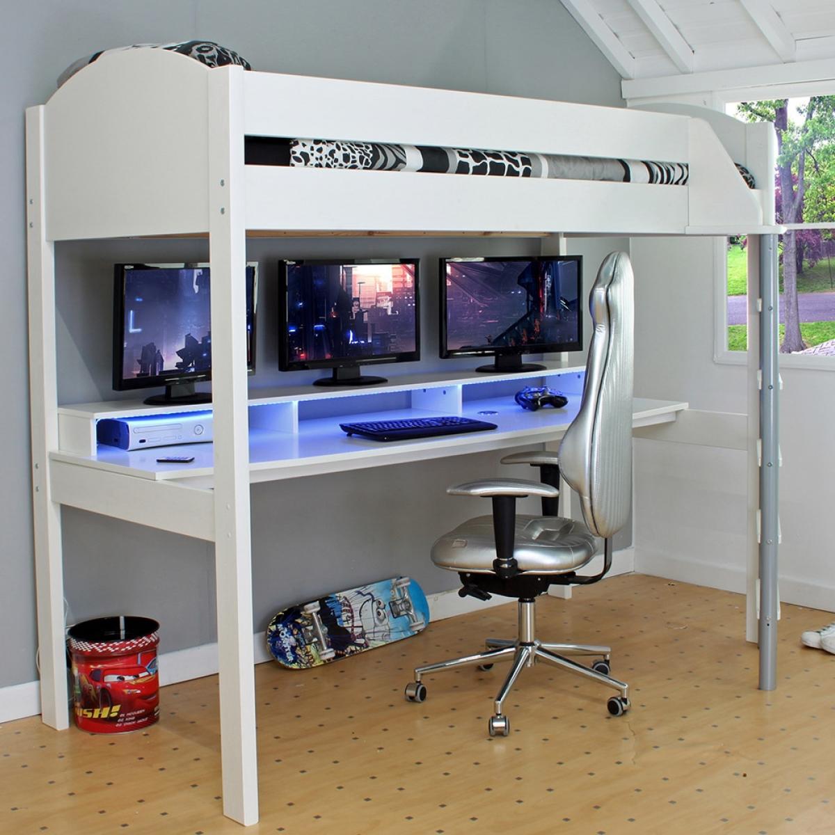 Create the perfect gaming zone and sleep space for your kiddie with the Noah Gaming High Sleeper 2. Available in a choice of colours you can pick the bed that's just right for your room and decor. With a large desk stretching the full length of the bed, it will be the perfect spot for homework or gaming! The raised shelf and open compartments are made with gaming in mind, monitors will fit perfectly on top while the consoles fit into the open compartments. If that wasn't enough this bed has colour changing LEDs and a wireless charger! who says you can't have it all!.