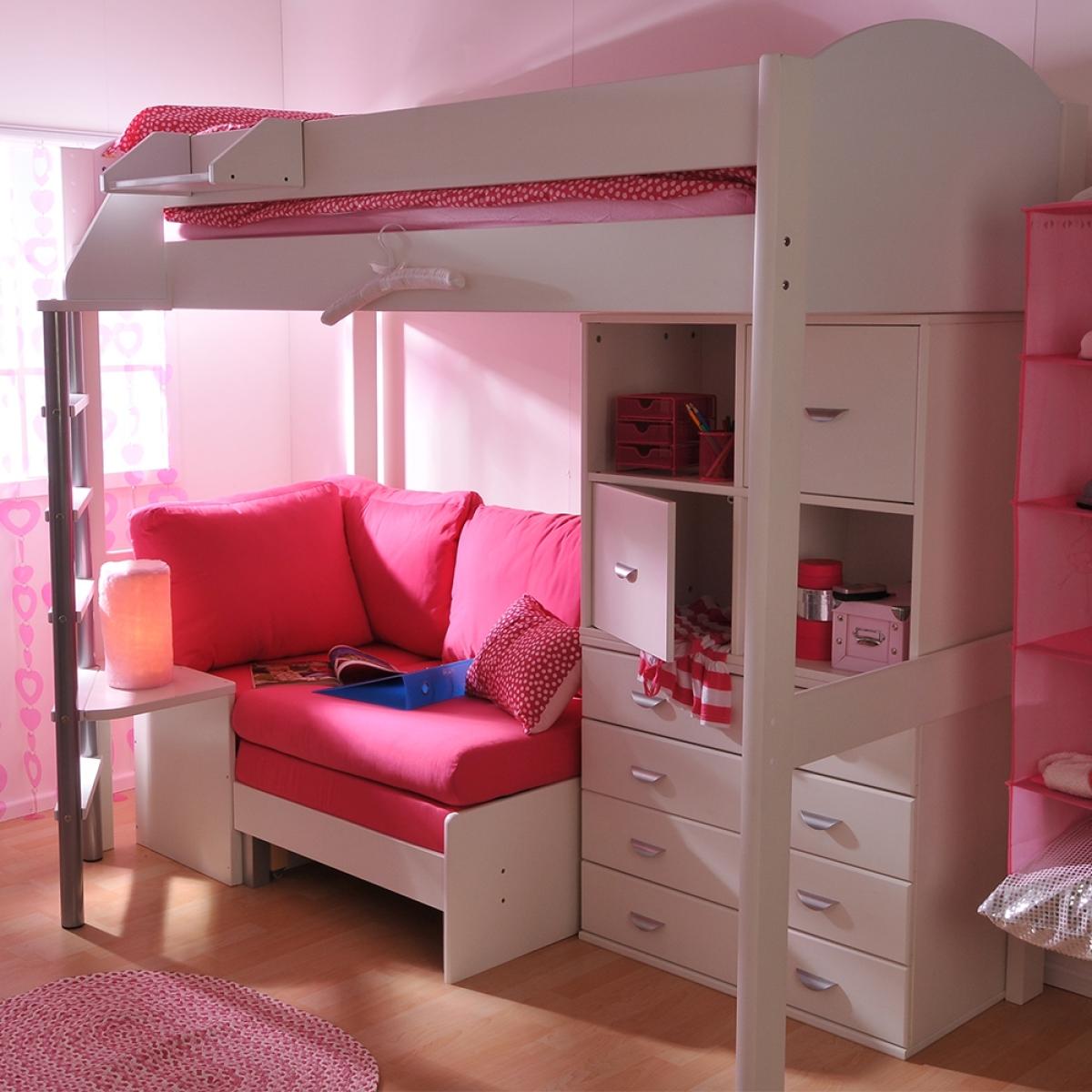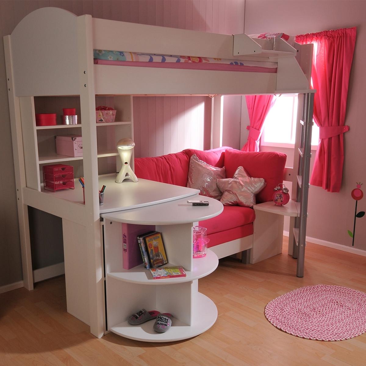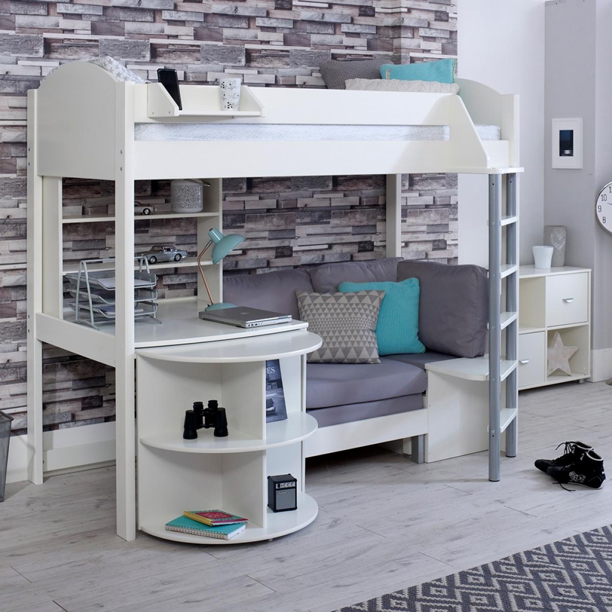 This Noah Kids High Sleeper Bed by Kids Avenue is one of the best selling High Sleeper Beds on the market, so we are very happy to be selling it here at Cuckooland! With so many optional extras, you really will need to pop the kettle on and make yourself a cuppa before making your decision about what exciting combination you will choose! Will it be a plain white frame or white with details in blue or lilac? Is this piece of awesome kids bedroom furniture for your young knight or your ambitious heroine? This fantastic children's high sleeper bed gives you storage options by the bucket load and with a cosy sofa bed, you are well and truly sorted when they have friends round to stay overnight! And if it's studying you need the little darlings to get done, the extendable desk is a very handy option to go for (although we can't guarantee your kiddies will agree!).