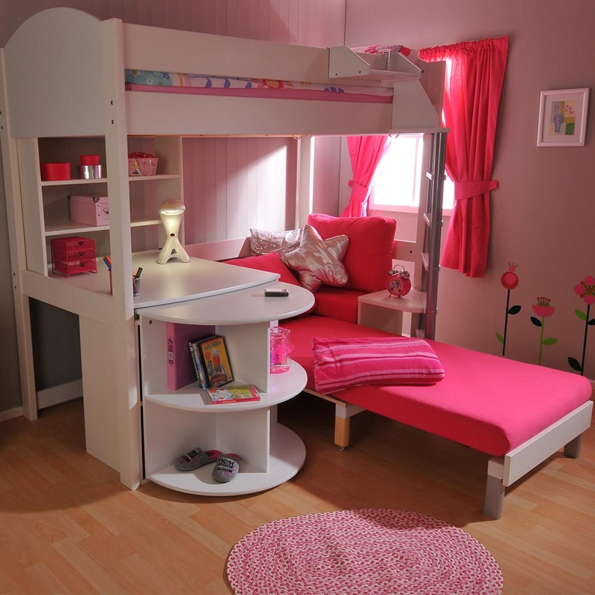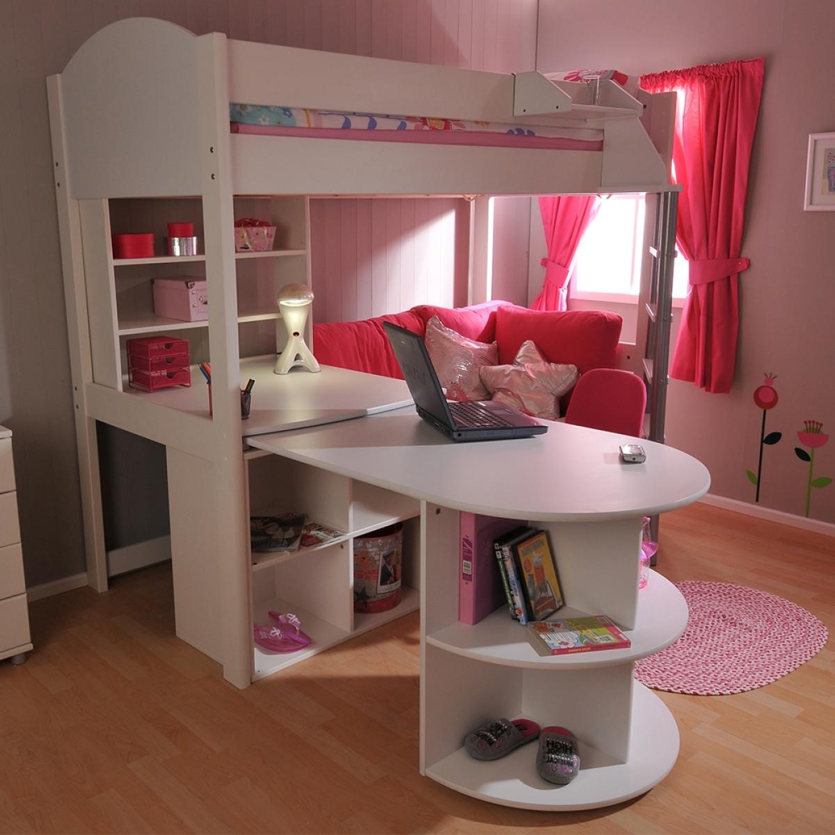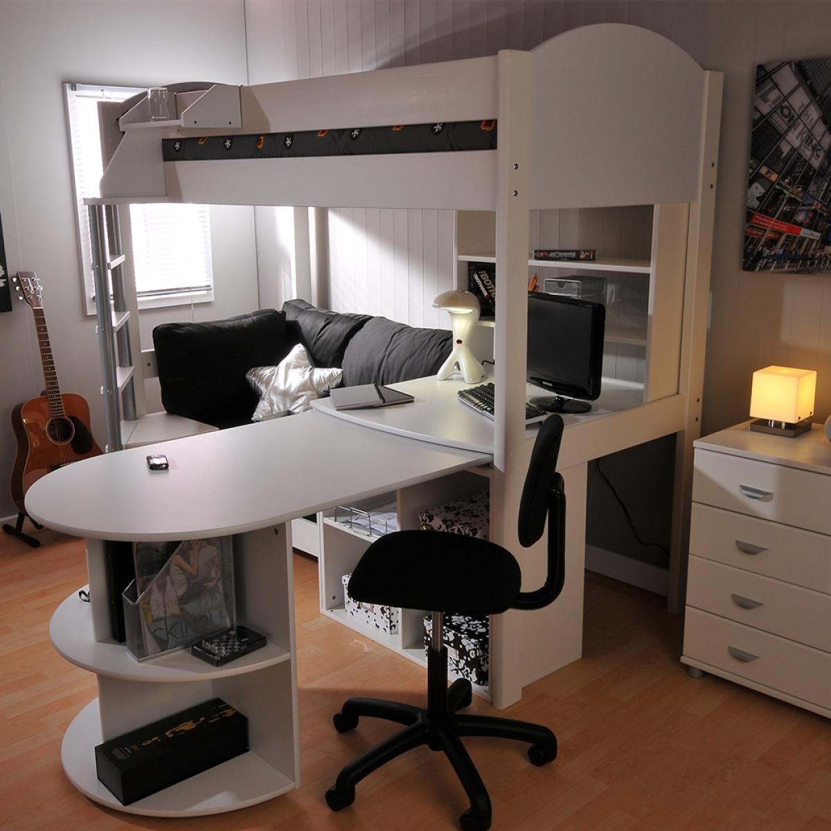 This Noah Kids High Sleeper Bed by Kids Avenue is one of the best selling High Sleeper Beds on the market, so we are very happy to be selling it here at Cuckooland! With so many optional extras, you really will need to pop the kettle on and make yourself a cuppa before making your decision about what exciting combination you will choose! Will it be a plain white frame or white with details in blue or lilac? Is this piece of awesome kids bedroom furniture for your young knight or your ambitious heroine? This fantastic children's high sleeper bed gives you storage options by the bucket load and with a cosy sofa bed, you are well and truly sorted when they have friends round to stay overnight! And if it's studying you need the little darlings to get done, the extendable desk is a very handy option to go for (although we can't guarantee your kiddies will agree!).