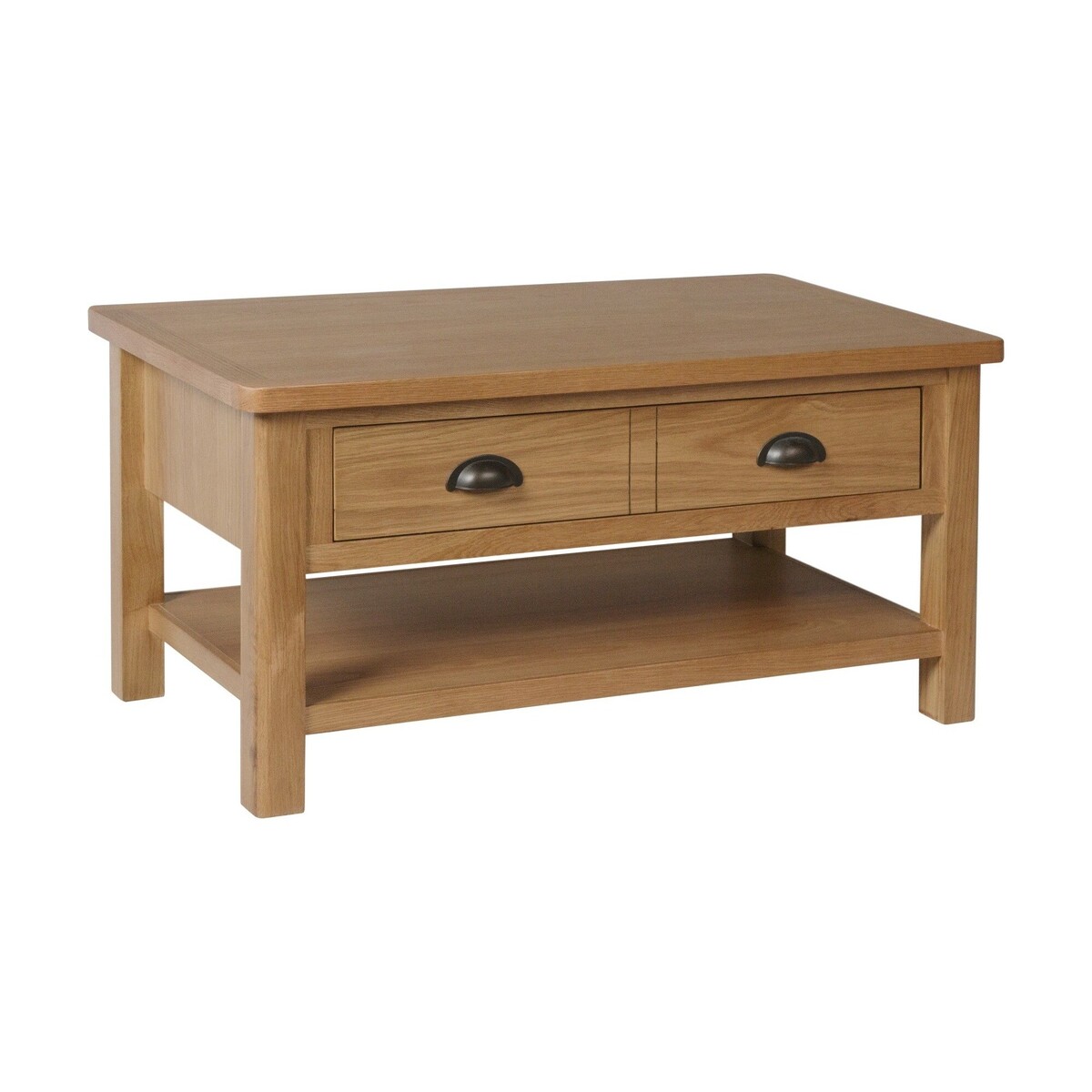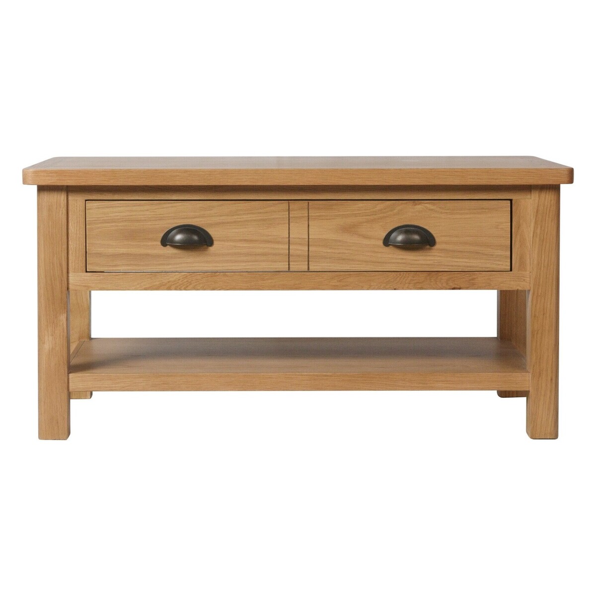 Perfect for spacious living rooms, the Noah Large Coffee Table features a classic minimalist design to suit any interior. Crafted from sturdy and reliable solid wood, the large coffee table features a durable frame and a generous drawer with brass effect handles that is accessible from both sides. The coffee table is complete with a lower shelf for additional storage. Large coffee table perfect for spacious living rooms Sturdy solid wood construction Classic design suits any interior Handy drawer is accessible from both sides Brass effect cup handles complete the look Lower shelf for additional storage Complements other items in the Noah range