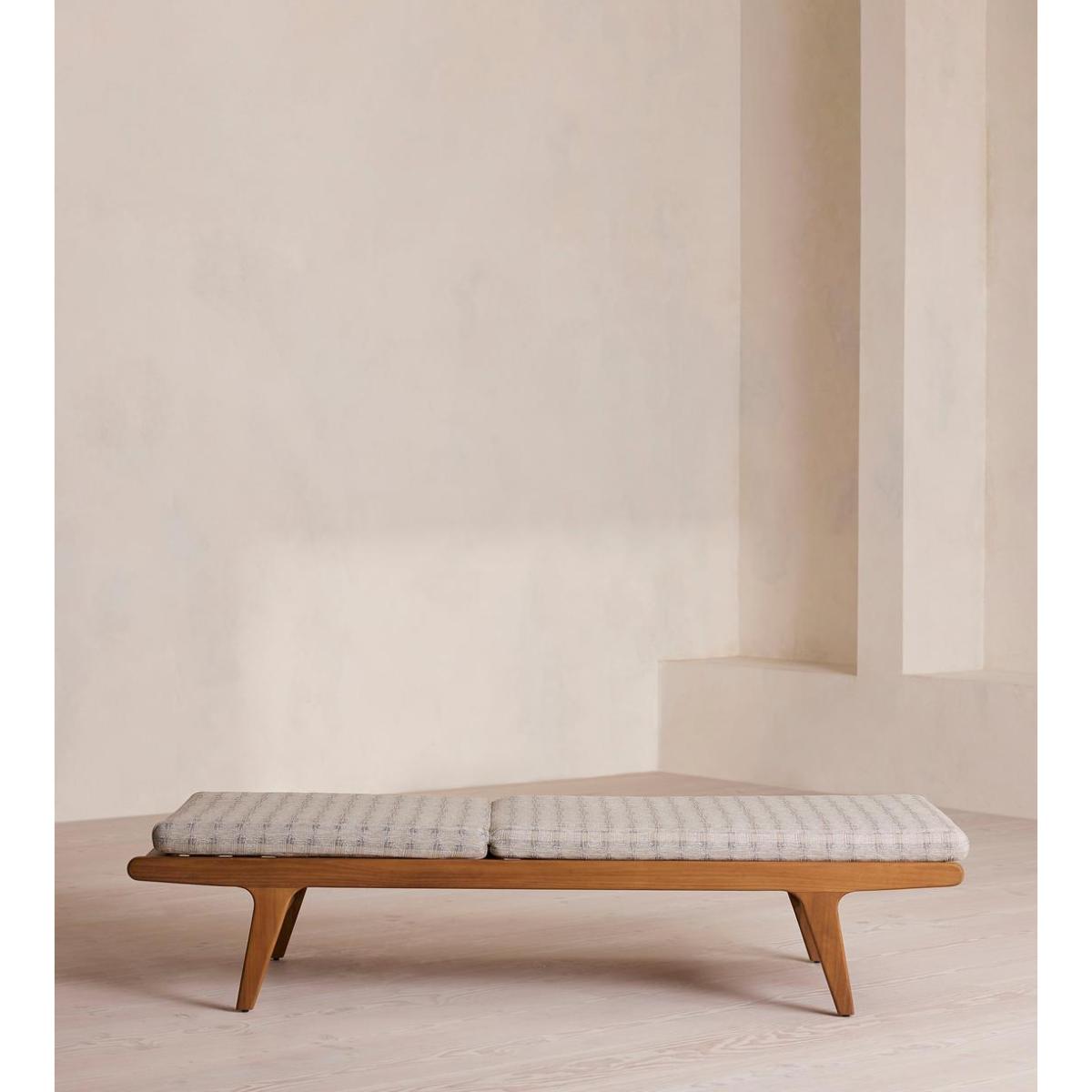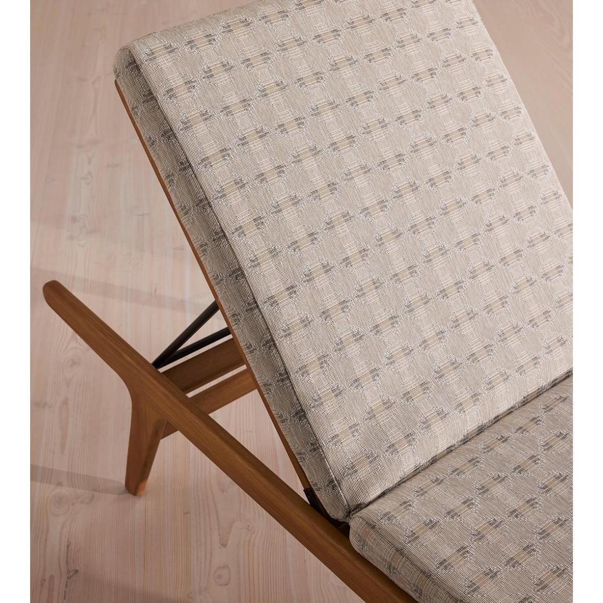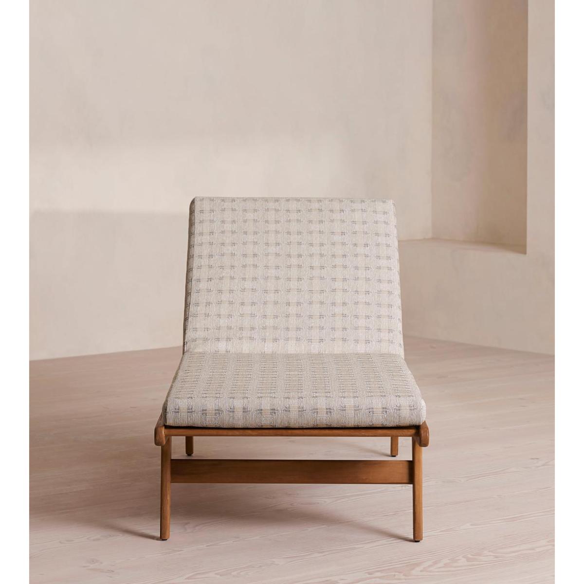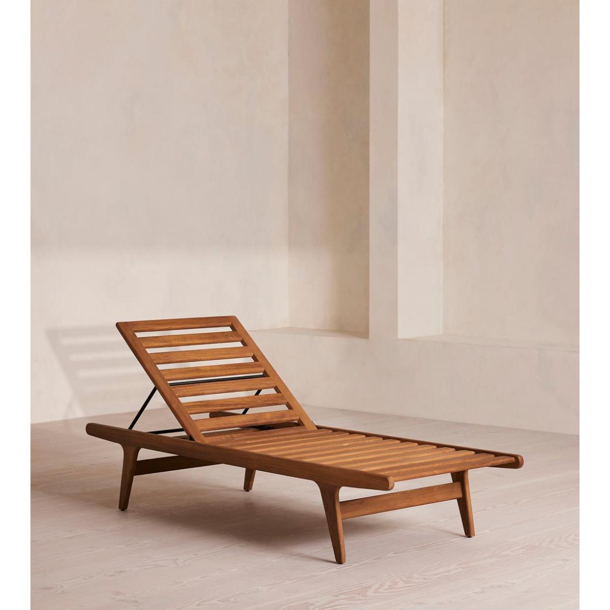 Inspired by Soho House Nashville, the Noah lounger recreates the joy of a Soho House summer by the pool in your own outdoor space. The multi-level recliner design has been crafted from solid teak with a dark stain finish and features four height options for optimum comfort, as well as two wheels for easy transportation. Upholstered in Christopher Farr's 'Baja Outdoor Latte', this geometric fabric is designed to withstand the elements, while giving your interiors scheme a subtle vintage feel. Upholstered lounger Crafted from solid teak Dark stain Wire brush finish Upholstered in Christopher Farr's 'Baja Outdoor Latte' fabric Multi-level recliner design Four height options, including fully flat Fitted with two wheels Also available in Shoreditch House's striped upholstery Inspired by the sunbeds at Babington House