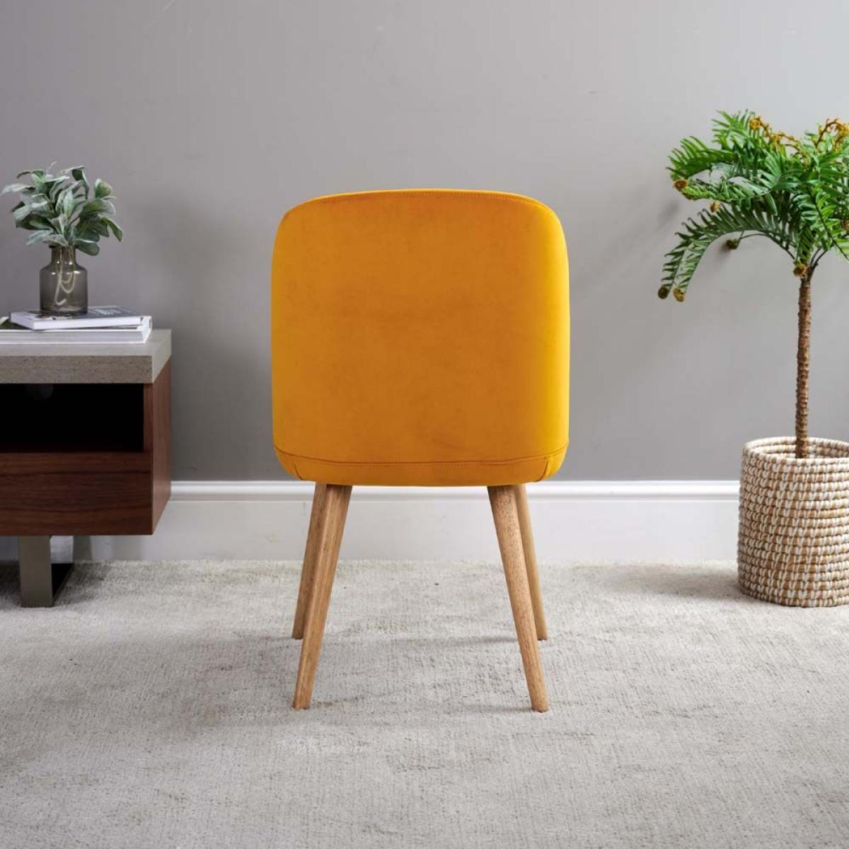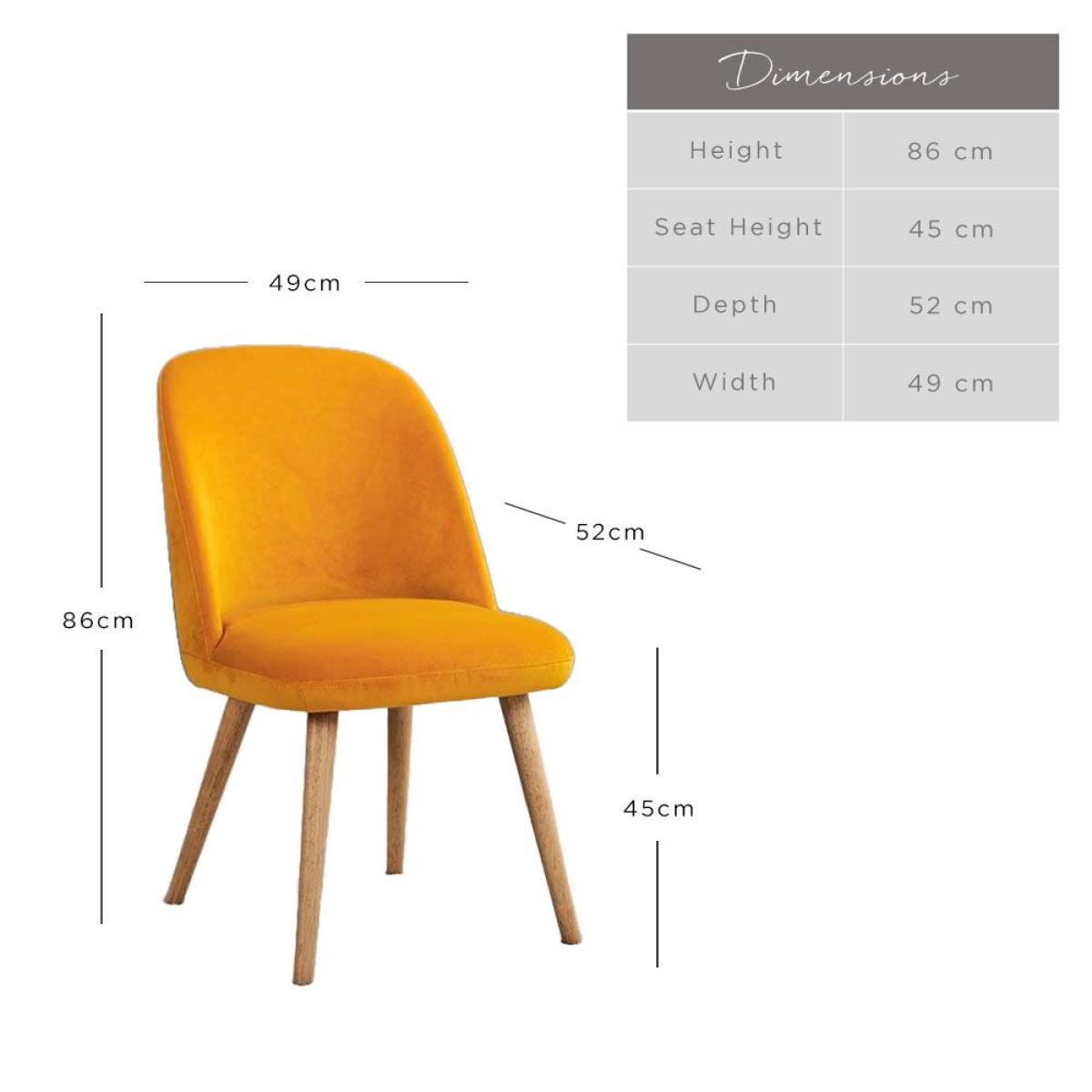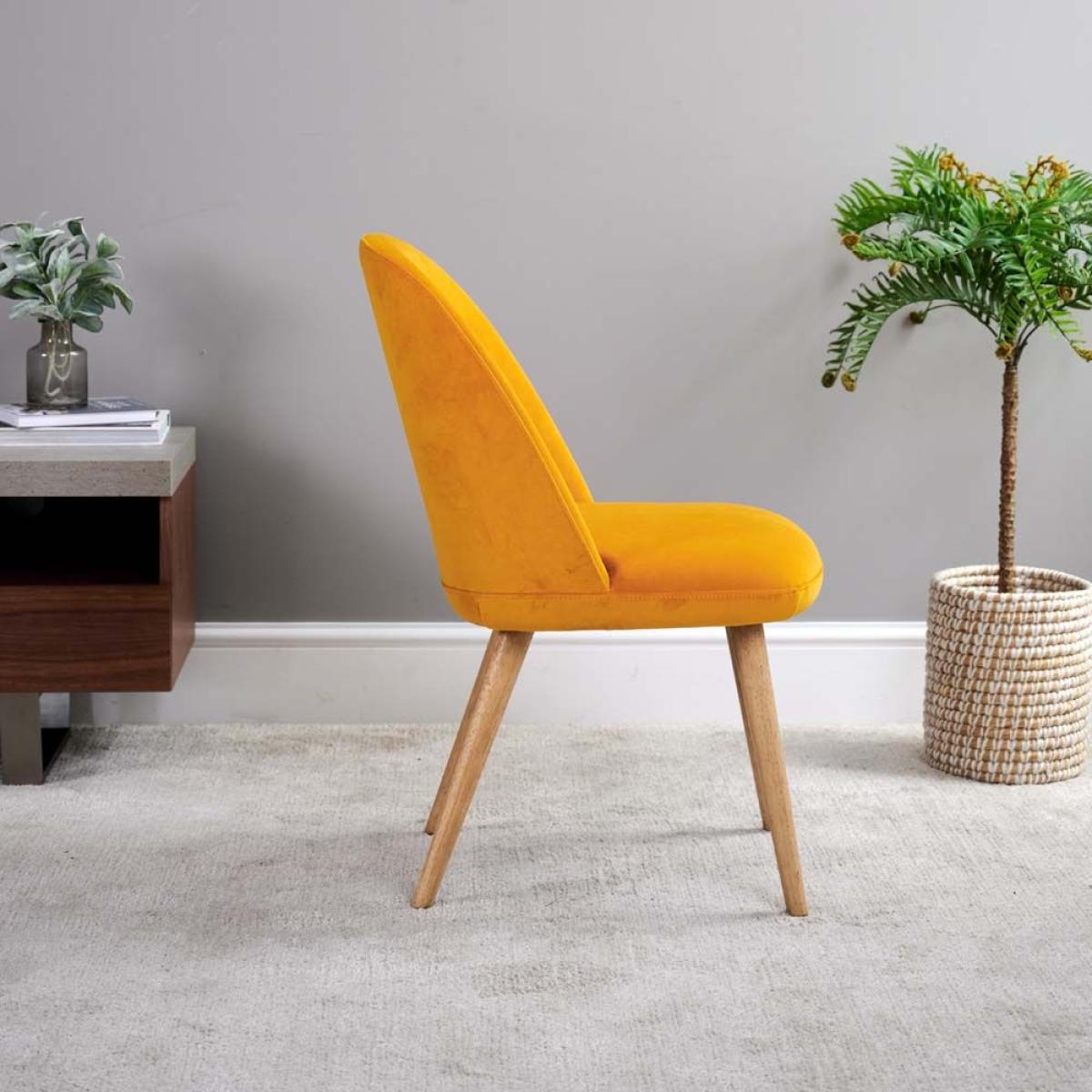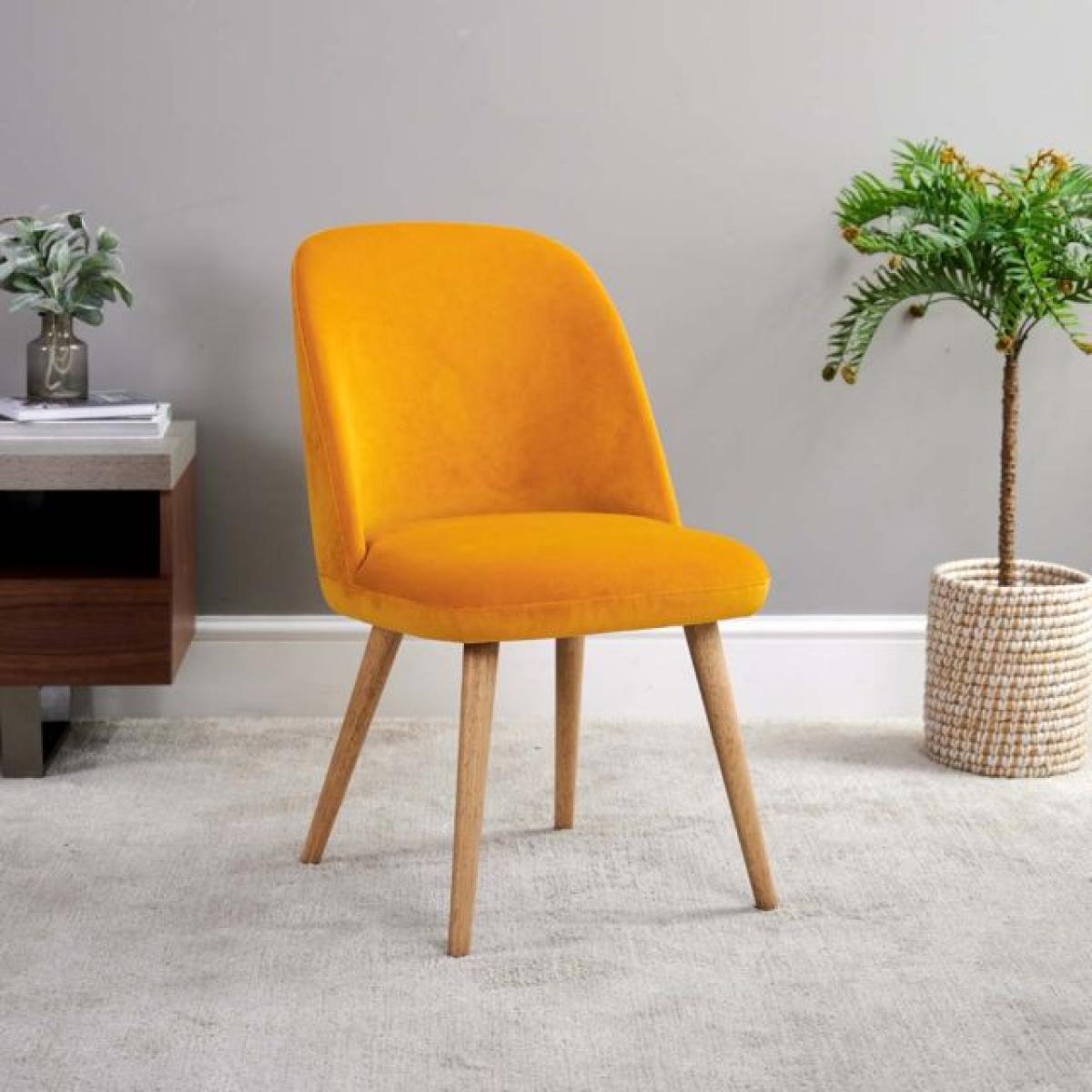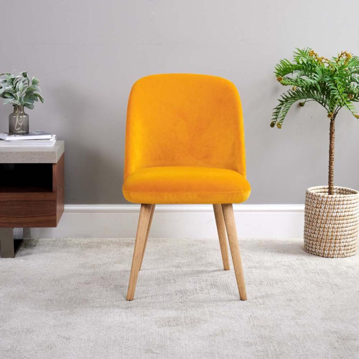 Noah mustard velvet dining chairs bring a colourful touch to dining. Beautifully upholstered in a bright mustard yellow velvet, with a curved back for extra support, the Noah mustard velvet dining chair has a vibrant style that will enhance any dining room. Add a pop of colour to your dining room with these mustard velvet dining chairs. Click today to add this colourful dining chair to your collection.