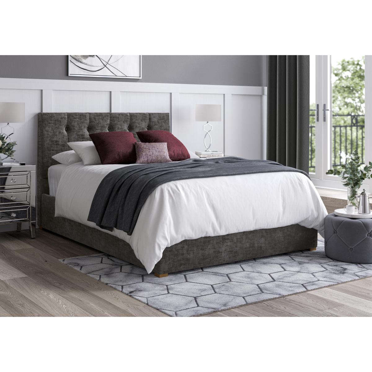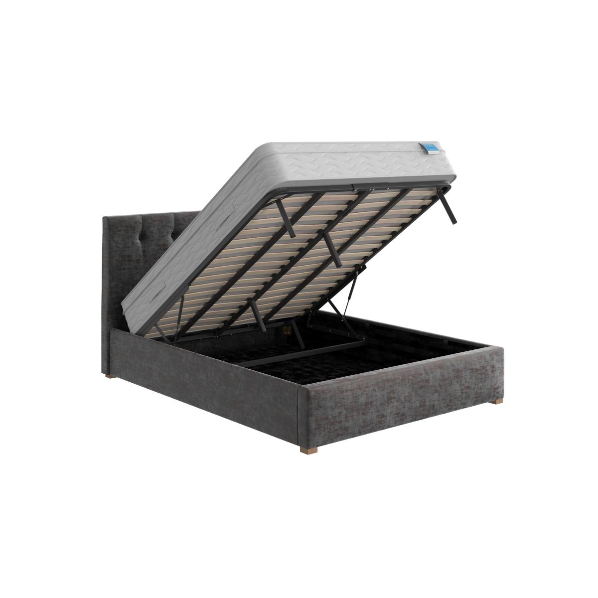 This lower-profile ottoman bed frame is the perfect centrepiece for your contemporary bedroom thanks to its simple buttoned headboard. You’ll love the roomy storage space too. Why you'll love it Stylish ottoman bed frame has a padded headboard with understated buttoning. Lower headboard style means it can be placed in front of a window. Upholstered by hand – including hand-pleating – for a sumptuous padded look. With spacious and space-saving end-opening ottoman storage. Piston-assisted lift mechanism for easy access to the storage space. Available in high-quality velvet or linen-look fabric in a choice of colours. In double, king and super king bed sizes. This ottoman bed frame is beautifully made in the UK. What you need to know Please take care when opening and closing the ottoman storage space. Mattress weight limit for all sizes is 80 kg. Clean upholstery weekly using a soft brush or vacuum with the curtain attachment. Professional cleaning advised for oil- and grease-based stains. Some fabrics can show wear on areas of more use or in direct sunlight.