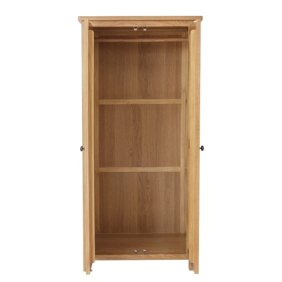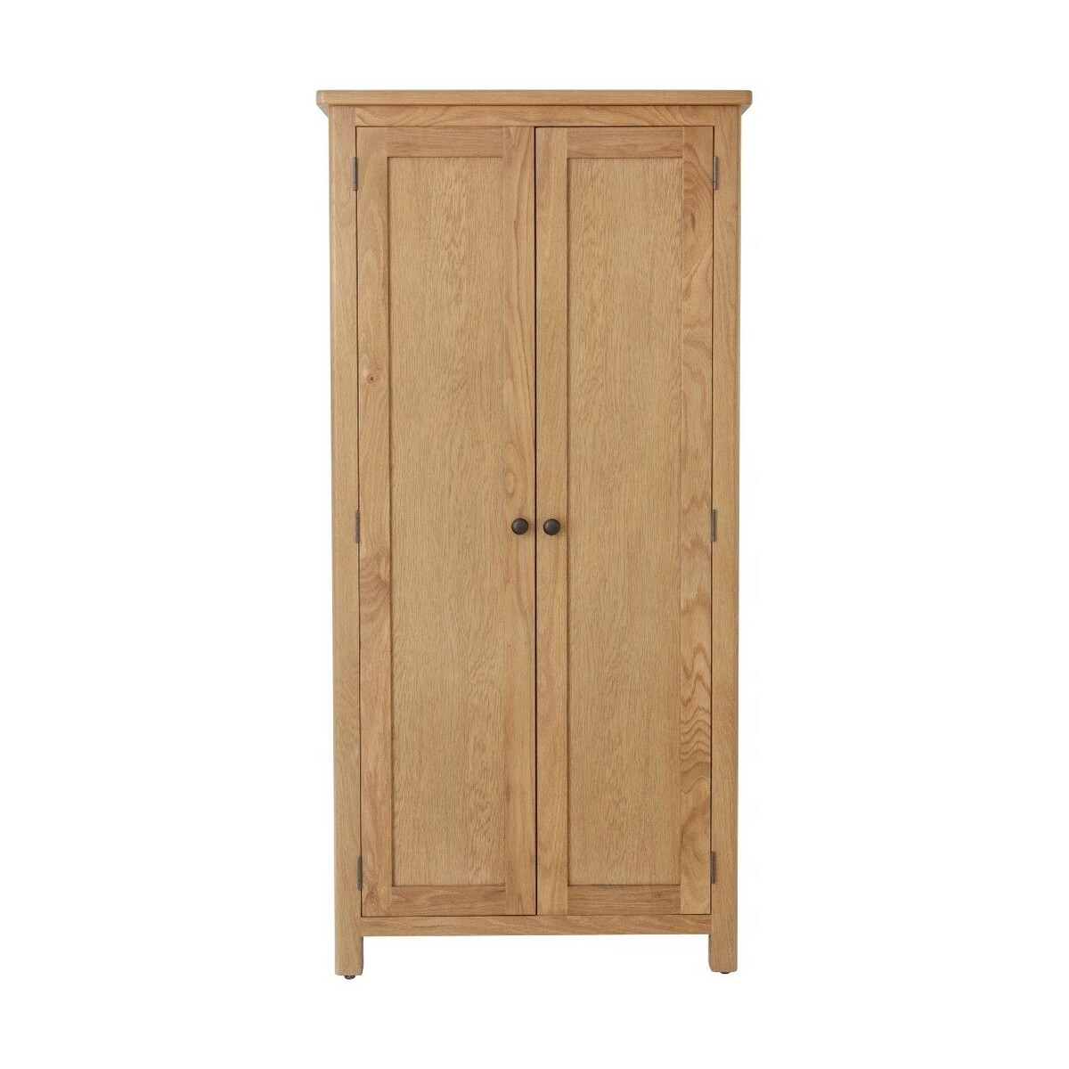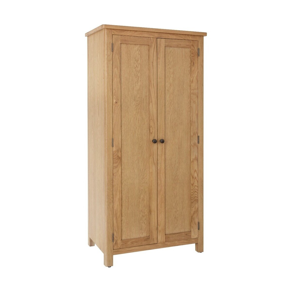 Featuring a classic design to complement any home, the Noah Rustic oak 2 Door Wardrobe is chic and durable. The rustic oak wardrobe offers full hanging space and features a removable solid wood hanging rail. The rustic oak wardrobe is complete with 2 convenient lower drawers for additional storage. Stylish and sturdy 2 door wardrobe. Durable frame. Offers full hanging space Rounded corners and for a timeless look to suit any space. Removable solid wood hanging rail2 Handy deep drawers on wooden guides for additional storage Antique brass-effect knobs and handles complete the look. Complement the wardrobe with matching items from the Noah Rustic oak Collection