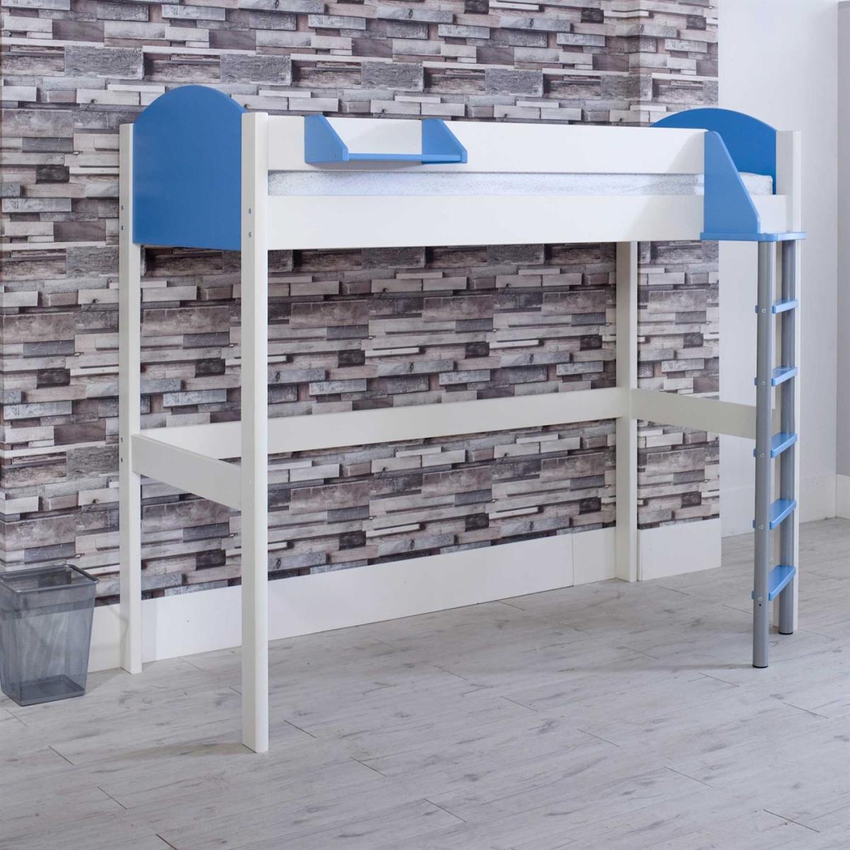 Bring fun and functionality to your childs bedroom with the Noah high sleeper bed. Raised off the ground forming a hideaway sleep haven, it creates valuable space underneath that can be used in a multitude of ways. Handy for teenagers, this cosy nook could house a homework desk, sofa bed or extra storage, while younger children may enjoy more room to play. Sturdy and safe, the white wooden frame will never go out of style, whilst optional colour accents allow for customisation.