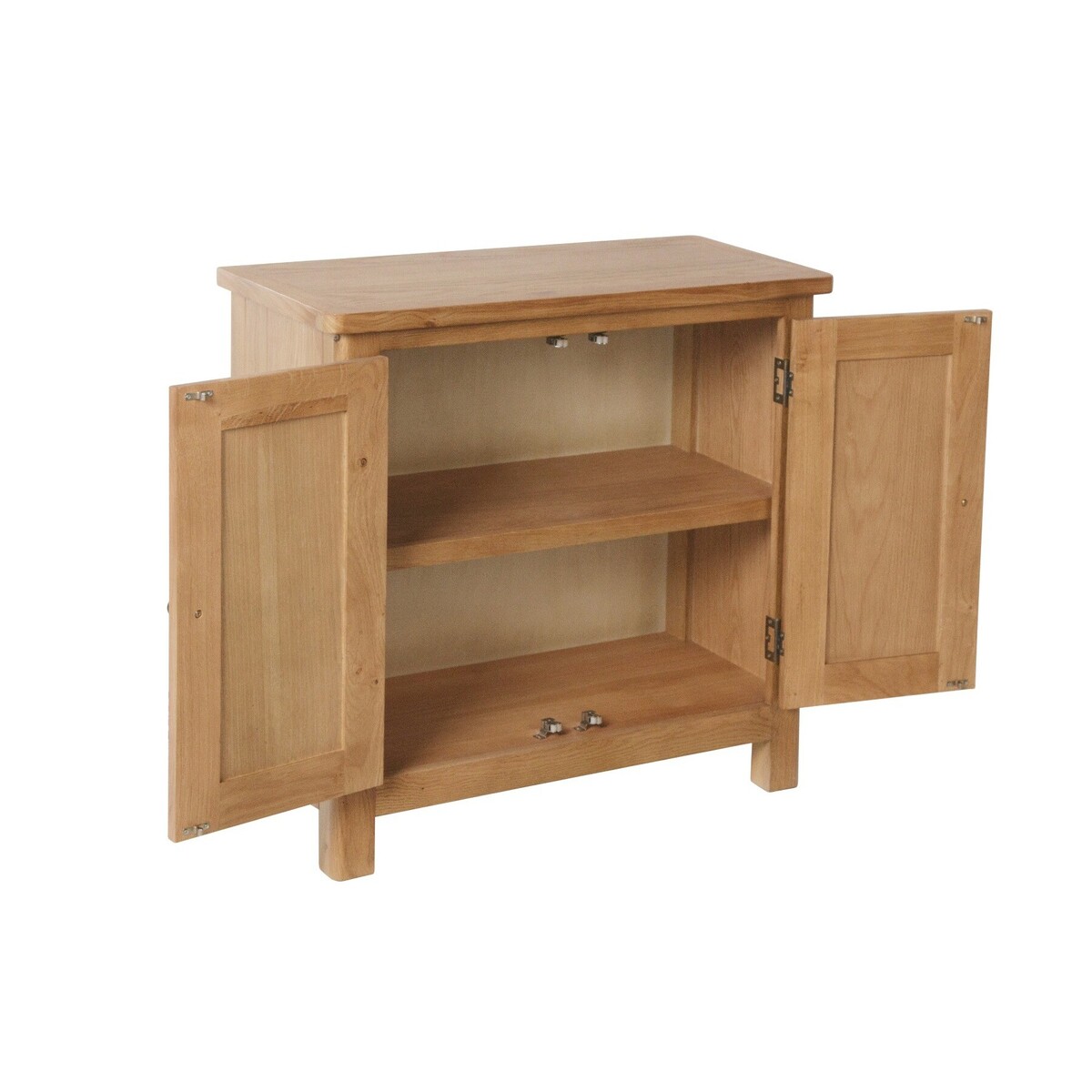 Featuring a classic rustic design, the Noah Small Sideboard is a stylish and practical addition to your home. The small sideboard is crafted from durable solid hardwood and features 2 doors with antique style brass-effect knobs and a central shelf. Sturdy and stylish small sideboard. Compact and space saving - perfect for small areas. Durable solid hardwood frame. 2 doors with antique brass effect knobs. Central shelf for handy storage space. Complete the look with matching items from the Noah collection.