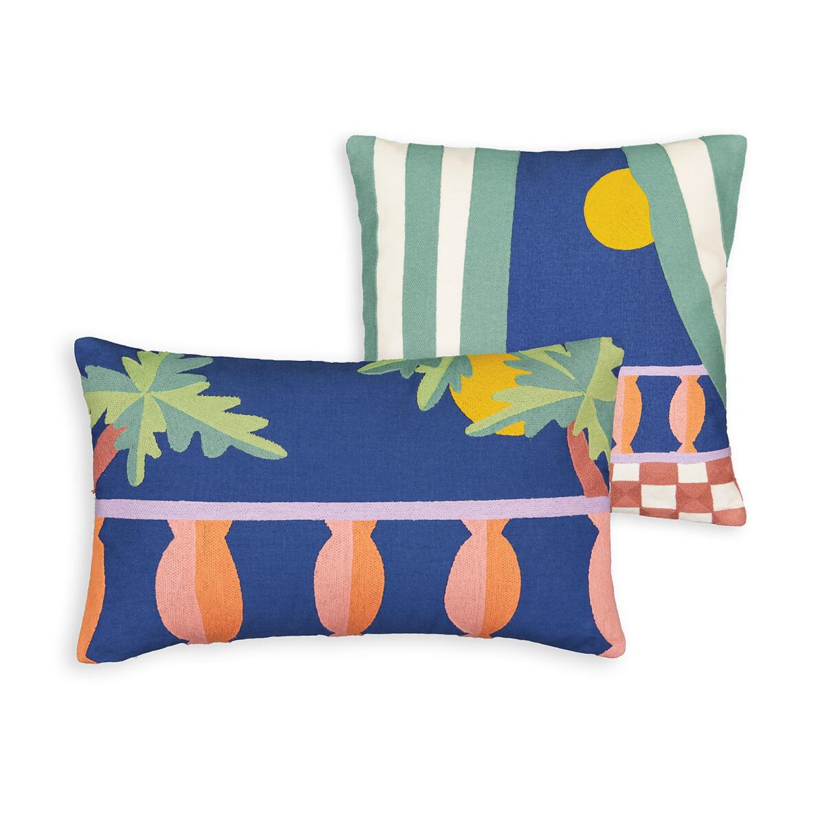 I love this Noailles cushion cover for its vibrant, playful design that works well in both contemporary and eclectic interiors. The bold colours and abstract pattern bring a lively, Mediterranean-inspired vibe, making it perfect for adding colour and interest to neutral sofas or beds. It pairs particularly well with natural textures like linen or rattan, creating a relaxed and inviting look. For styling tips, consider layering it with other patterned cushions in complementary hues or keeping the palette minimal for maximum impact. Practical and durable, being 100% cotton, it’s easy to maintain, making it a great choice for both indoor lounge areas and outdoor patios.
