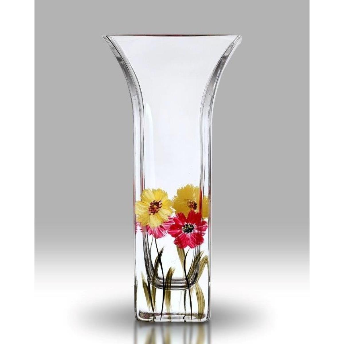 Nobile Glassware Gerbera coloured Daisies Twist Vase 22.5cm. This truly stunning hand crafted and decorated Vase featuring a beautiful poppy flower design. Hand Blown and Decorated by Master Craftsmen making each piece unique. Approximate Height: 22.5cm Material: Glass This item is boxed