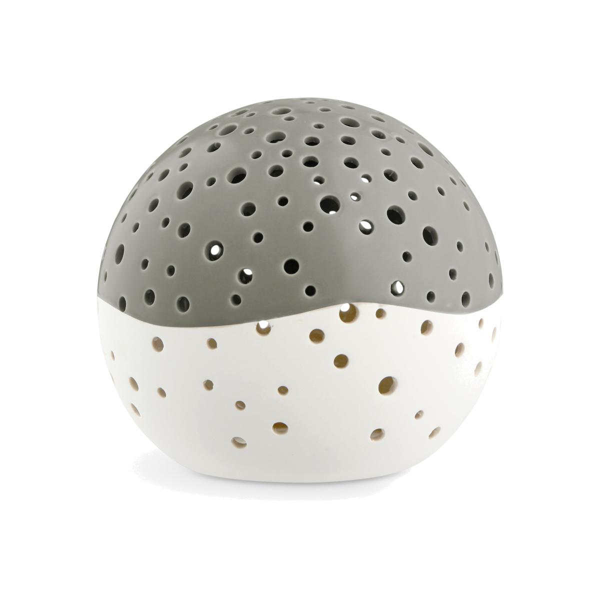 The Nobili lantern in olive green comes to us from Kähler as a gorgeous interior detail for tea candles. The irregular pattern of perforations lets the tea lights create a striking and atmospheric glow in the surrounding space. The upper portion of the lantern has been finished with a sleek, olive-green glaze: the lower portion has a more raw aesthetic as a beautiful contrast. The entire ensemble brings to mind thoughts of a snow-covered landscape as the sunlight reflects across the banks and snowdrifts.