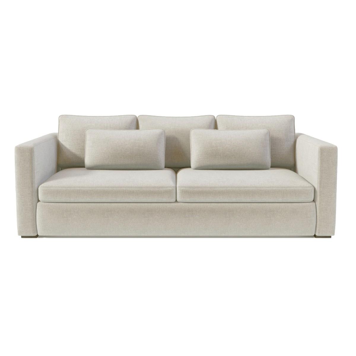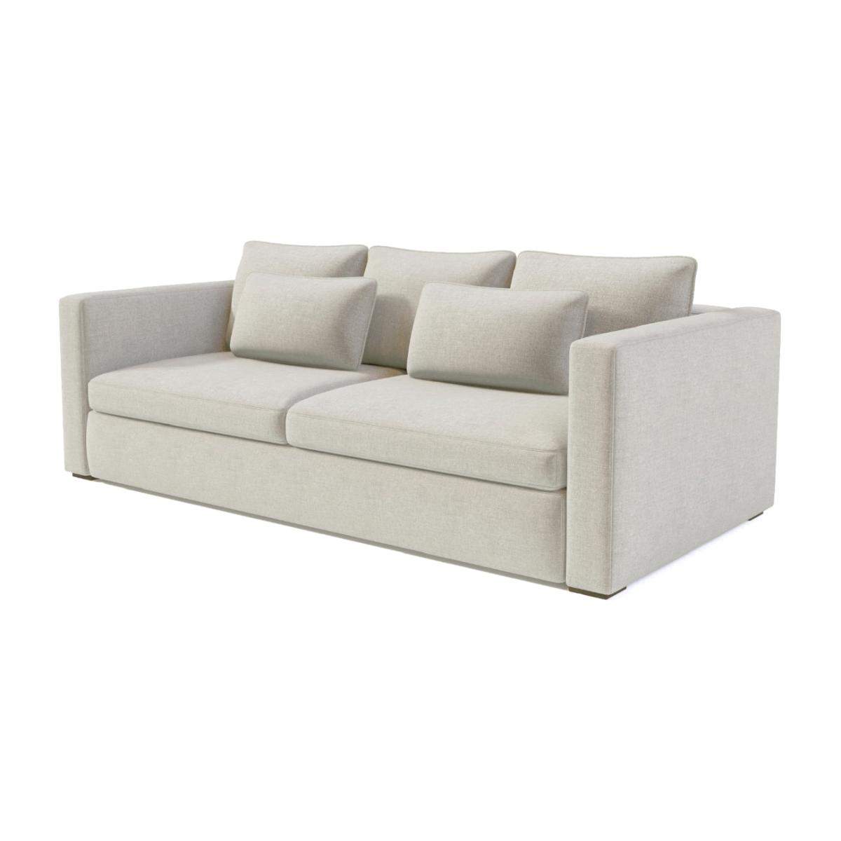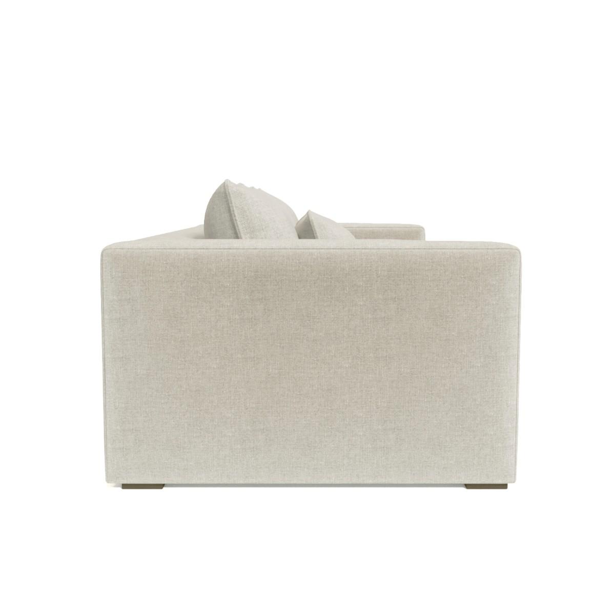 I love this sofa for its clean, minimalist silhouette and versatile appeal. It works particularly well in contemporary or Scandinavian-inspired interiors, where its neutral shade and streamlined form can be paired easily with textured throws, colourful cushions, or statement rugs for added personality. Its 2.5-seater size makes it perfect for smaller living rooms or open-plan spaces. Practical styling tips include layering with cosy throws and cushions to create inviting textures, and placing it against a bold feature wall or in a light-filled corner to maximise its understated elegance. The simple design lends itself to a variety of accessories, making it a flexible choice for both relaxed family rooms and more refined, modern schemes.