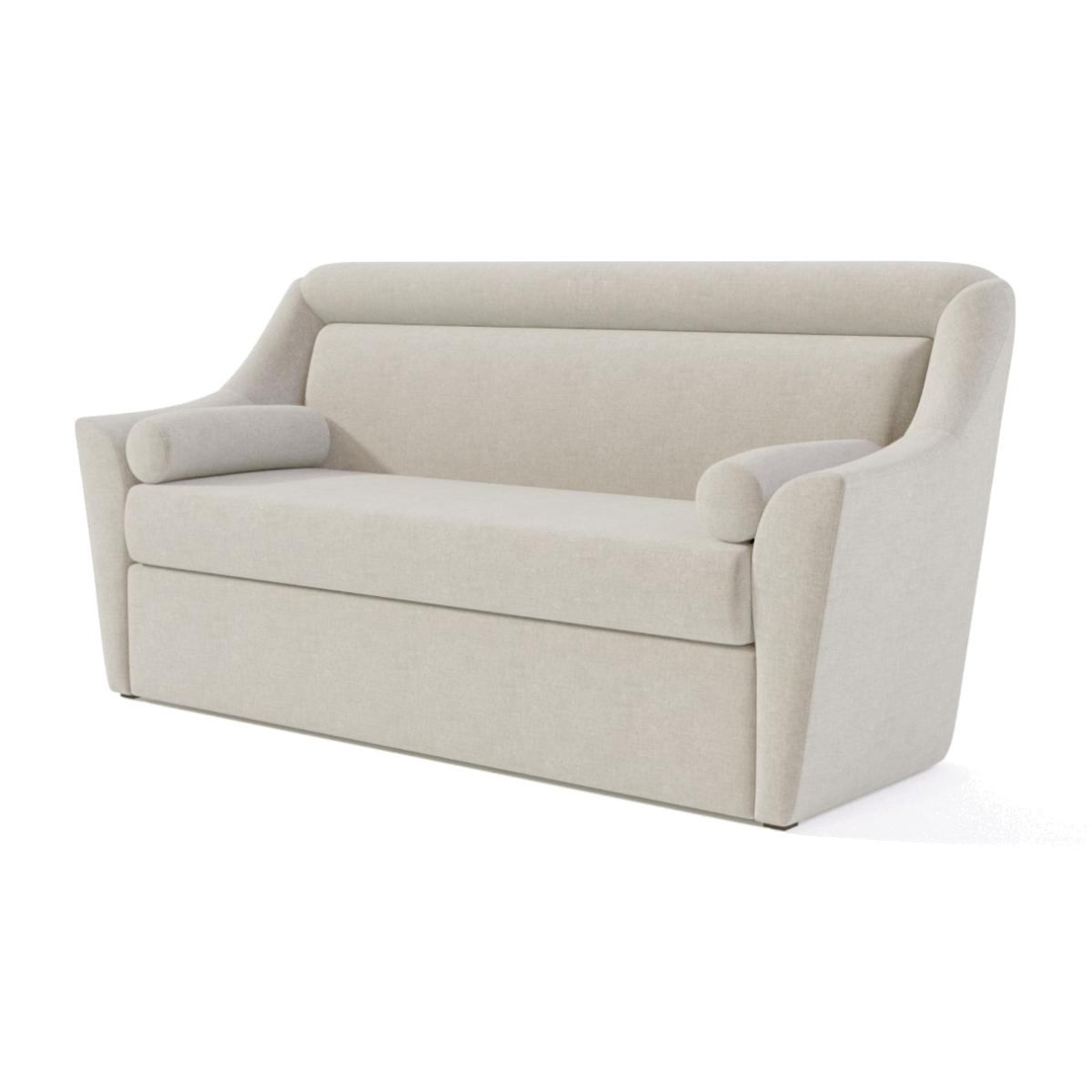 This small classical and chic sofa is revisited thanks to the voluptuous arms and elegant padded high backrest. Customisable with any suitable fabric. Quantity of fabric required is 11 metres in total. Please view our fabrics page and contact us for options and pricing. Each order is exclusively made, allowing the customer to select from our vast range of upholstery fabrics. This bespoke hand-made to order production involves a possible difference between measurements shown in our product details and the final product of +/- 3%.