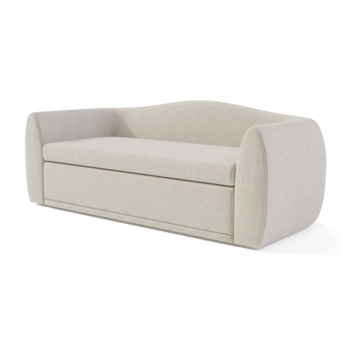 The flowing and sculptural lines of this sofa echo to the roundness of a pebble. The structure of the seat allows a great freedom of use. Quantity of fabric required is 9. 5 metres in total. Please view our fabrics page and contact us for options and pricing. Each order is exclusively made, allowing the customer to select from our vast range of upholstery fabrics. This bespoke hand-made to order production involves a possible difference between measurements shown in our product details and the final product of +/- 3%.